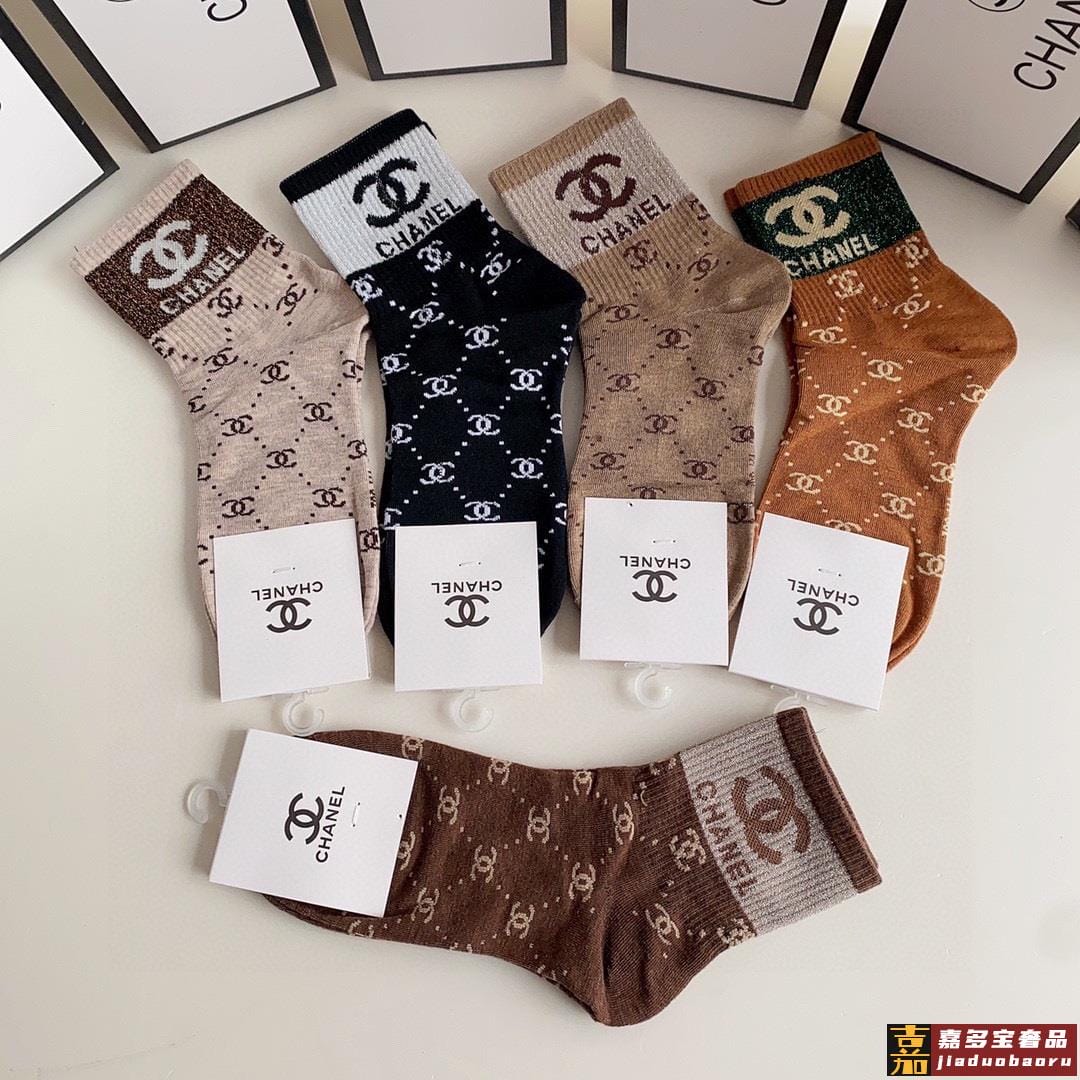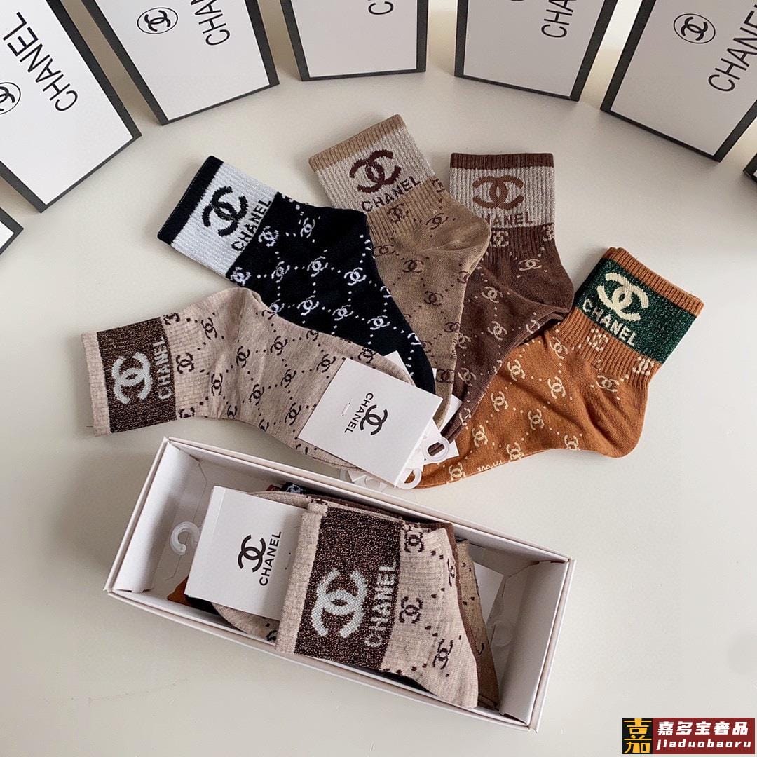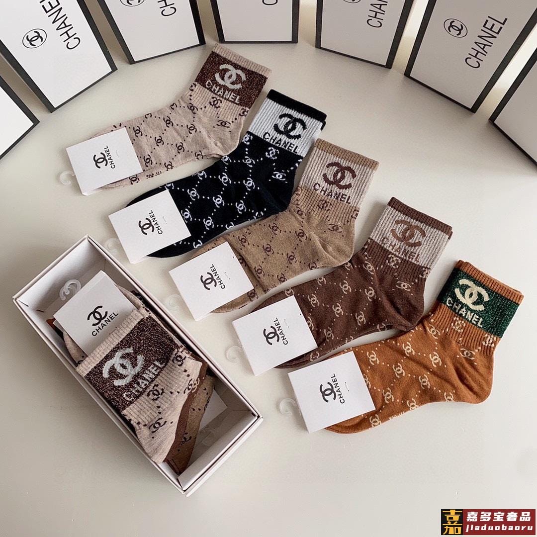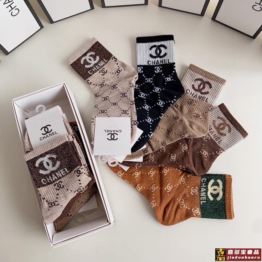 特配专柜包装香奈儿新款金丝中长款堆堆袜袜子一盒五双专柜同步筒