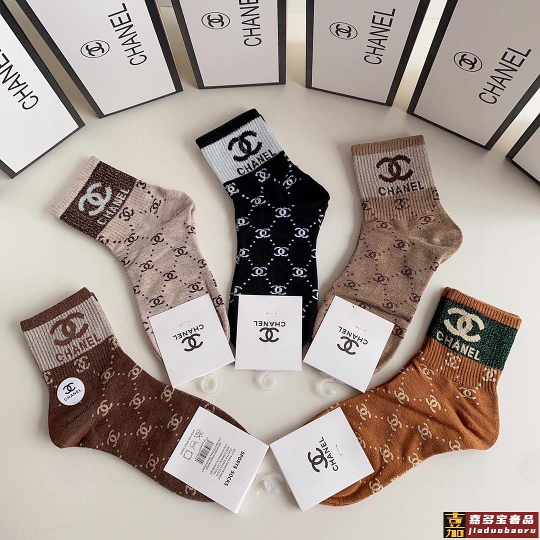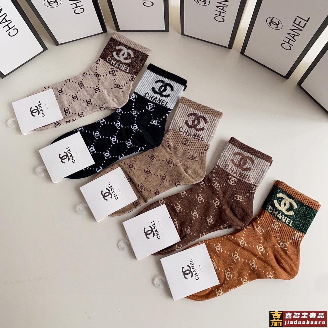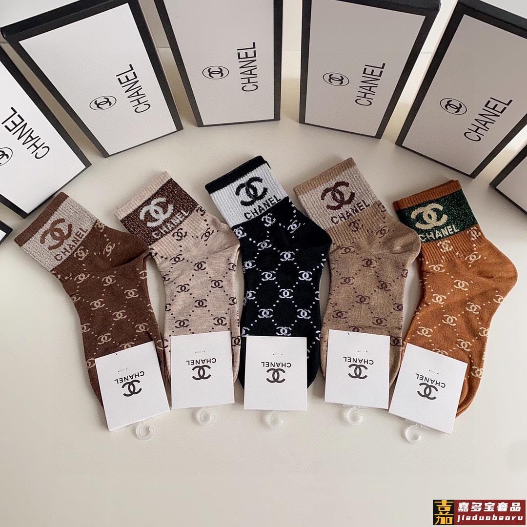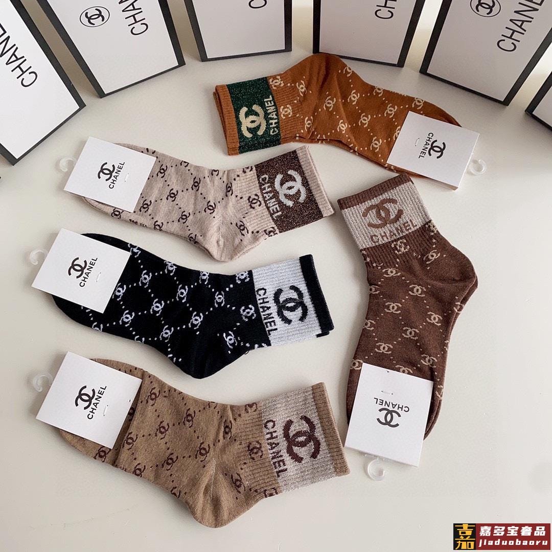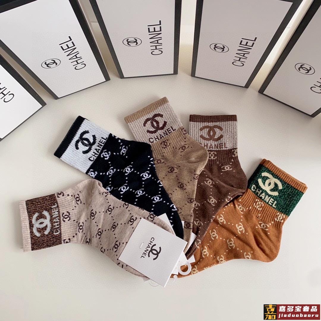 特配专柜包装香奈儿新款金丝中长款堆堆袜袜子一盒五双专柜同步筒