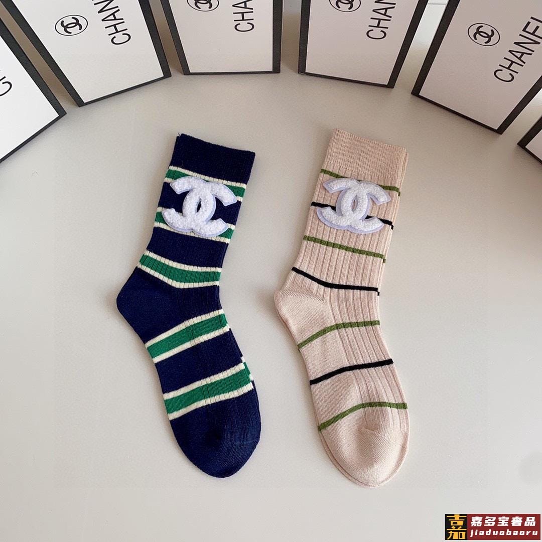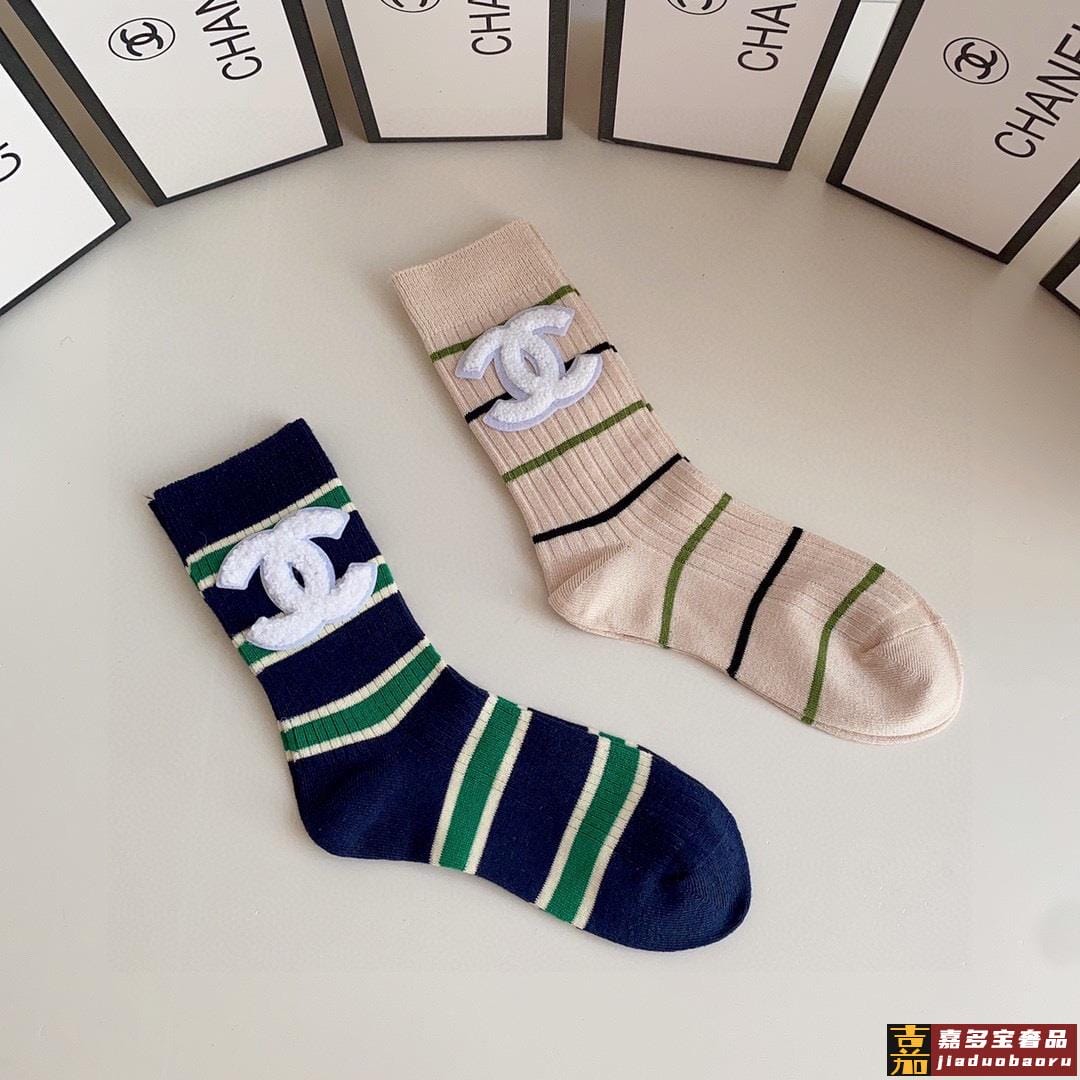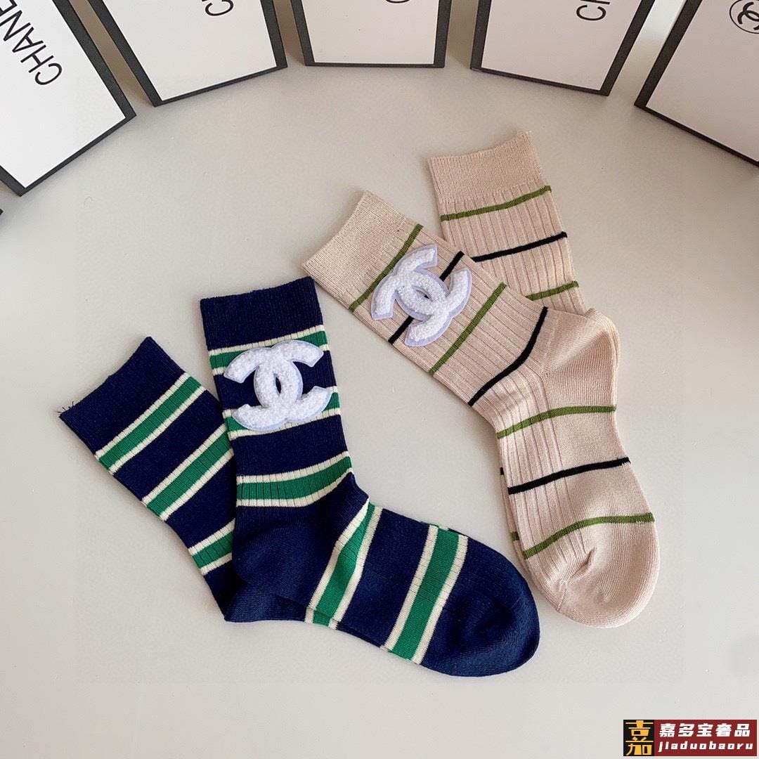 特配专柜包装香奈儿新款中长款堆堆袜袜子一盒两双专柜同步筒袜袜