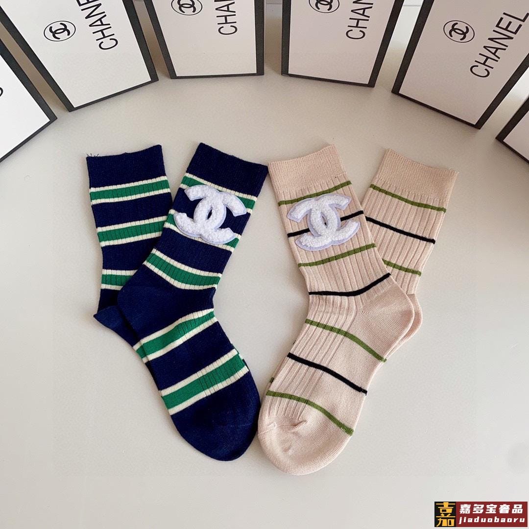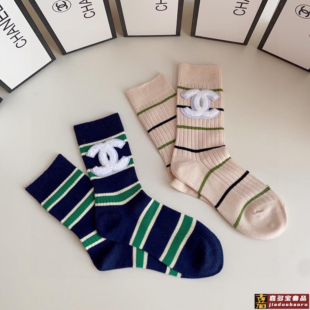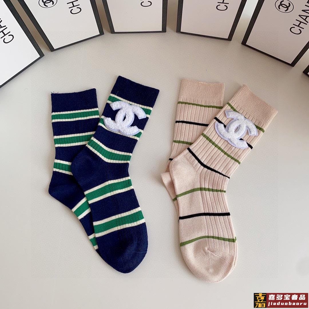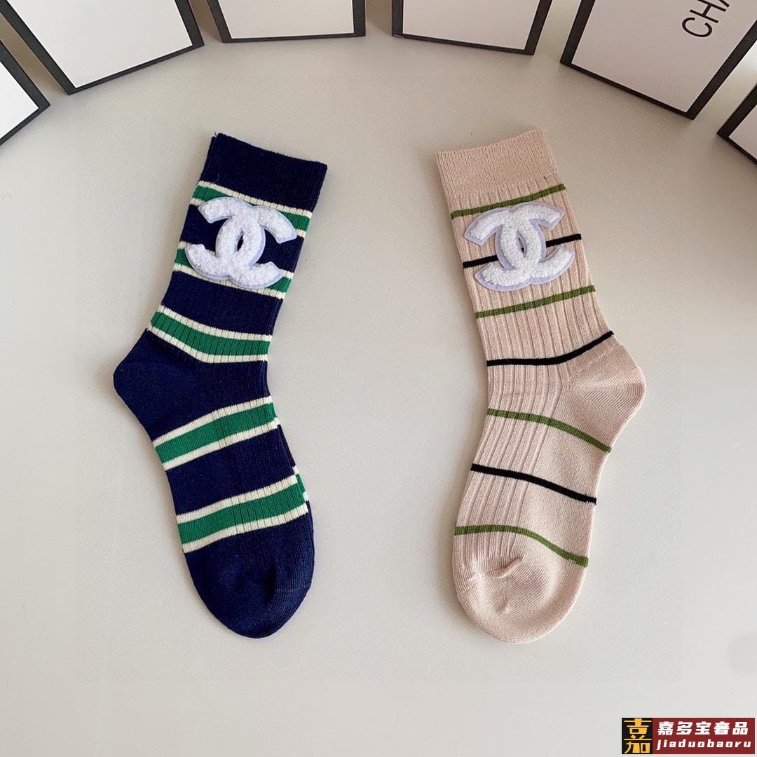 特配专柜包装香奈儿新款中长款堆堆袜袜子一盒两双专柜同步筒袜袜