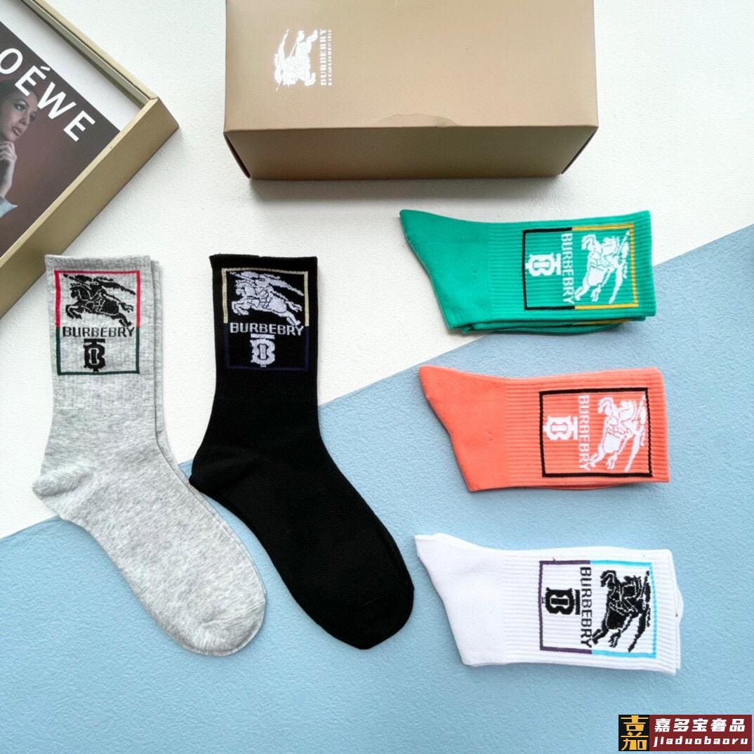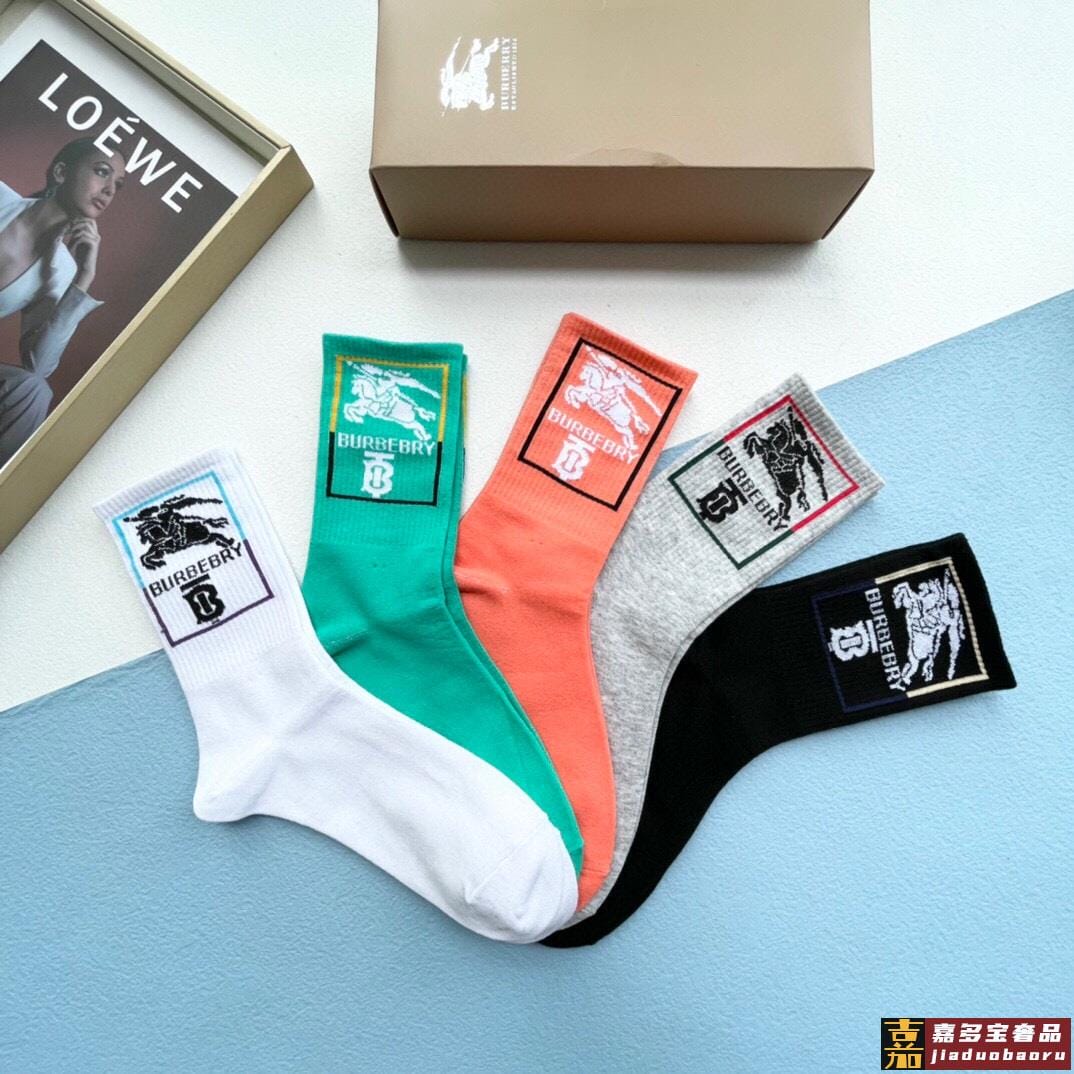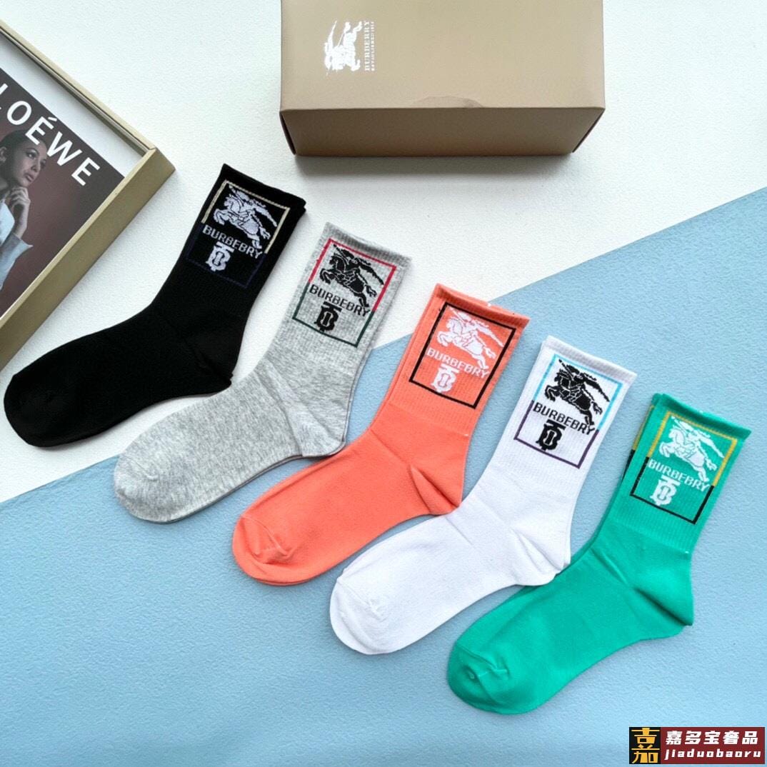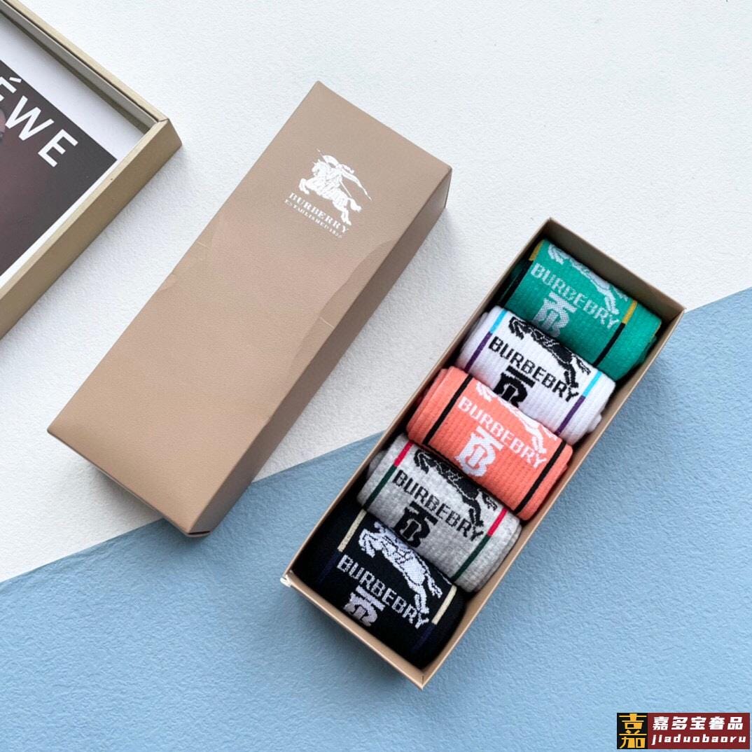 配包装一盒五双巴宝莉专柜最新款高筒款袜子家专柜同步短袜经典字