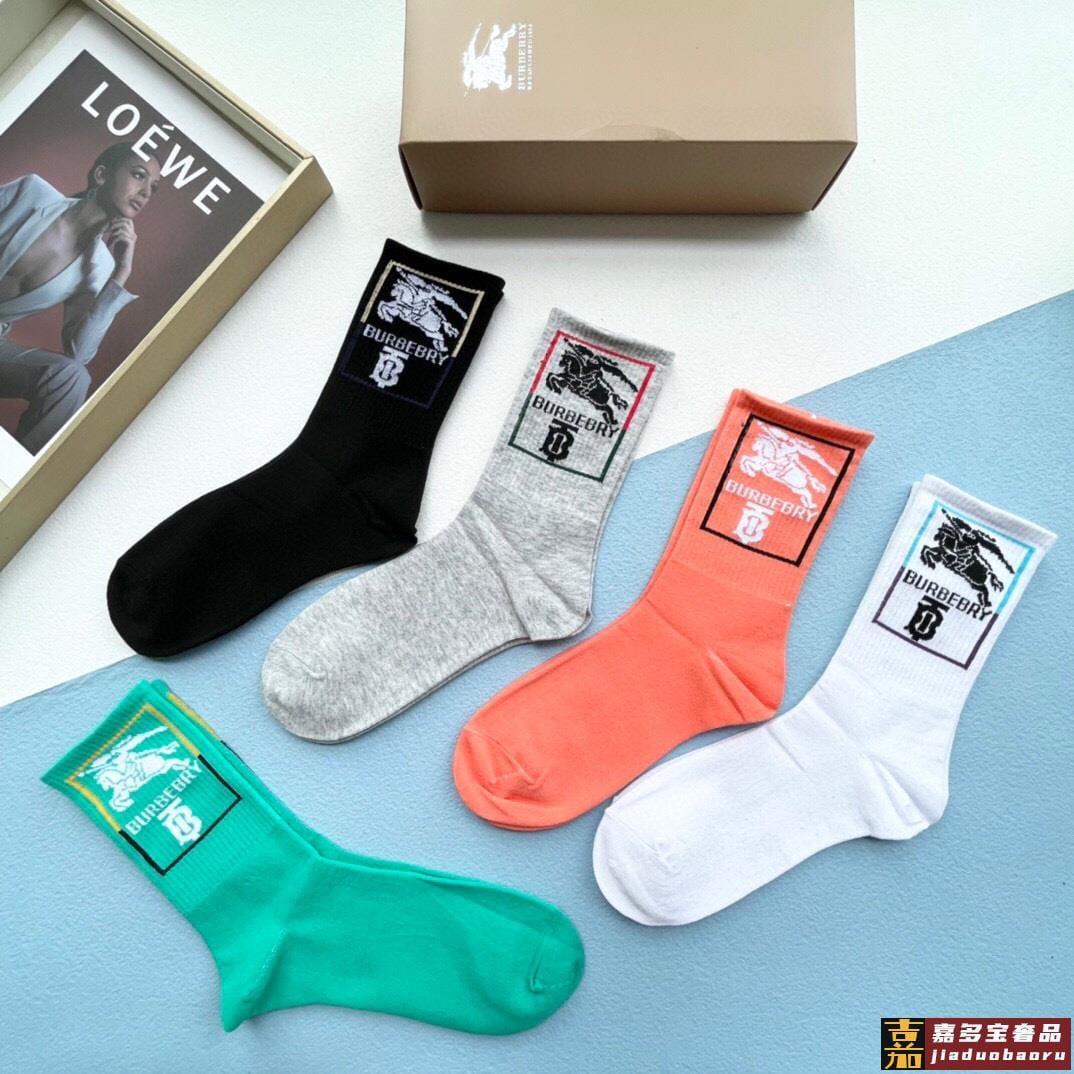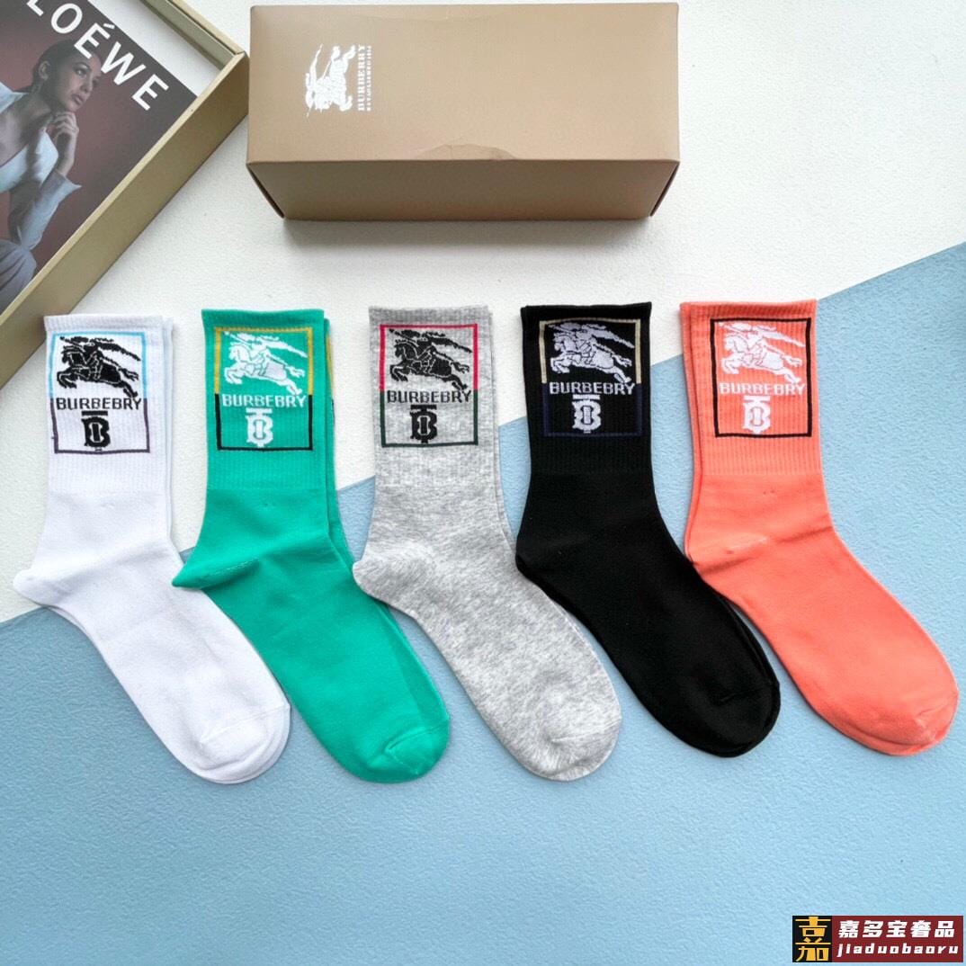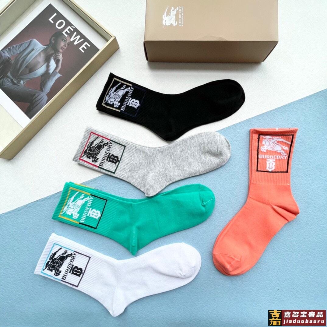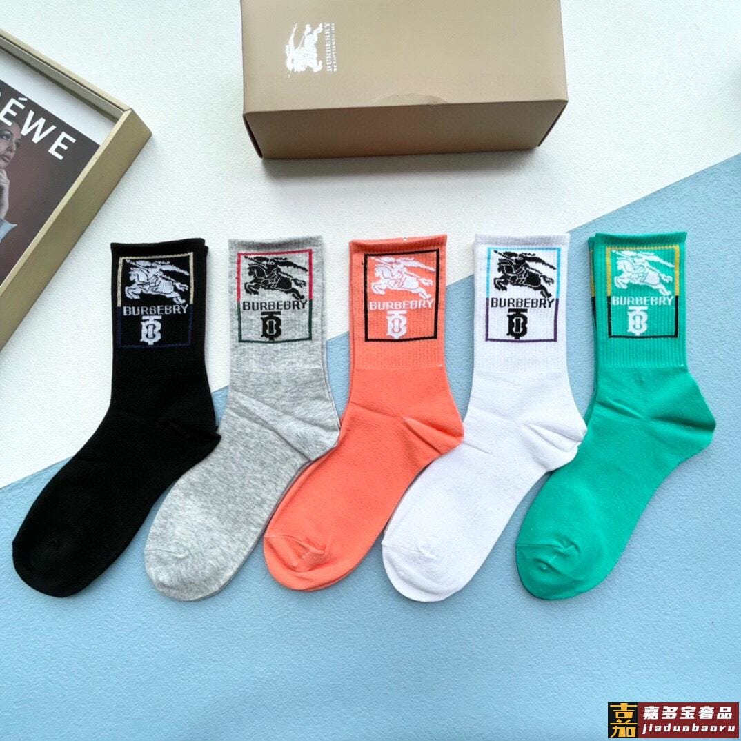配包装一盒五双巴宝莉专柜最新款高筒款袜子家专柜同步短袜经典字