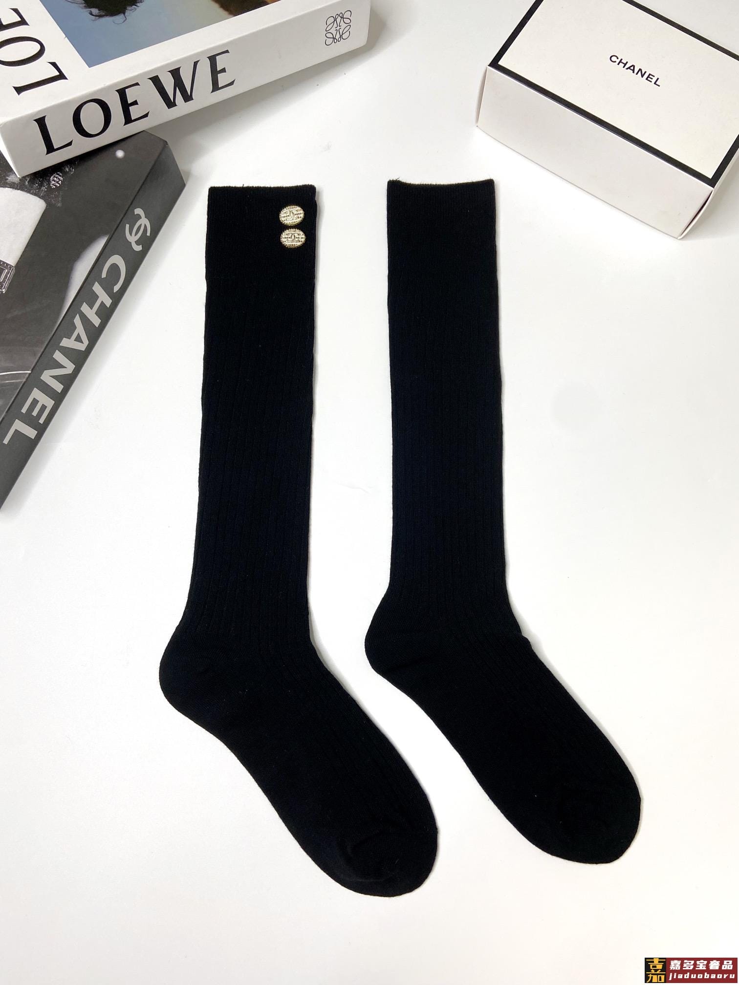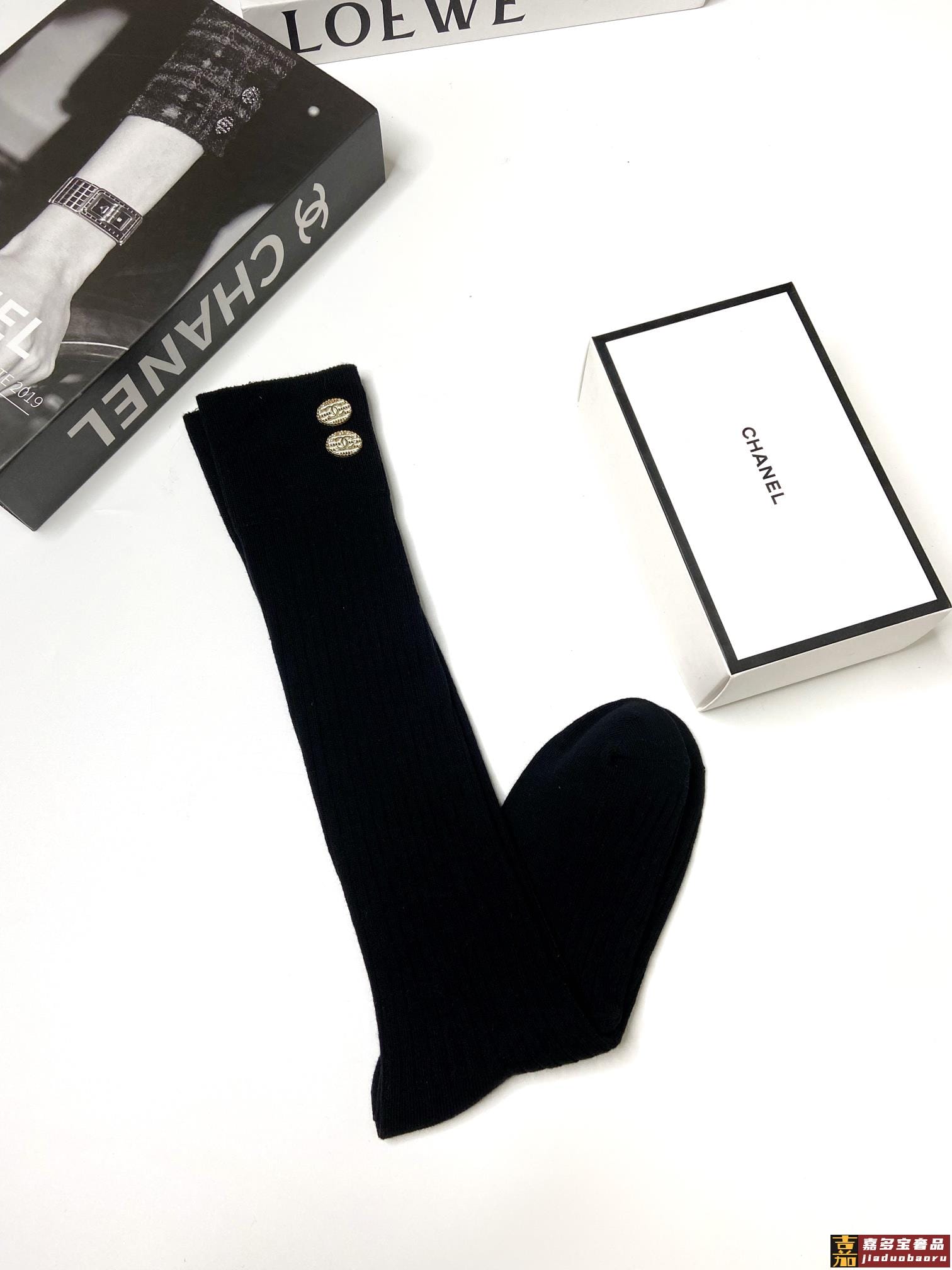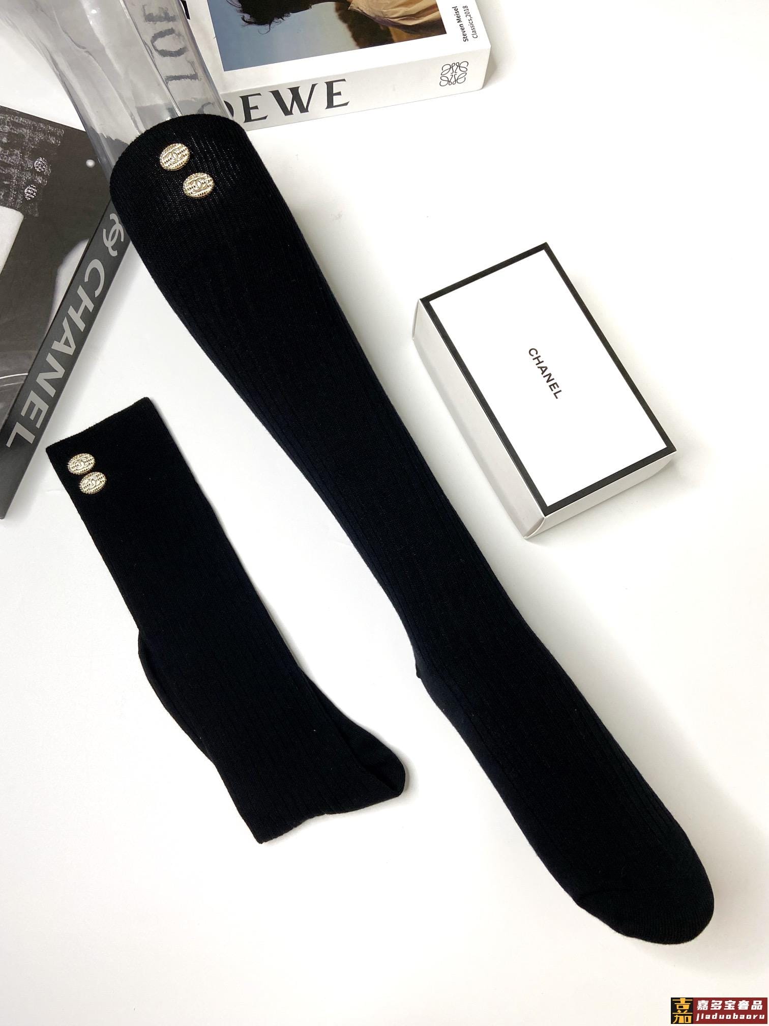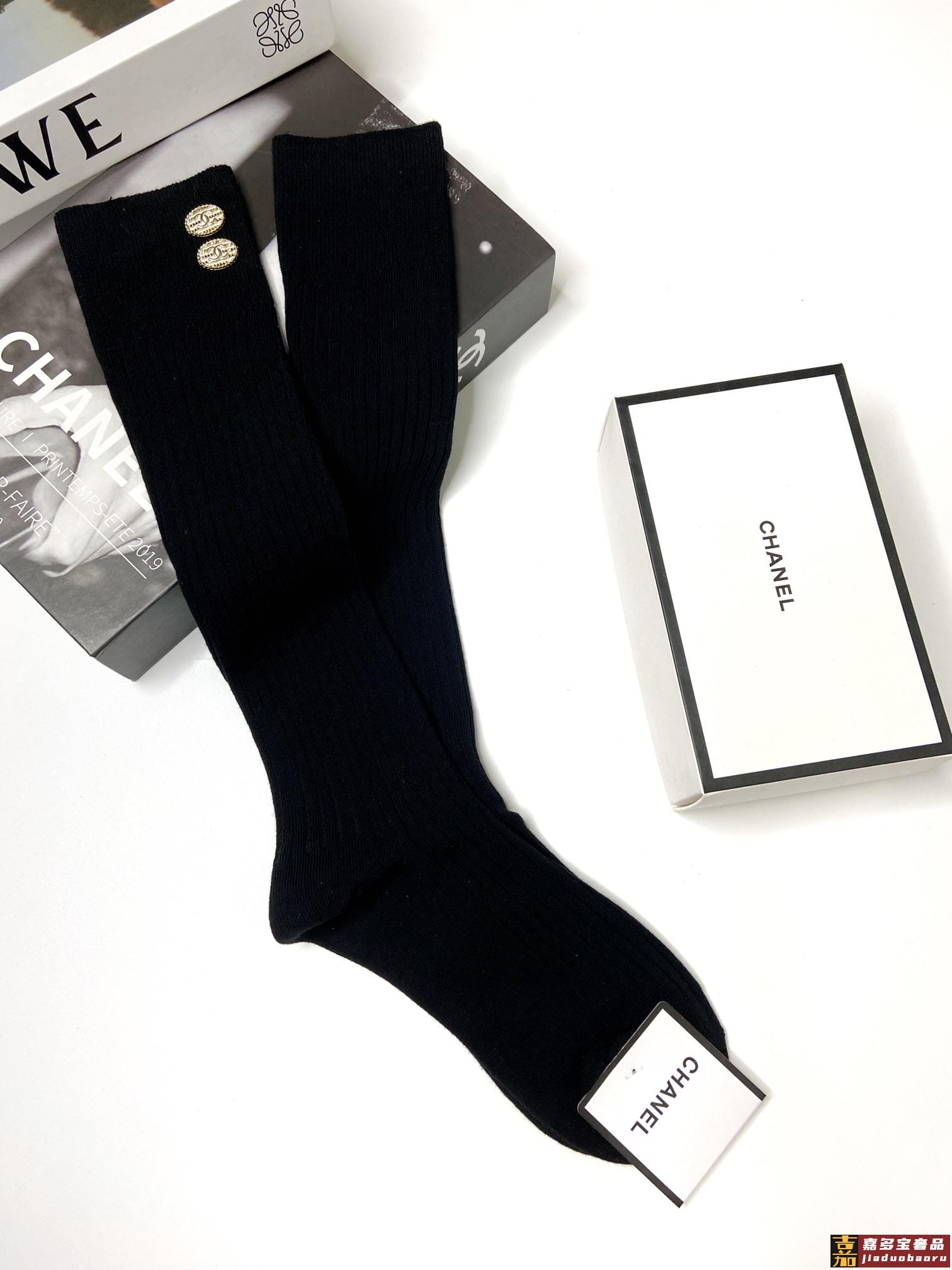 配包装一盒一双香奈儿爆款双经典字母长筒袜小腿袜双针针织纯棉材