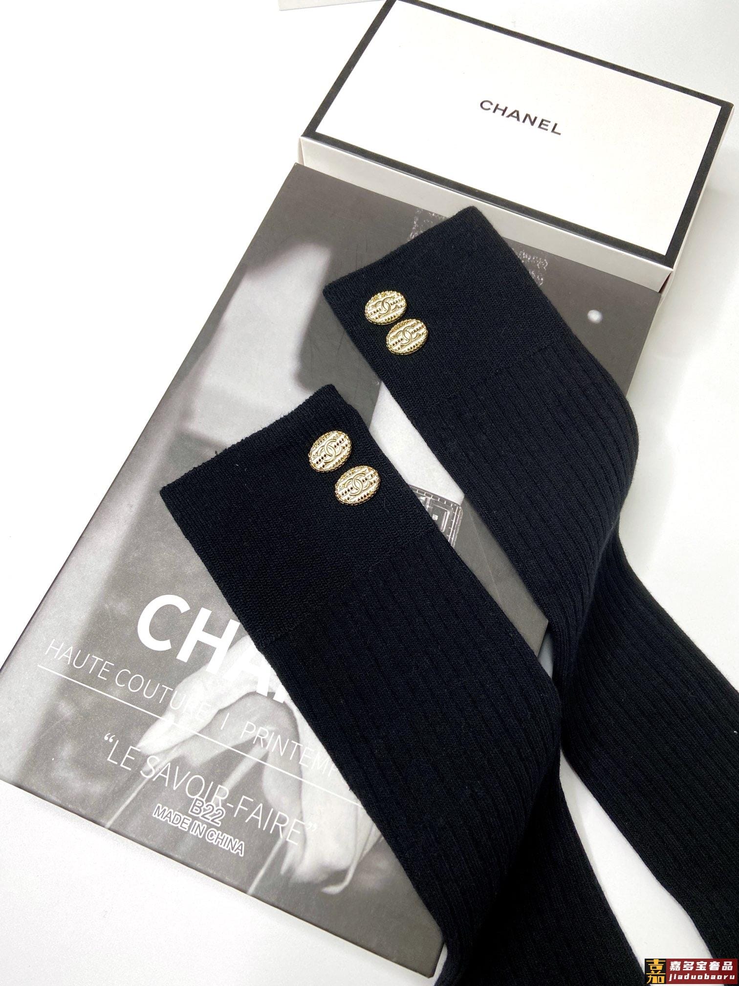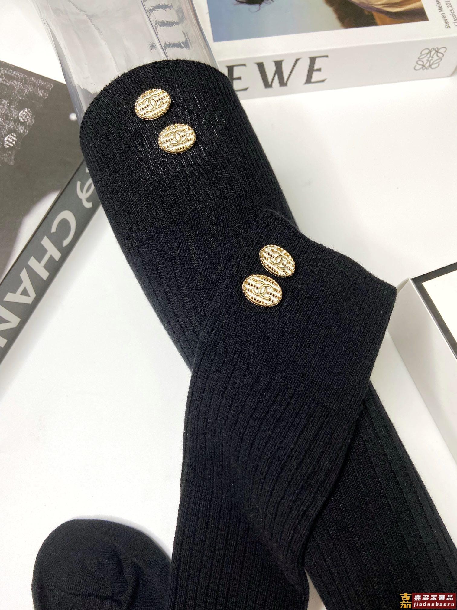 配包装一盒五双香奈儿小香家新品烫金纯黑短筒男女款袜子专柜同步
