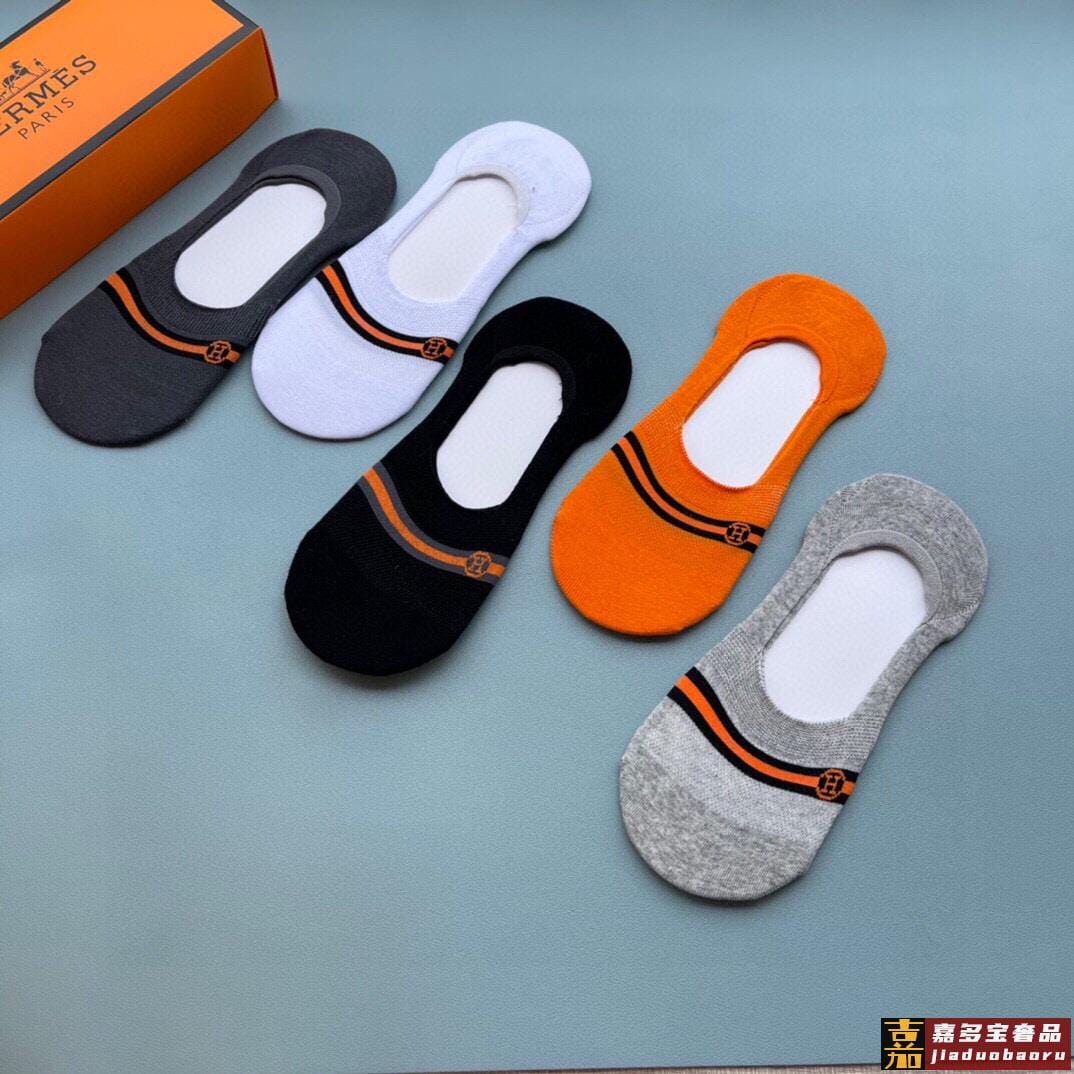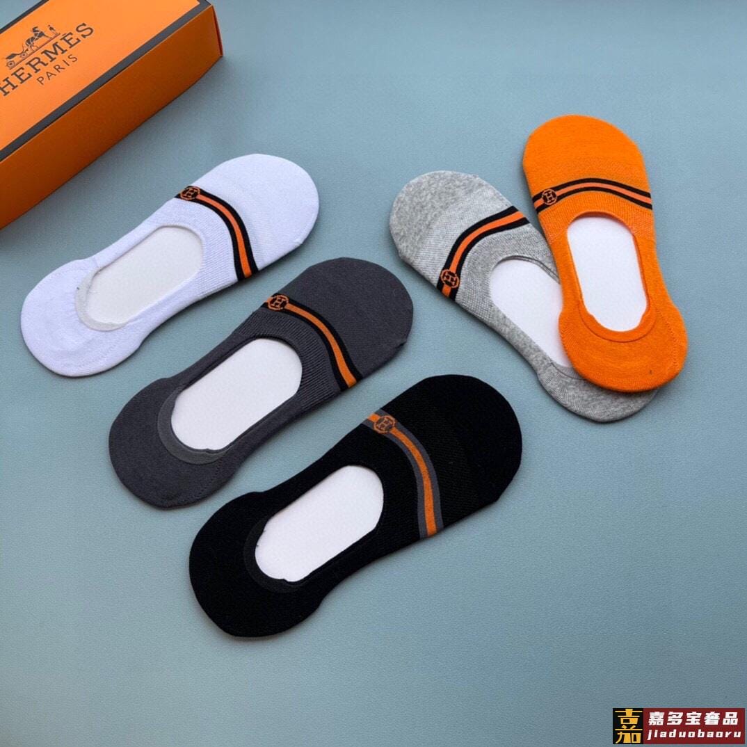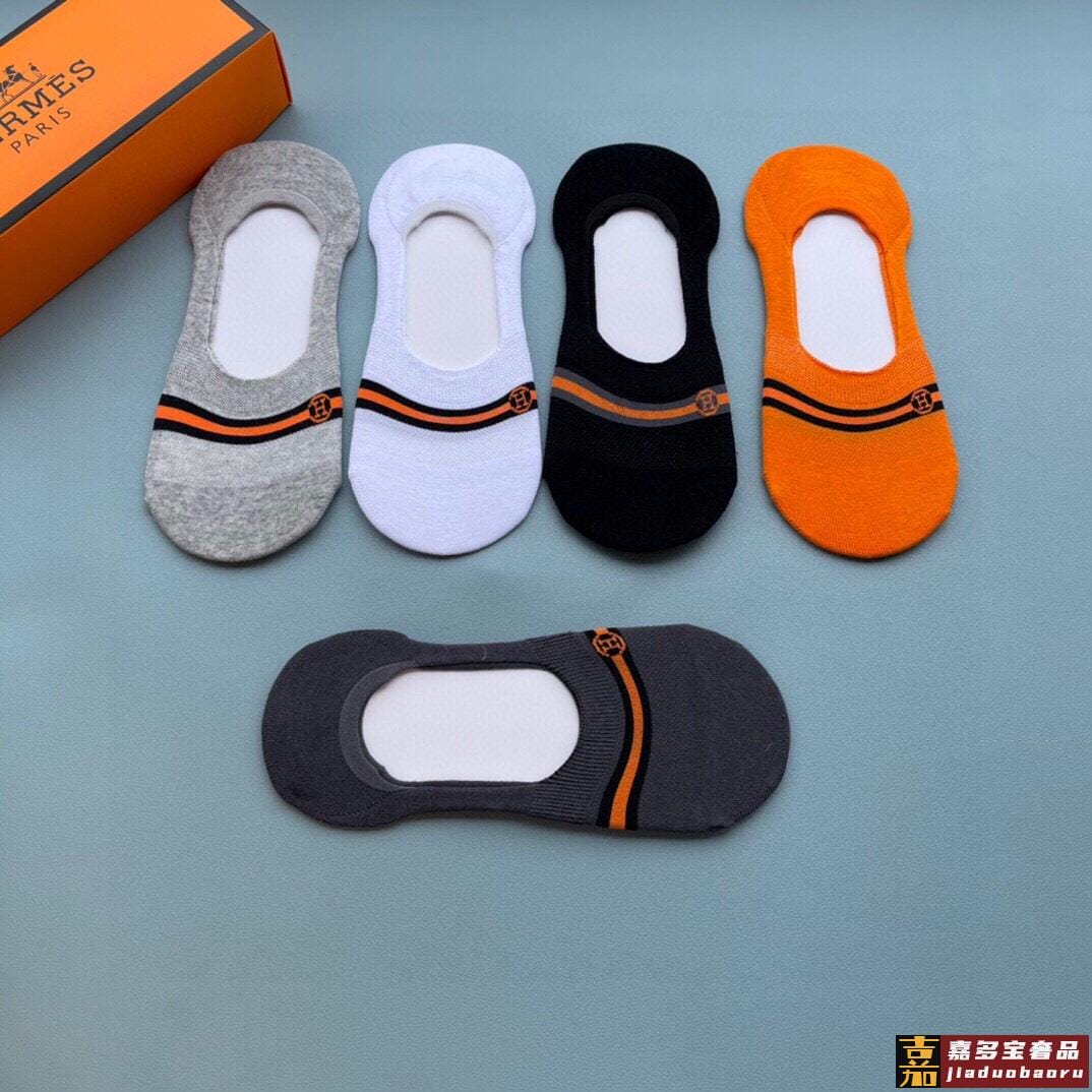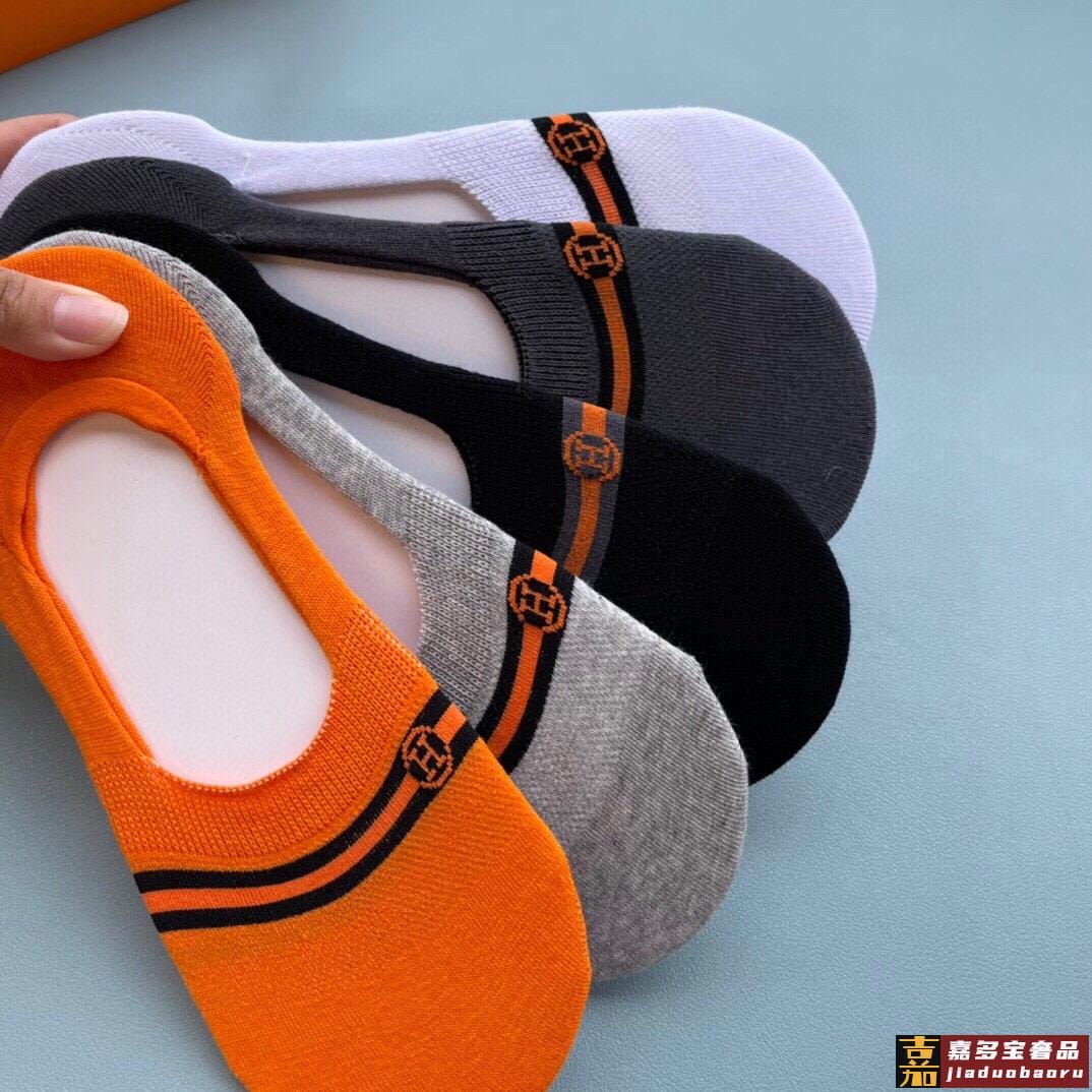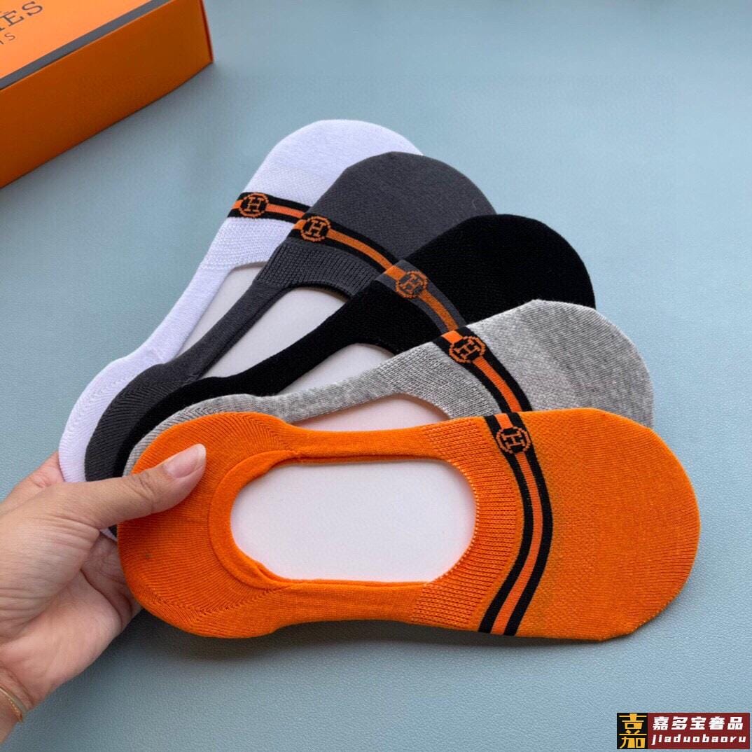 爱马仕大新品春夏款袜子一盒五双提花经典字母标志搭配极简素色纯