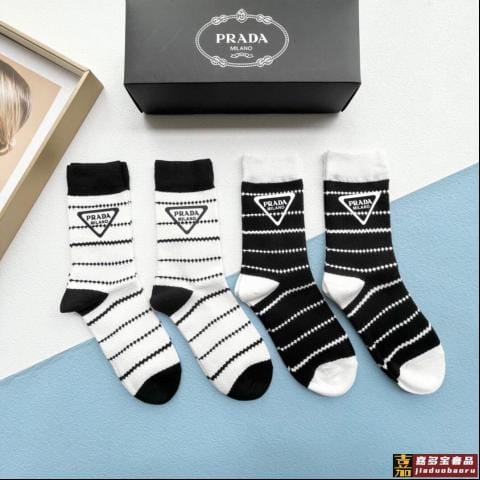 配包装一盒四双普拉达高品质超级爆款网红袜子家官网同步烫印字母