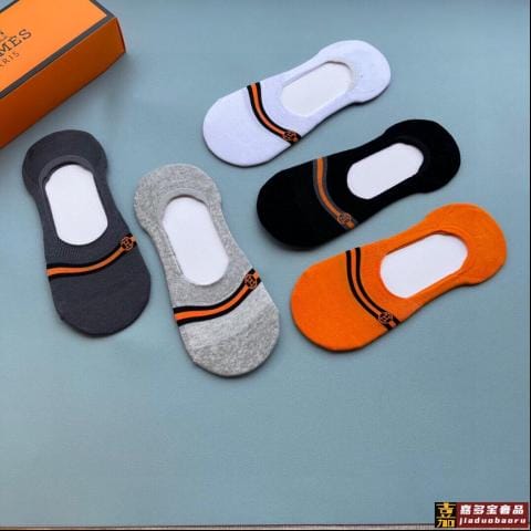 爱马仕大新品春夏款袜子一盒五双提花经典字母标志搭配极简素色纯