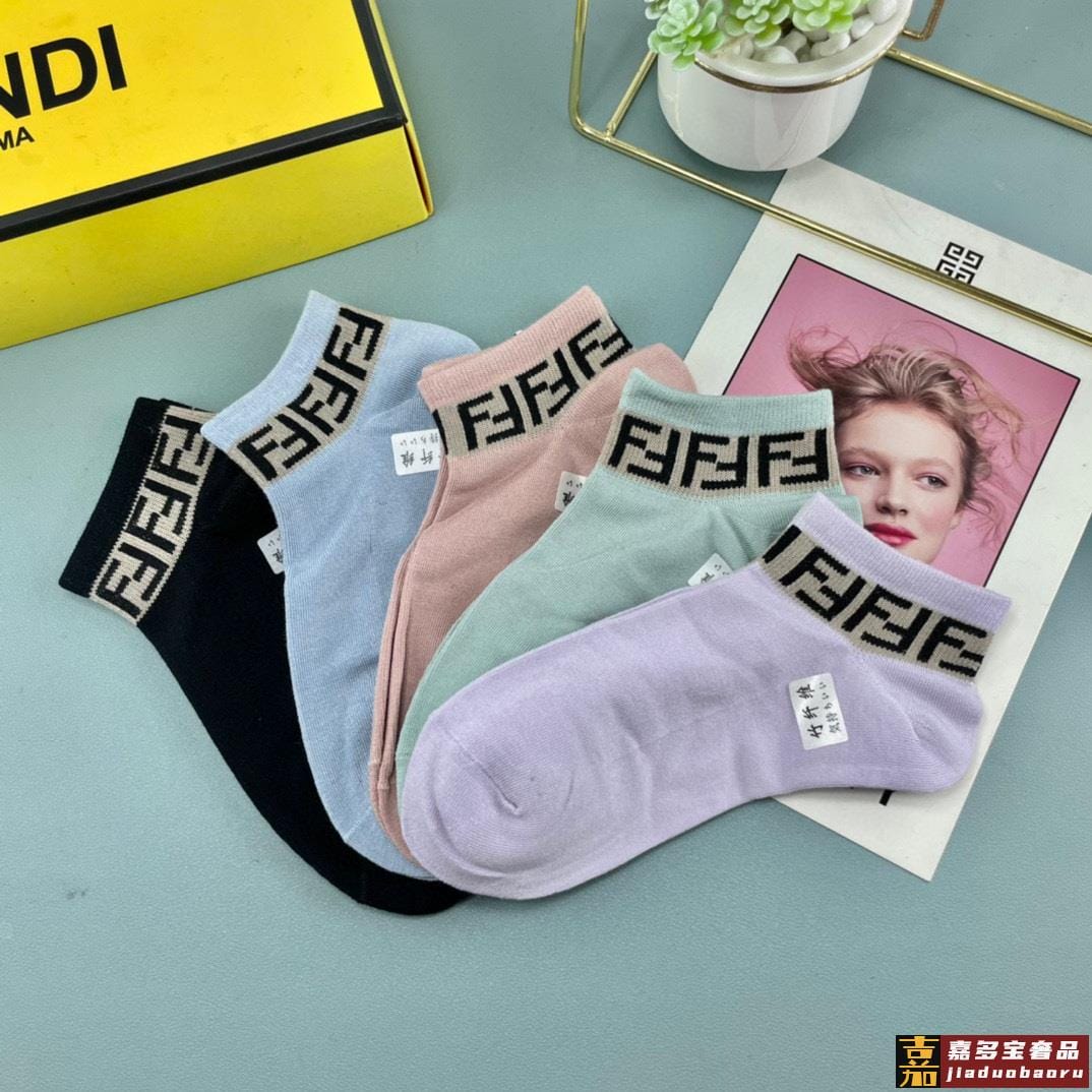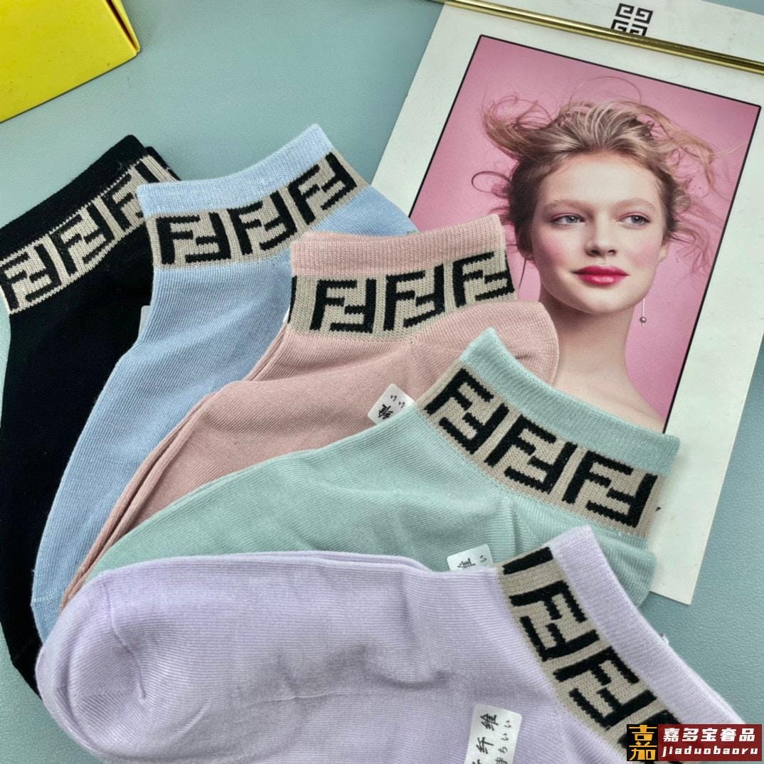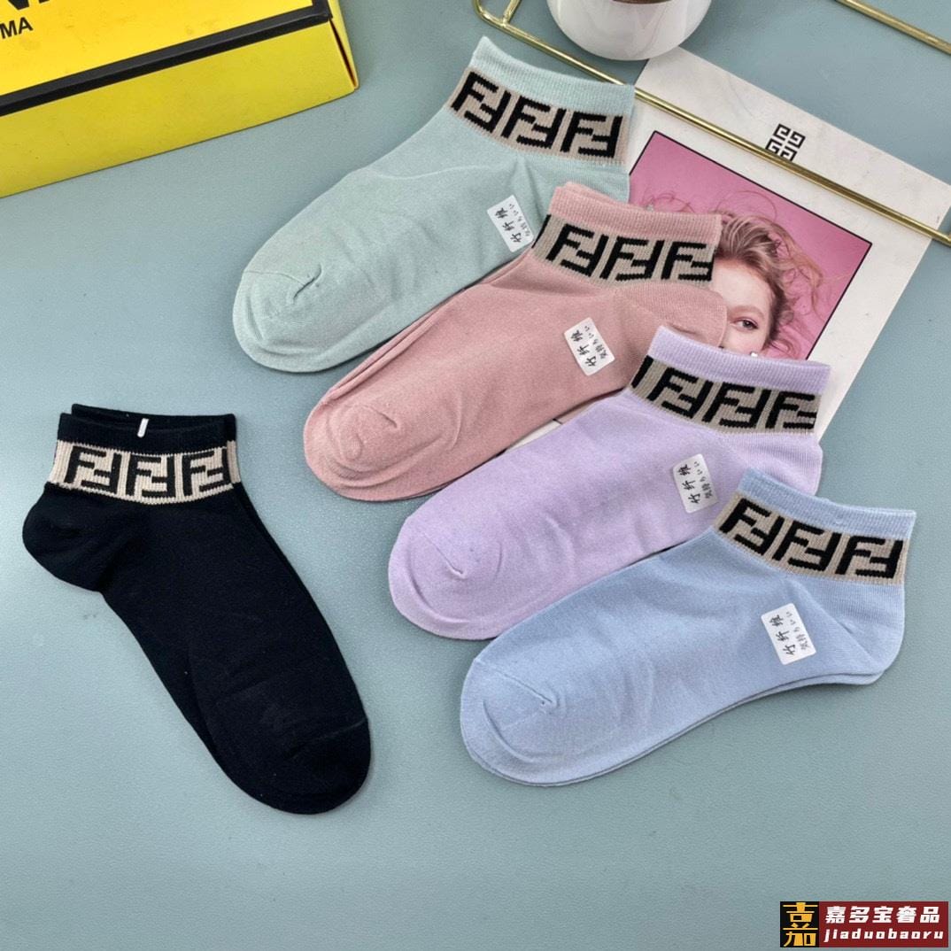芬迪新款中短款堆堆袜袜子一盒五双专柜同步筒袜袜大牌出街潮人必