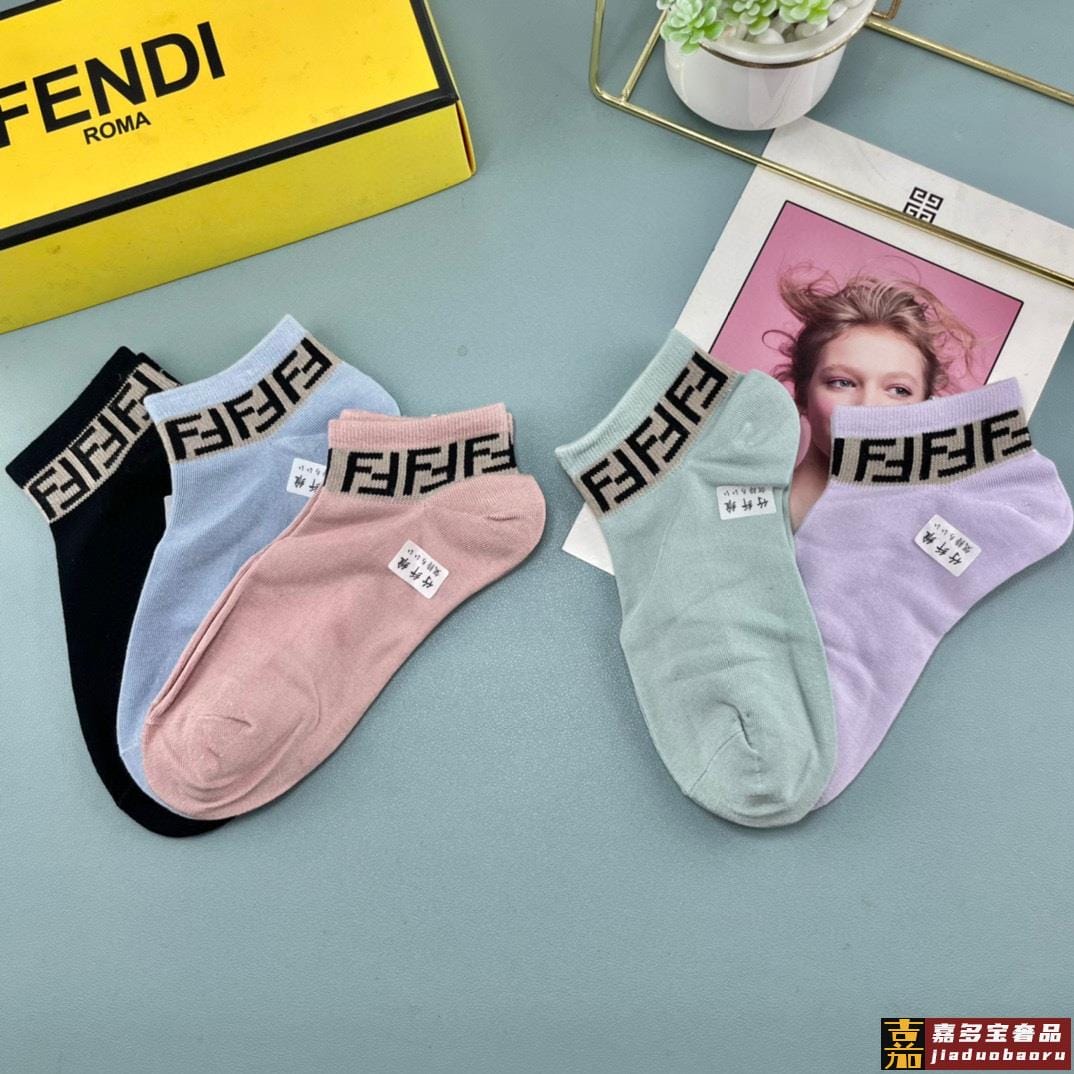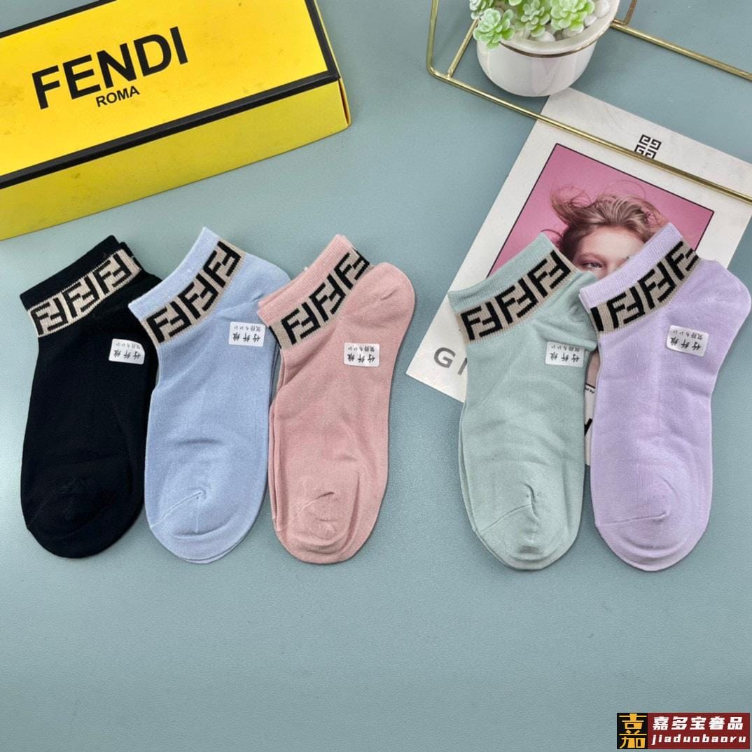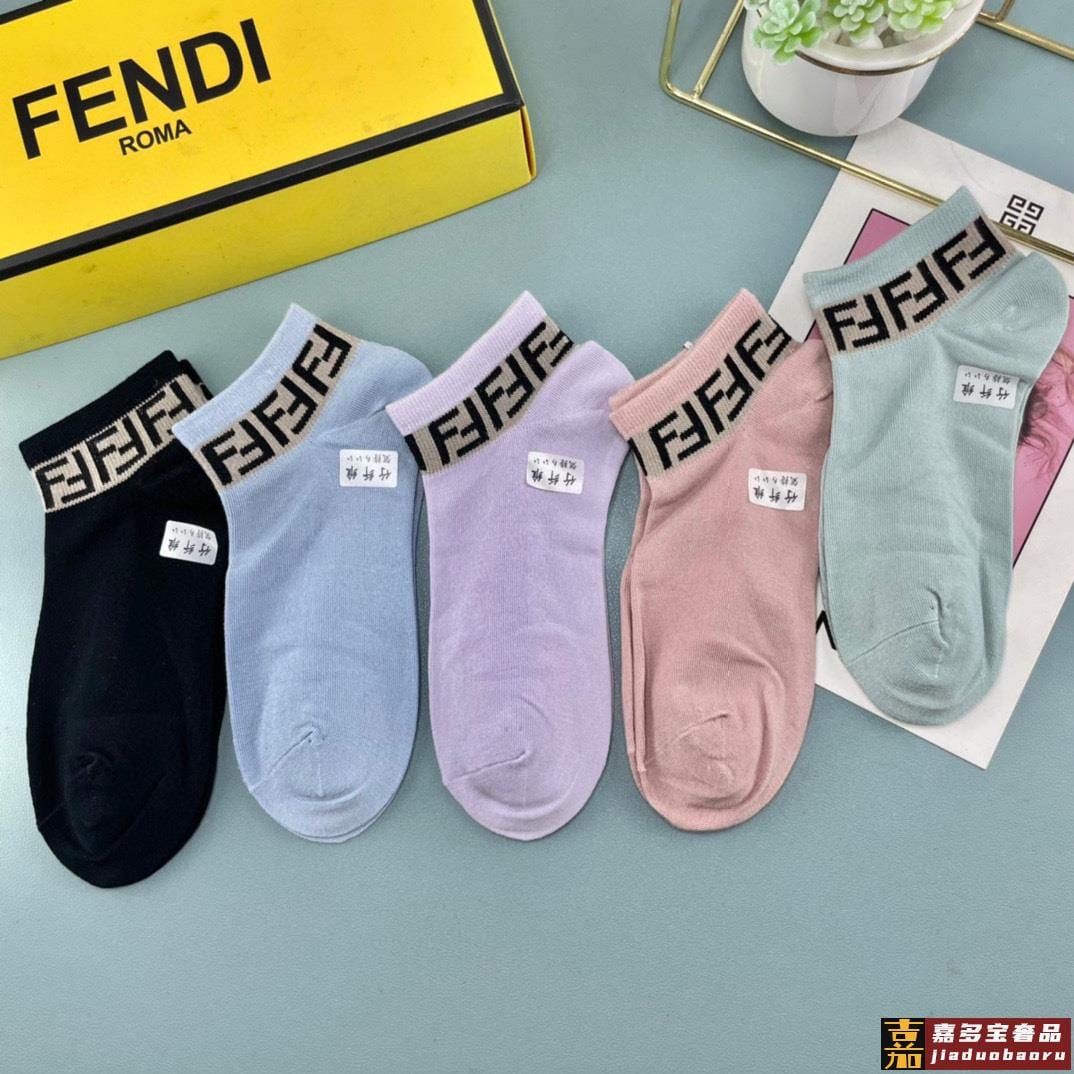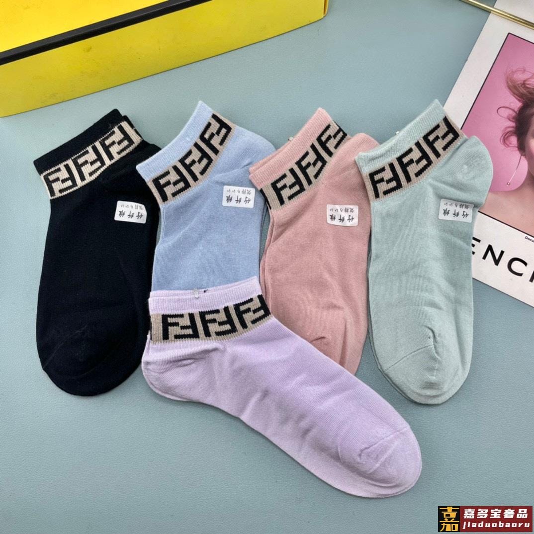 芬迪新款中短款堆堆袜袜子一盒五双专柜同步筒袜袜大牌出街潮人必