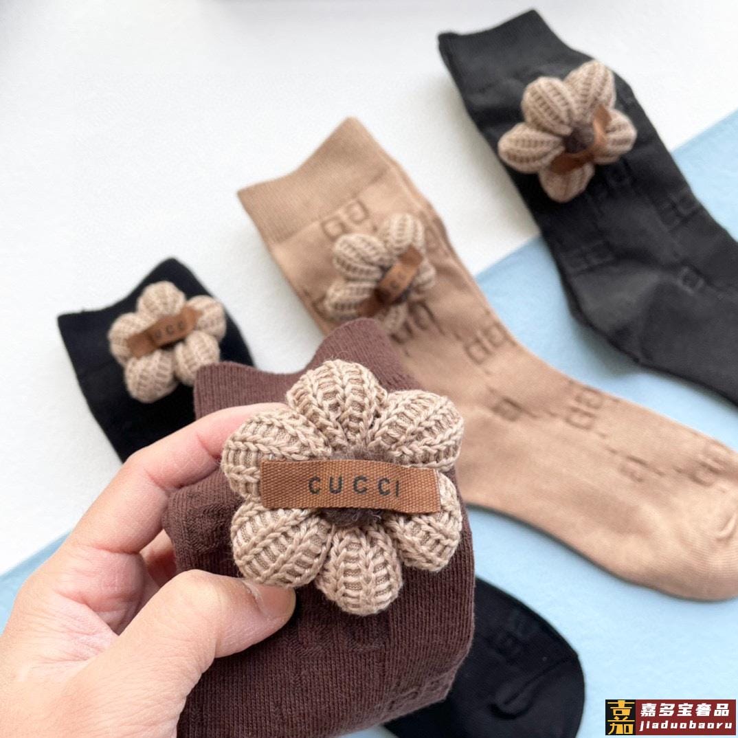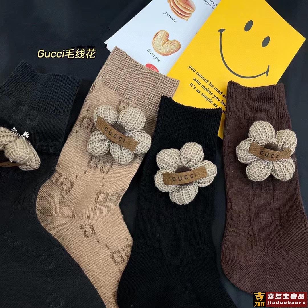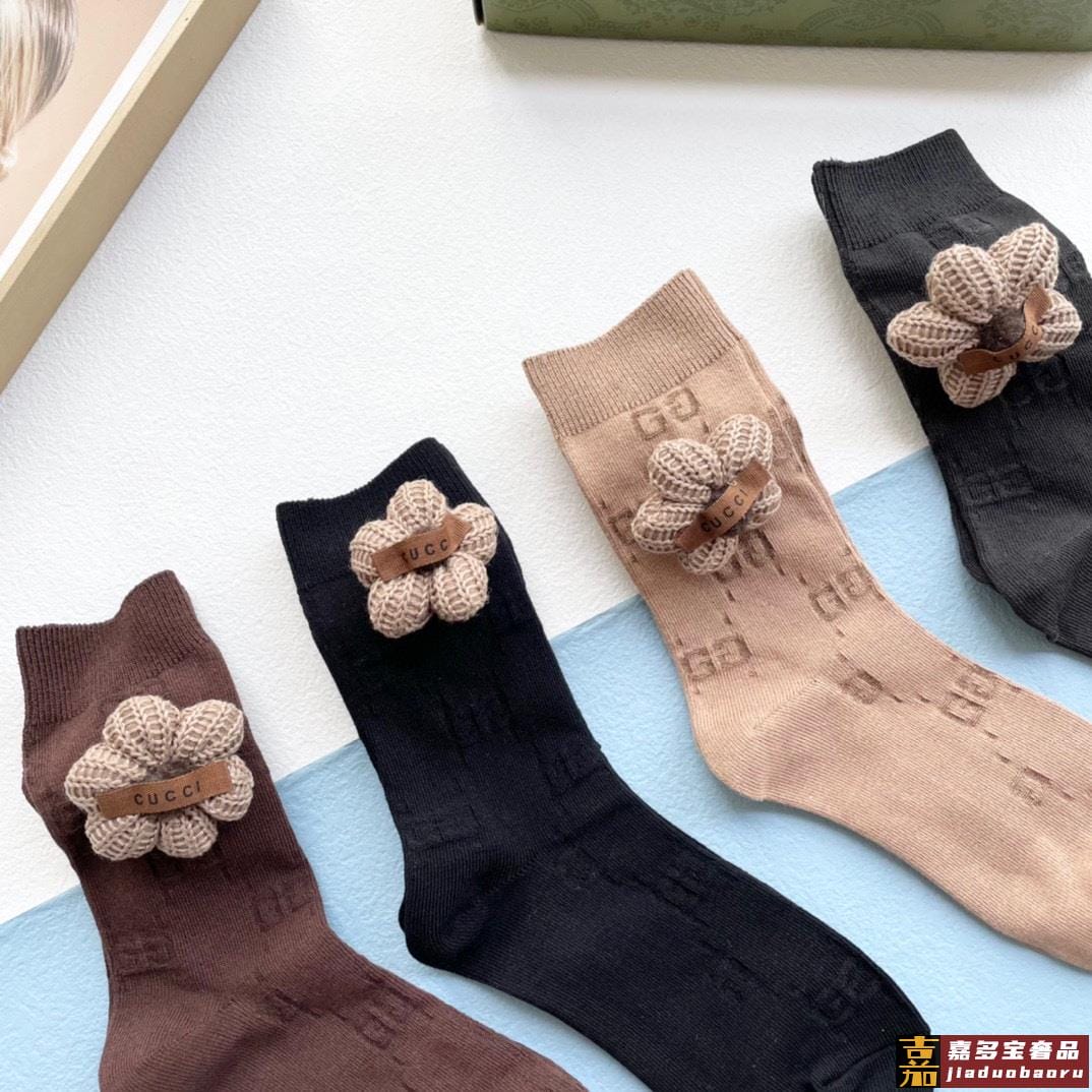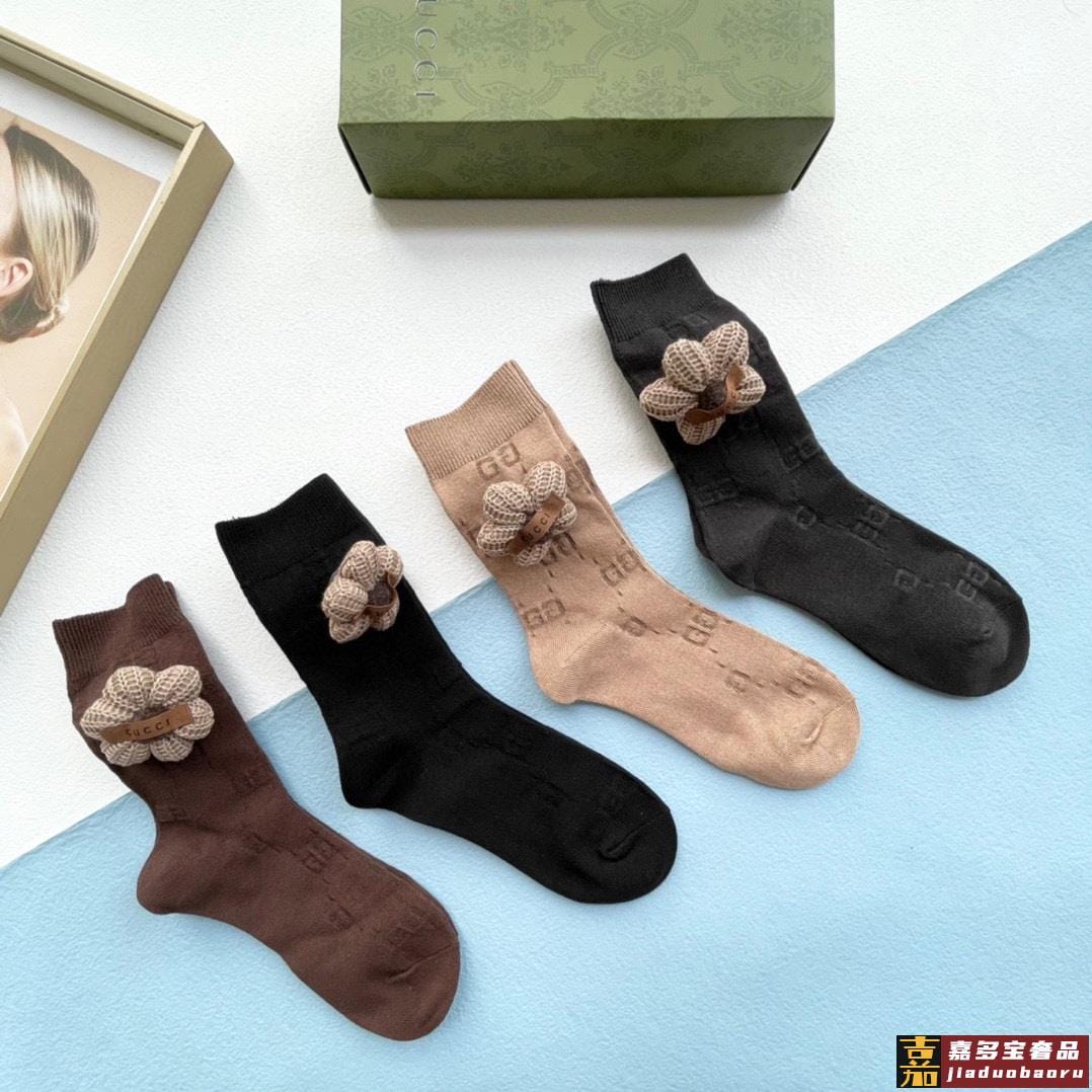 配包装一盒四双高版本官网同款古奇爆款重工别针毛球中筒袜高版本