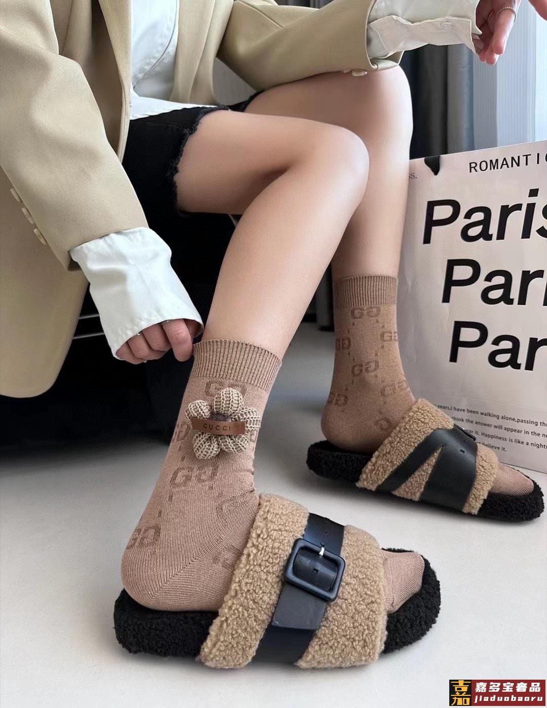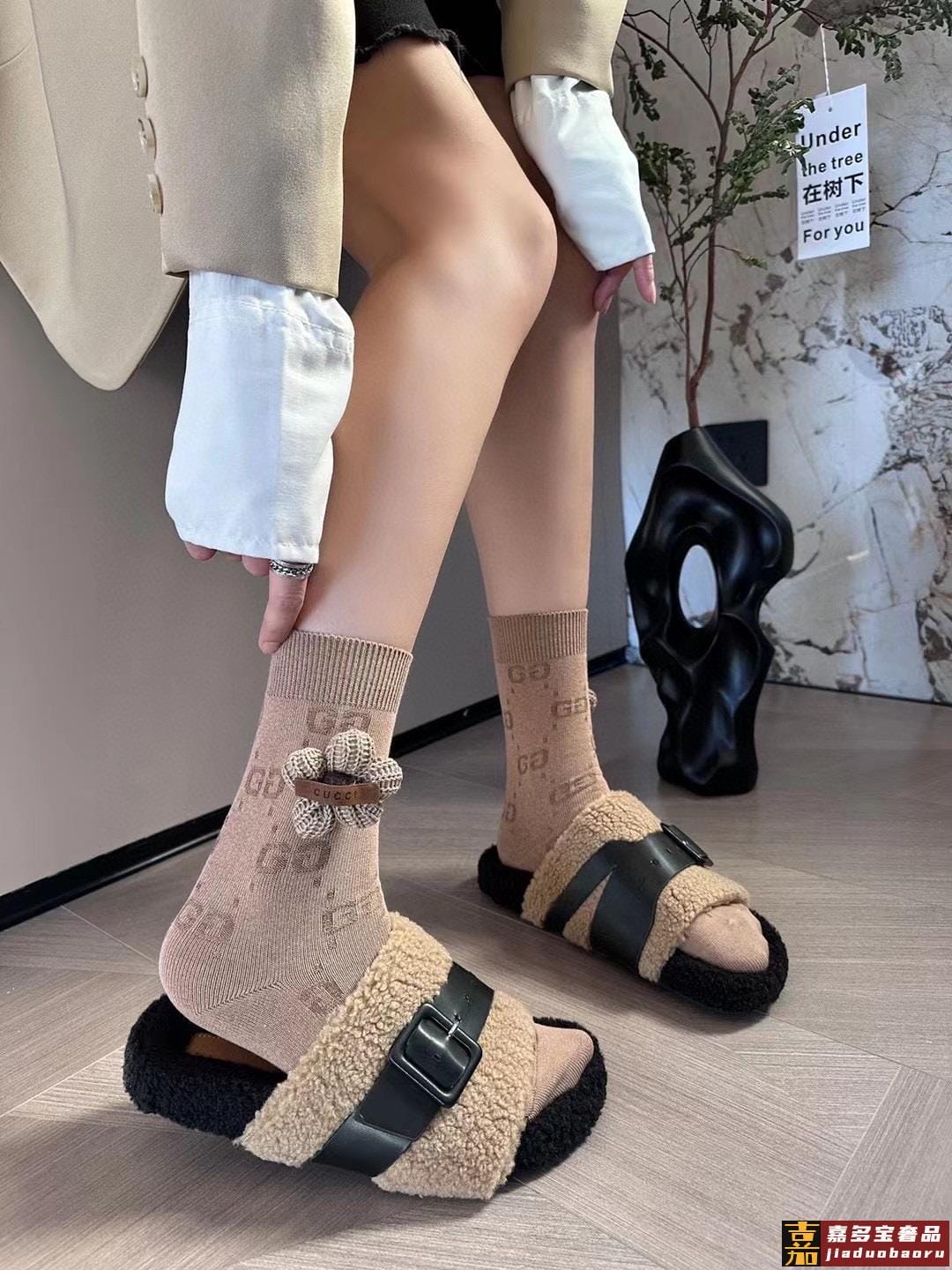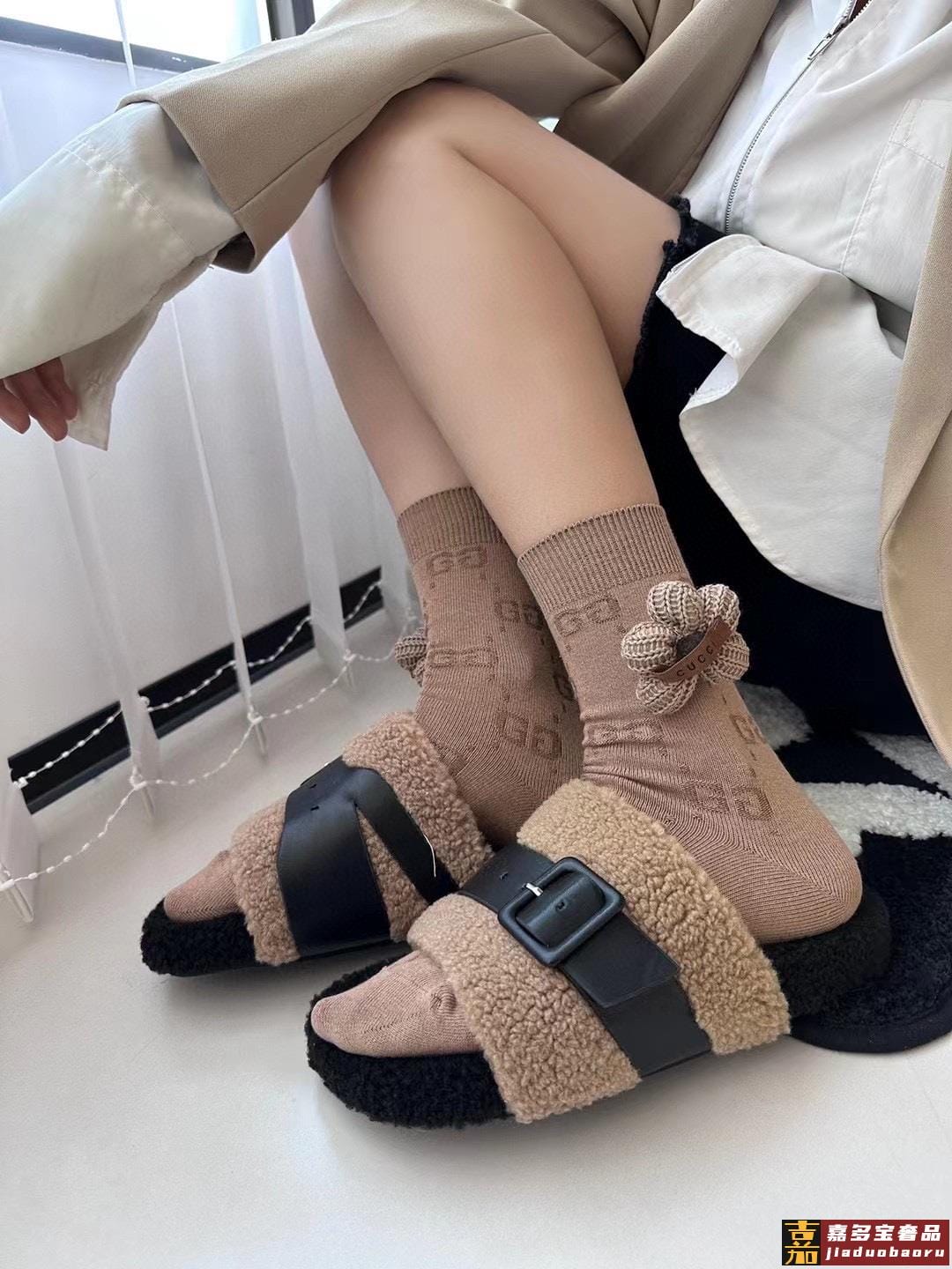 配包装一盒四双高版本官网同款古奇爆款重工别针毛球中筒袜高版本