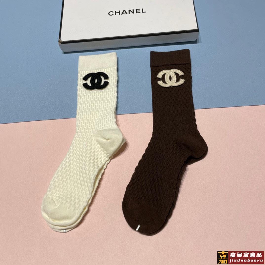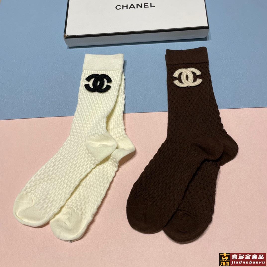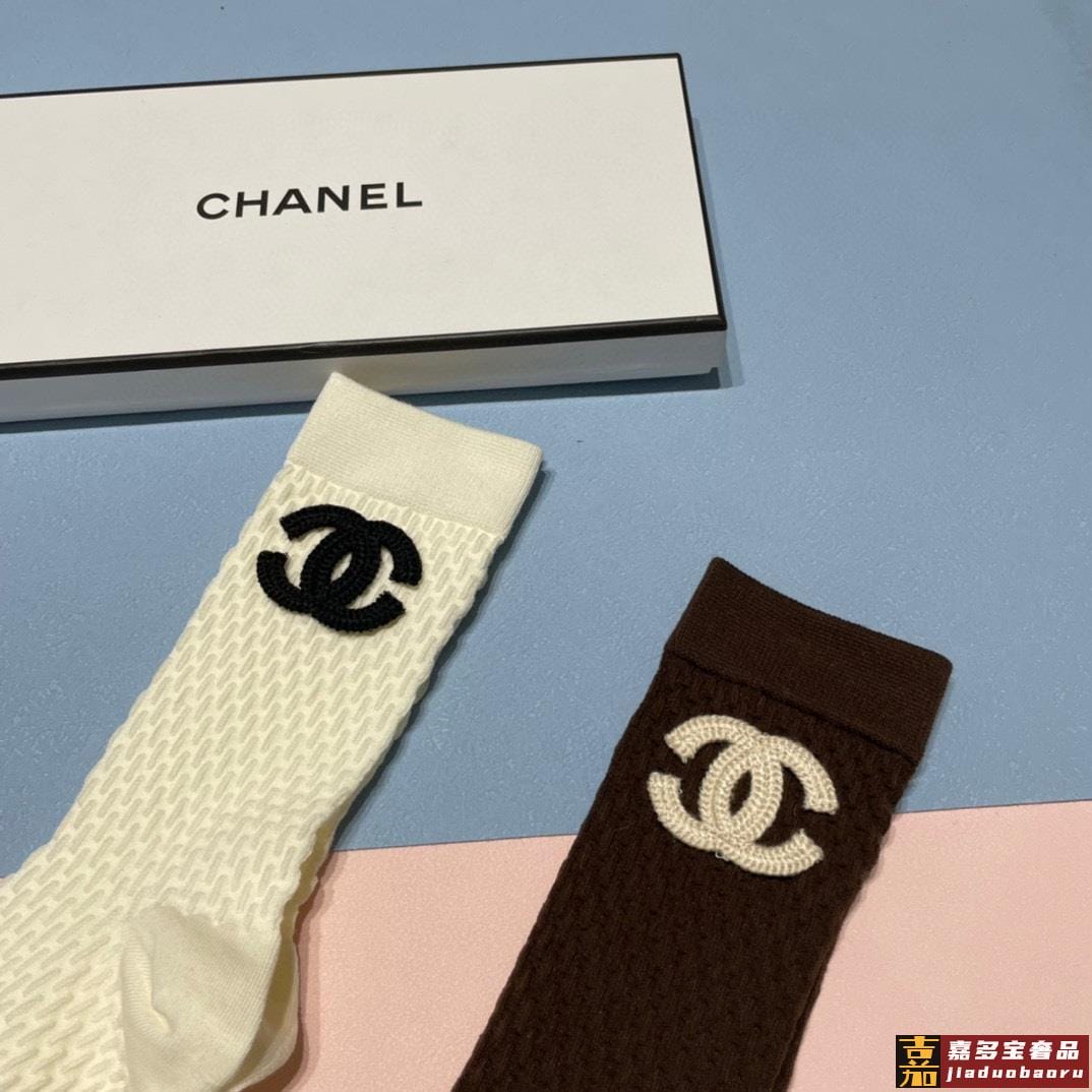 香奈儿新款中长款堆堆袜袜子一盒两双专柜同步筒袜袜子大牌出街潮