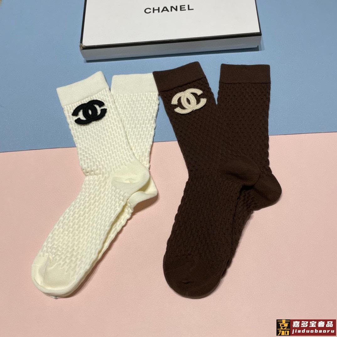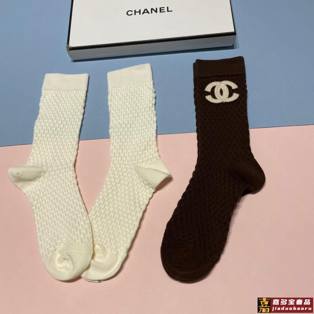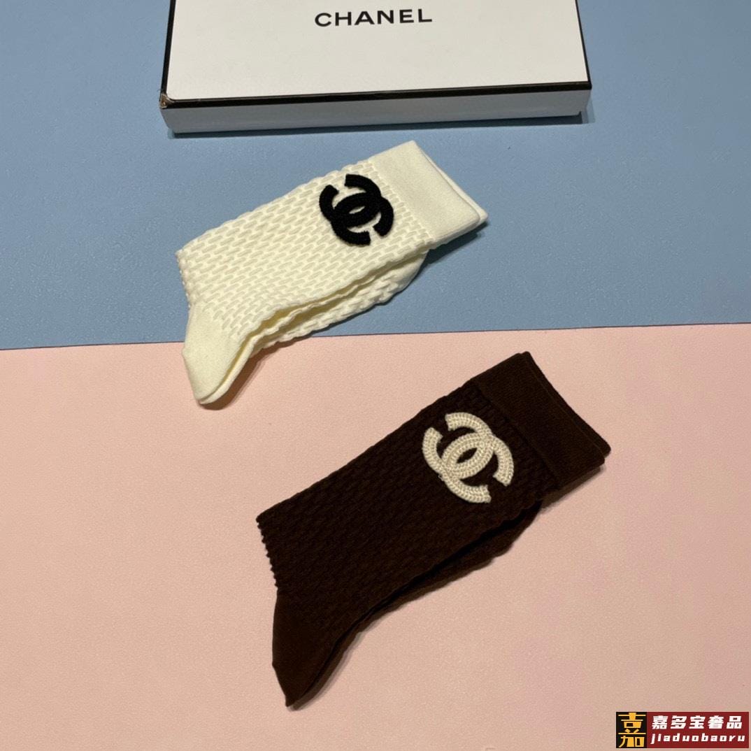 香奈儿新款中长款堆堆袜袜子一盒两双专柜同步筒袜袜子大牌出街潮