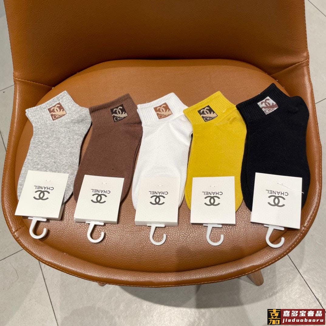 配包装香奈儿新款经典中短款堆堆袜袜子一盒五双专柜同步筒袜袜子
