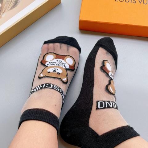 配包装一盒五双欧美大牌新款直筒短款冰丝袜子冰丝加棉镂空经典标