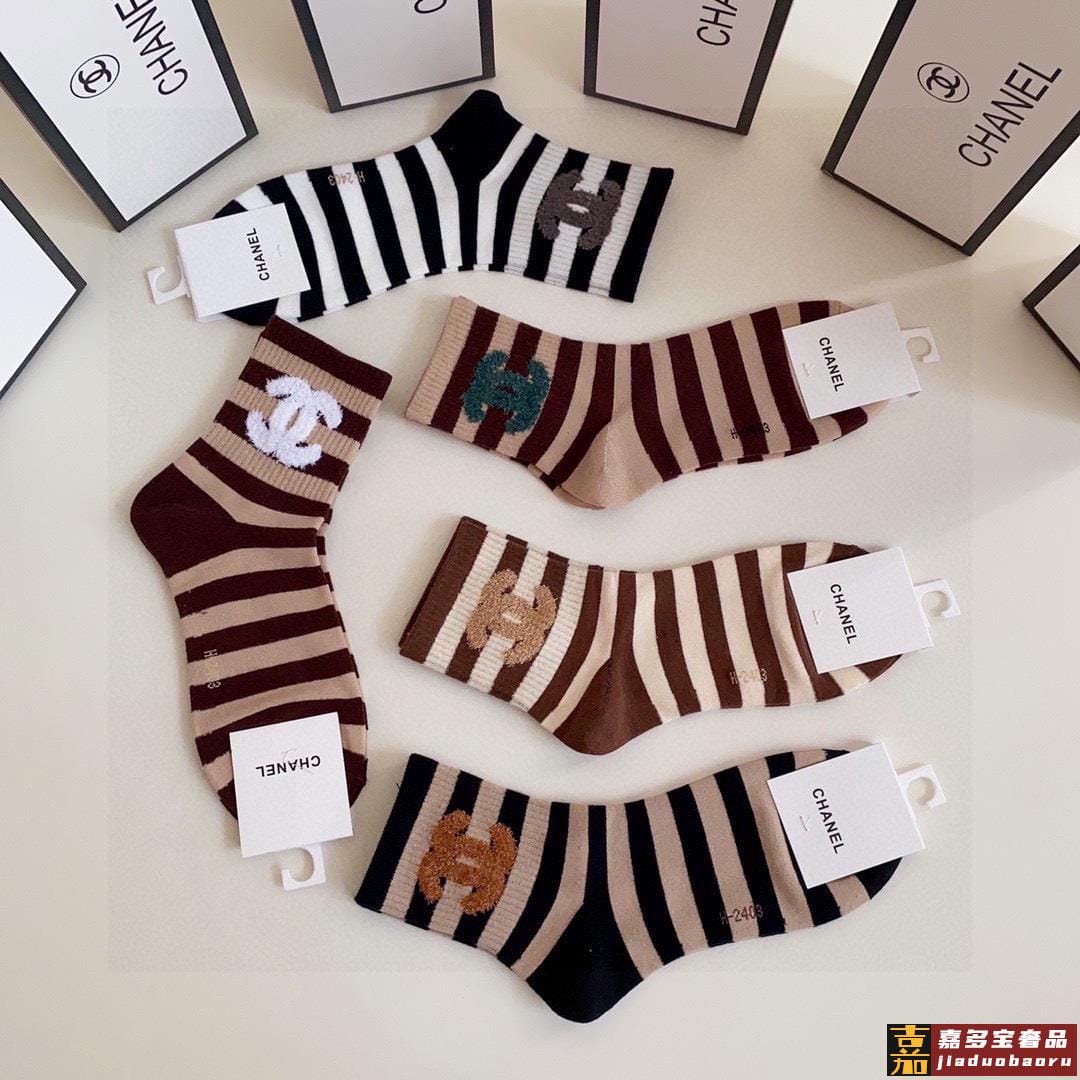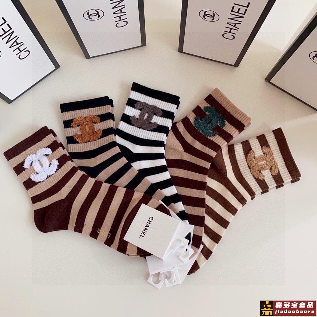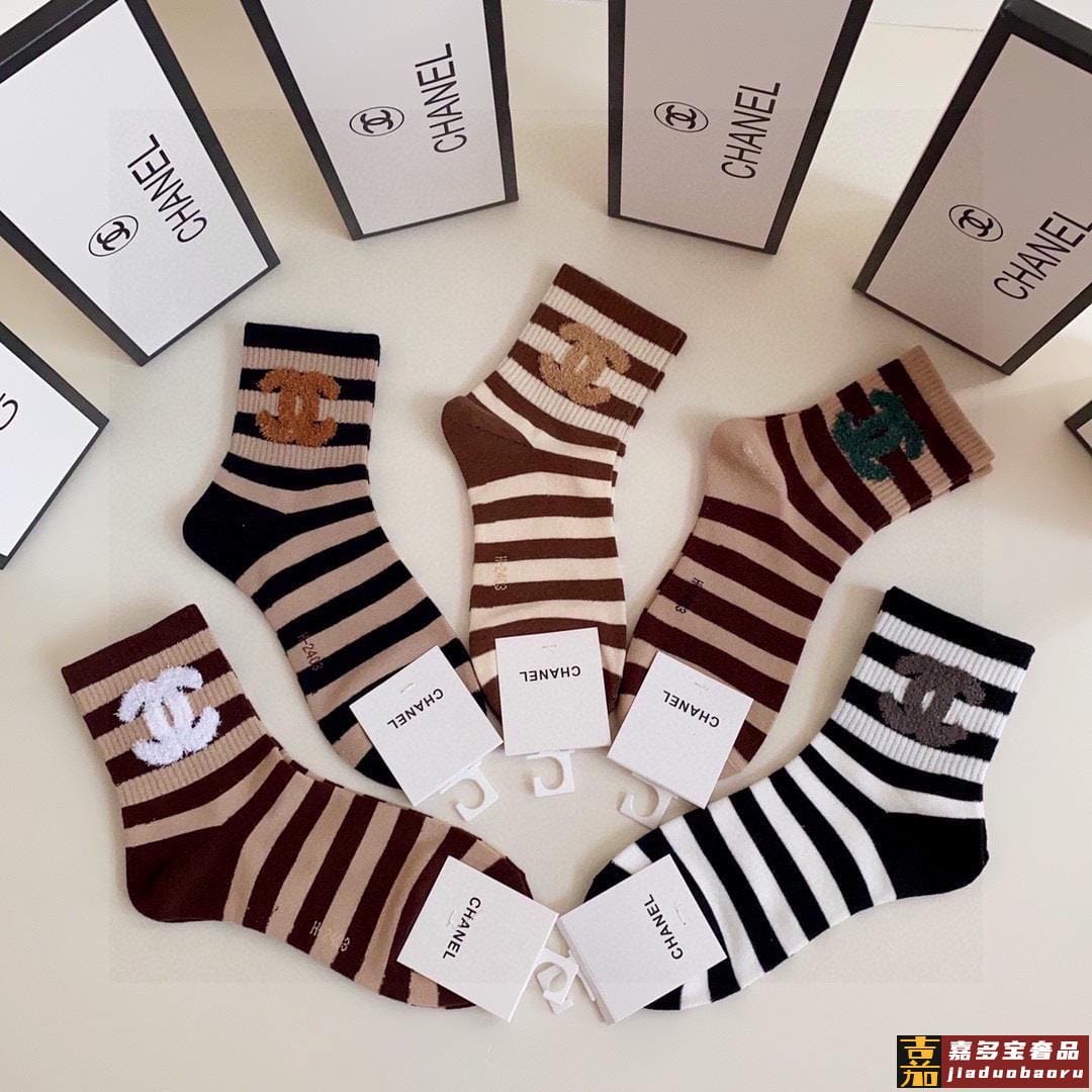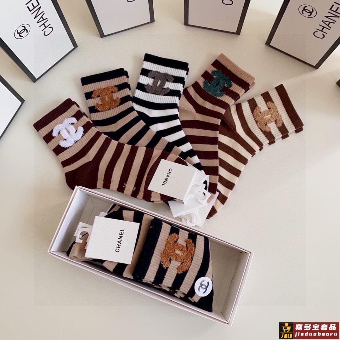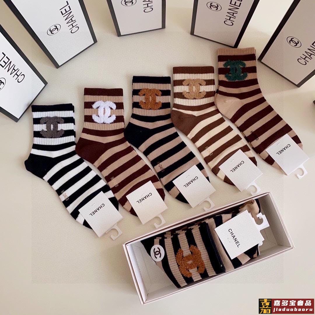 配包装香奈儿新款经典中短款堆堆袜袜子一盒五双专柜同步筒袜袜子