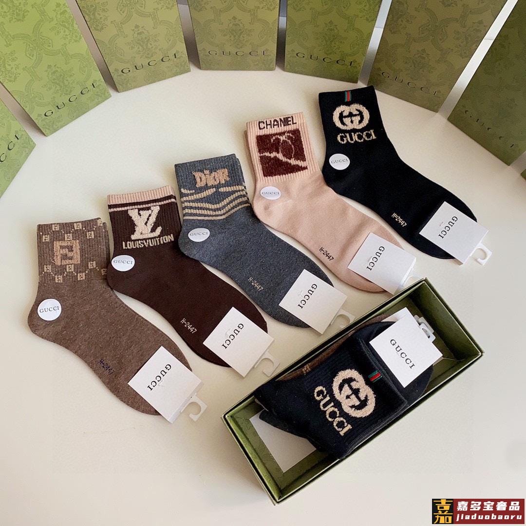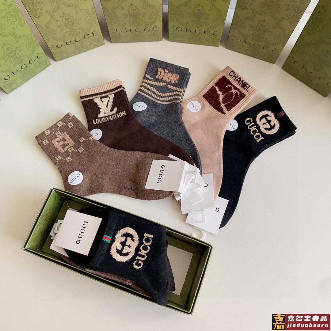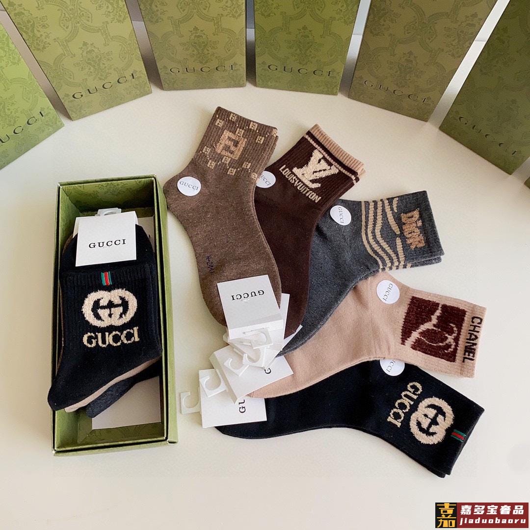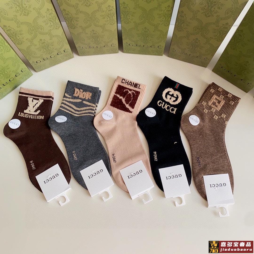 特配专柜包装古驰新款金丝中长款堆堆袜袜子一盒五双专柜同步筒袜