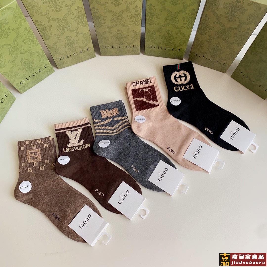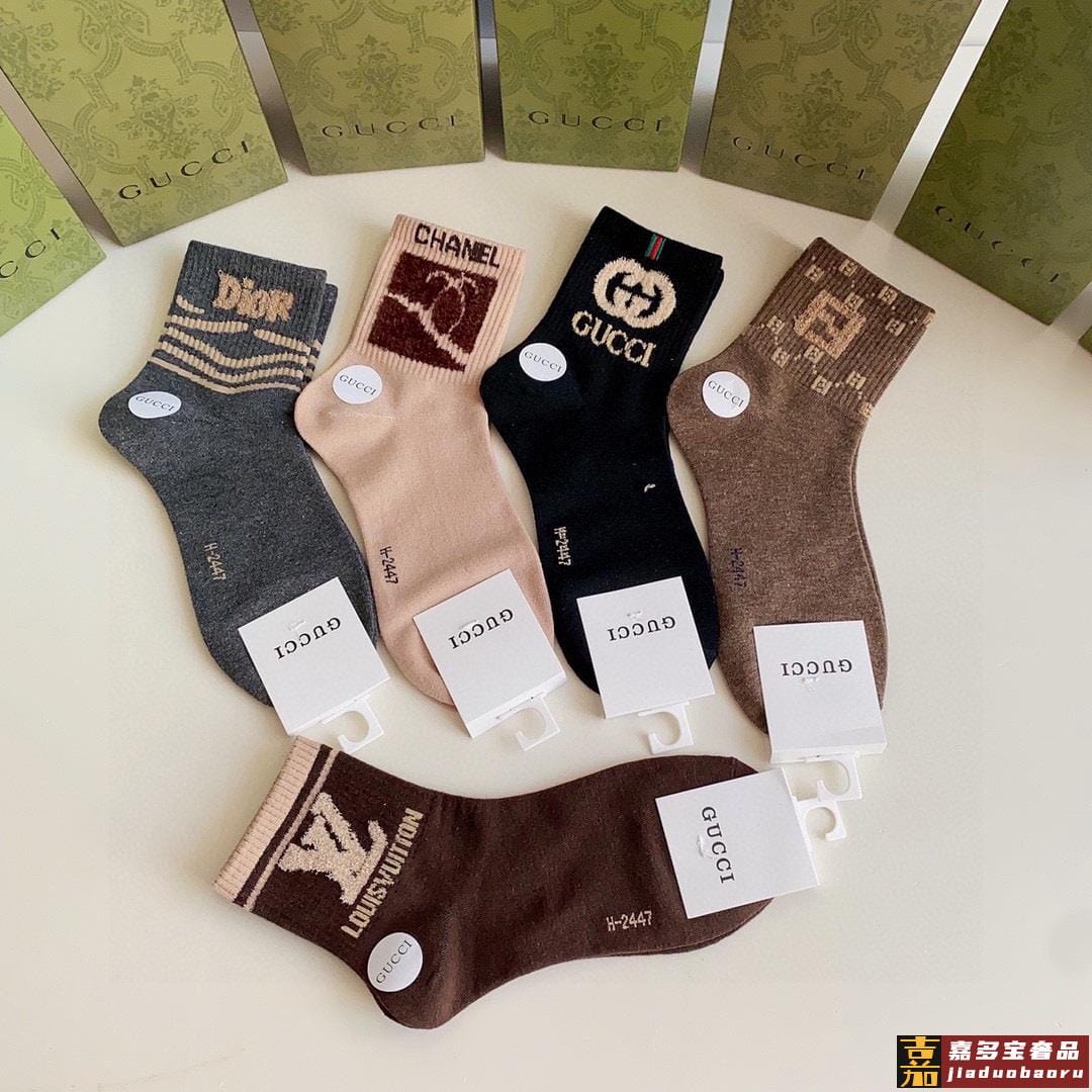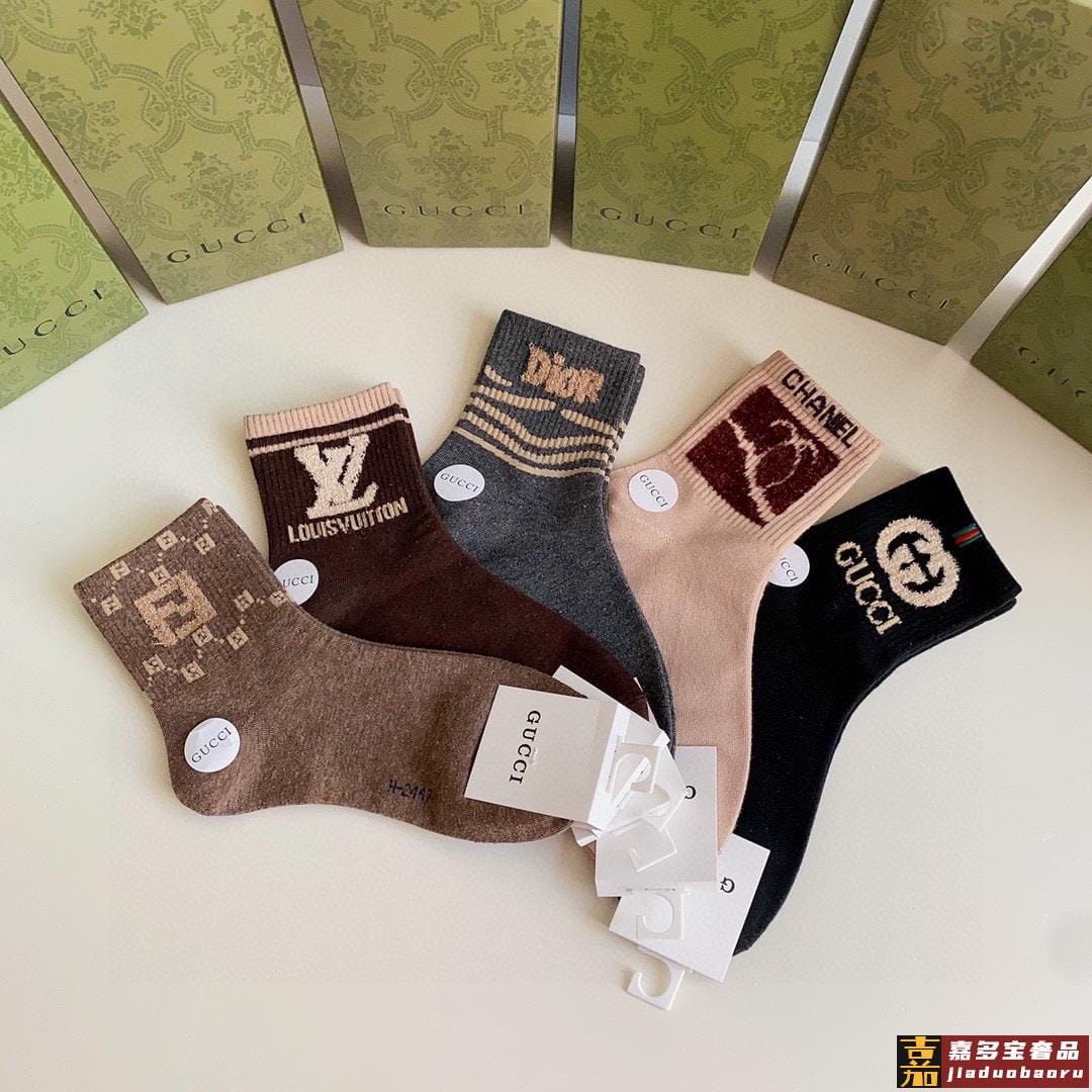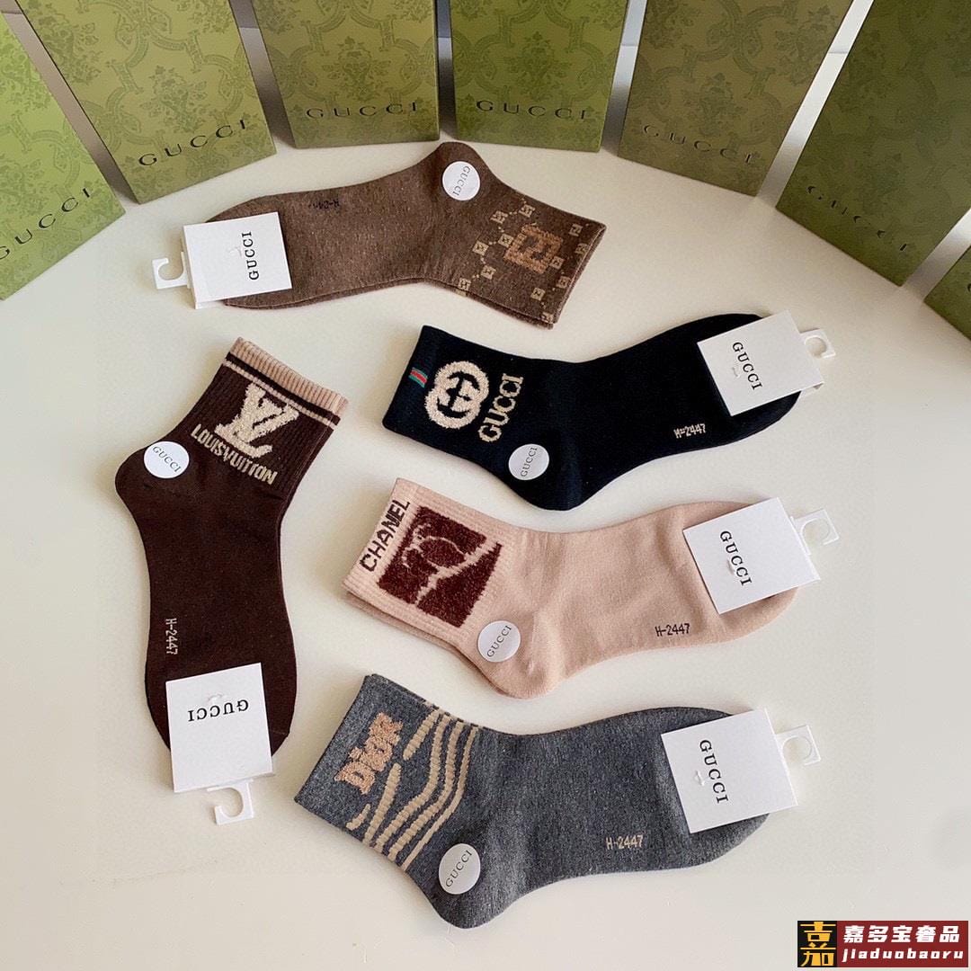 特配专柜包装古驰新款金丝中长款堆堆袜袜子一盒五双专柜同步筒袜