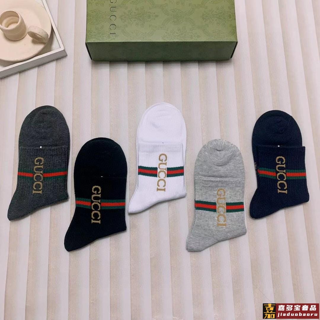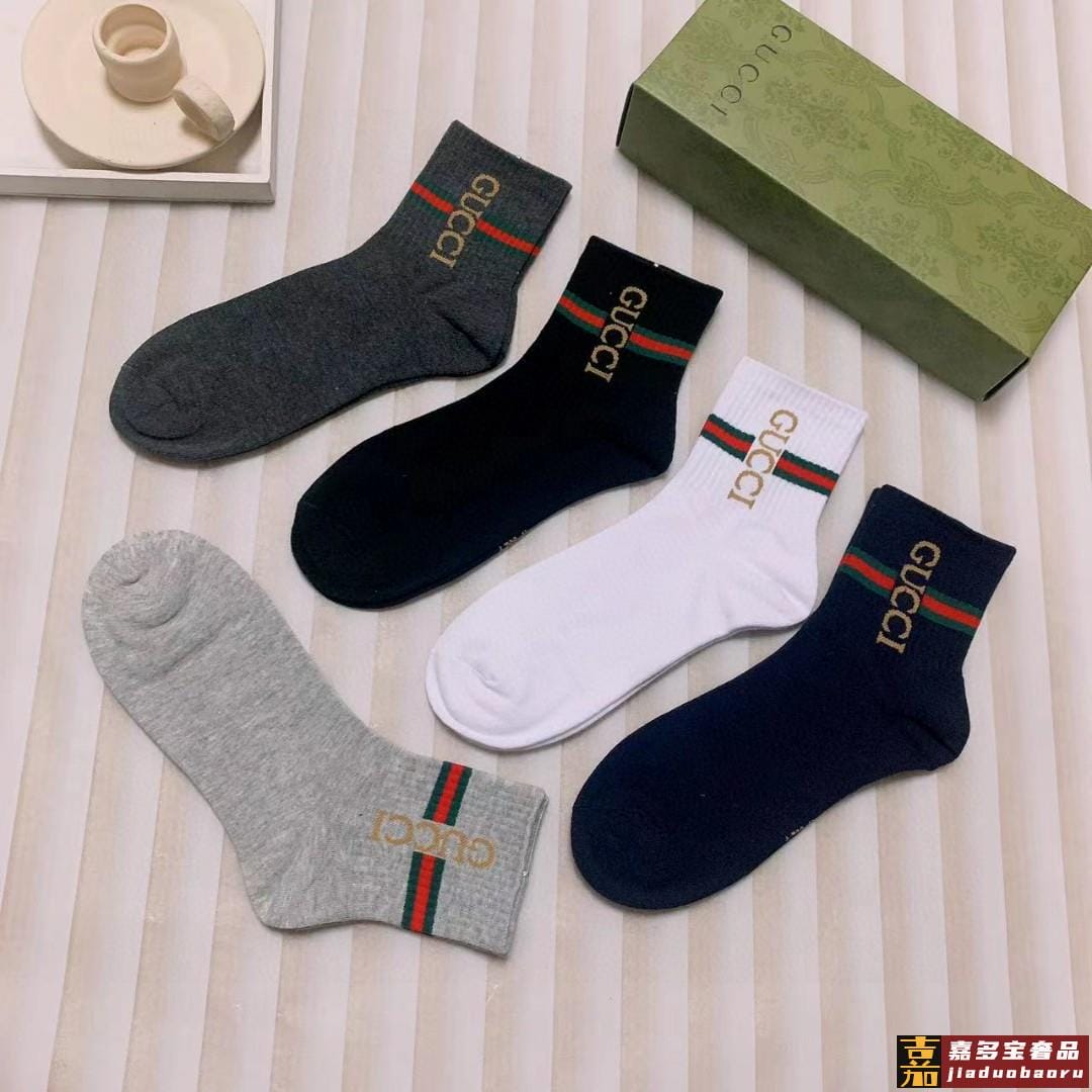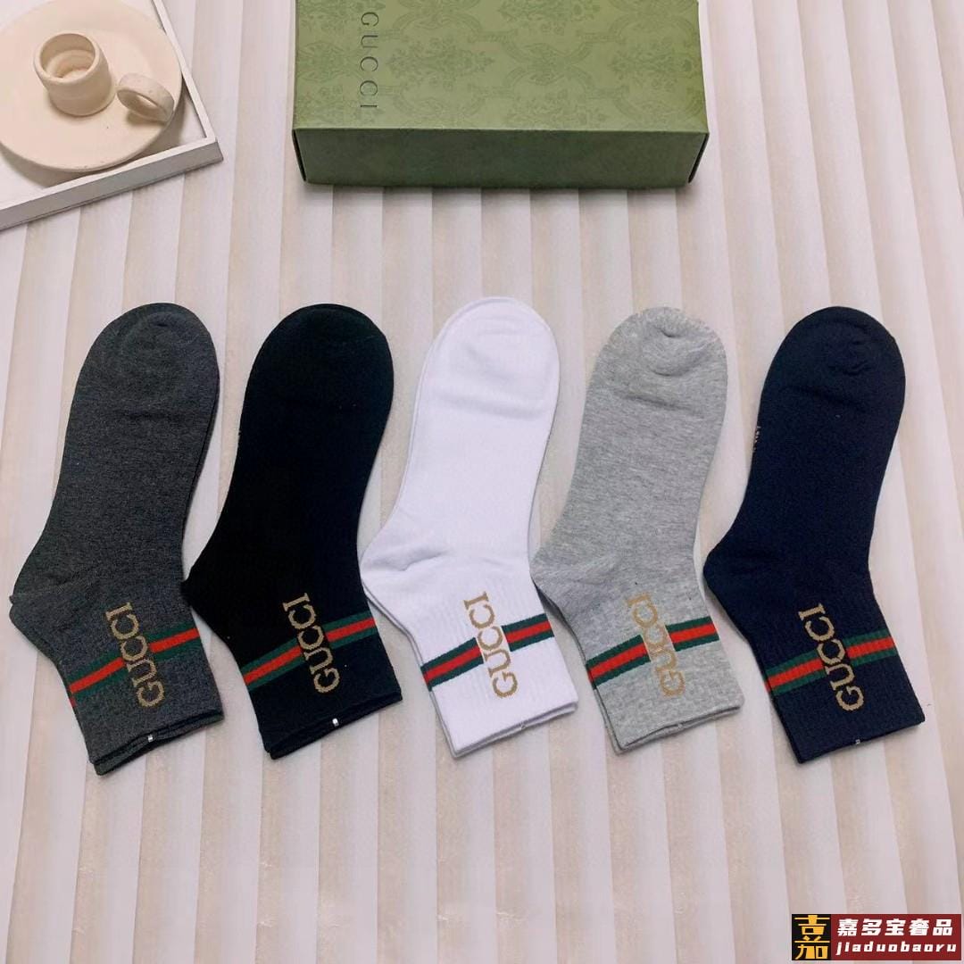 特配专柜包装古驰新款金丝中长款堆堆袜袜子一盒五双专柜同步筒袜