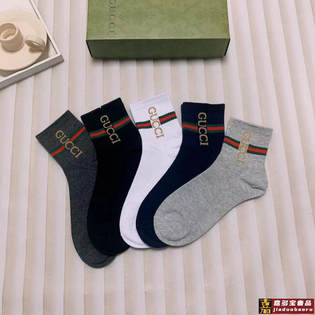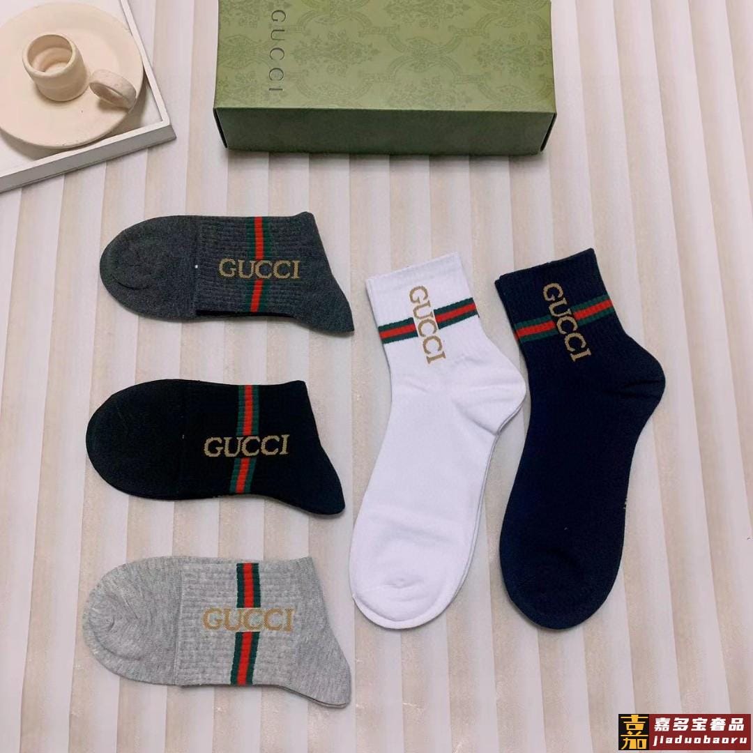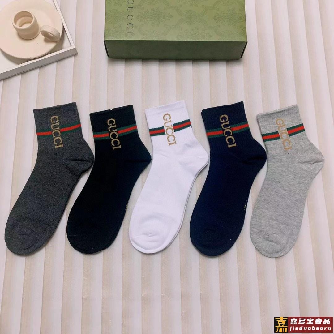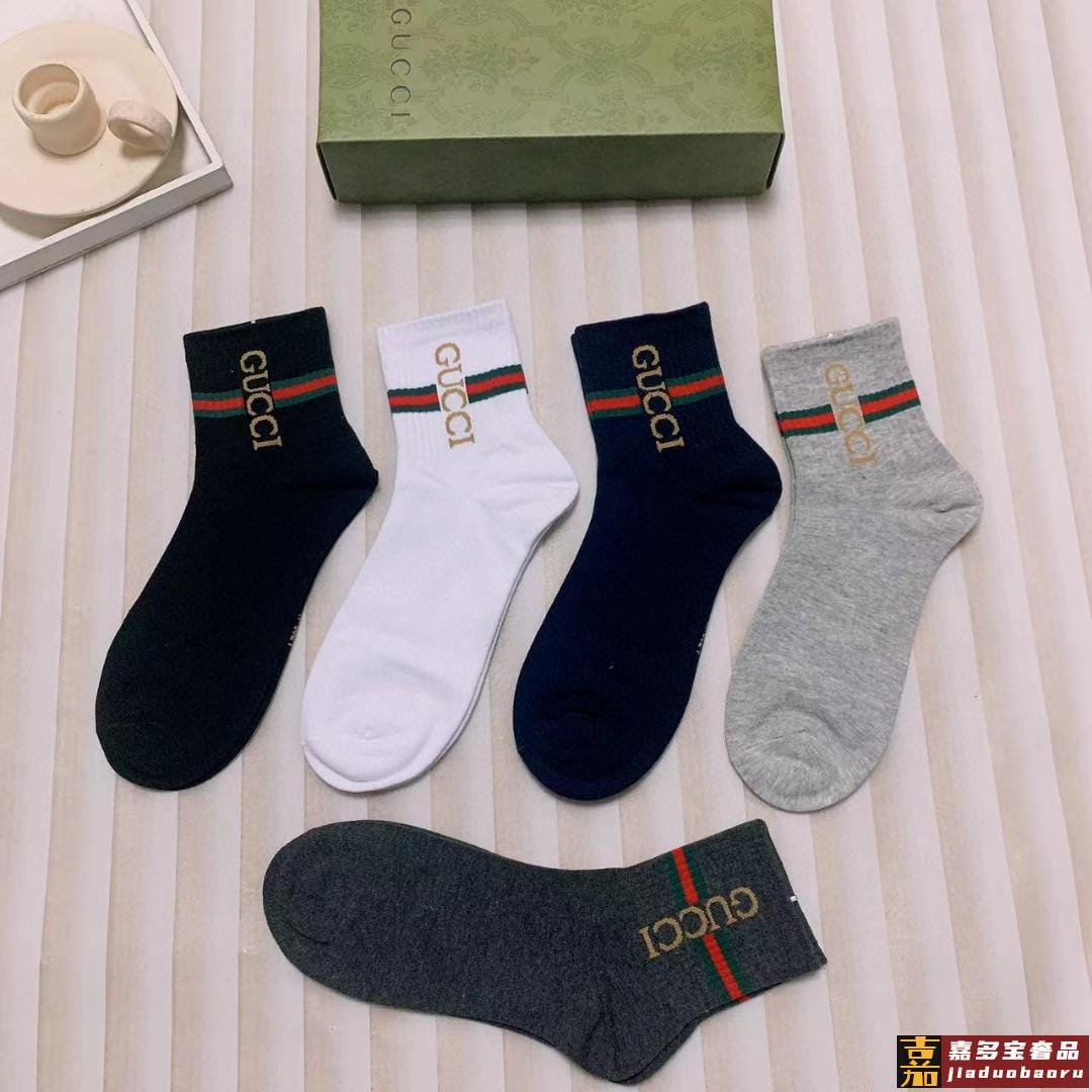 特配专柜包装古驰新款金丝中长款堆堆袜袜子一盒五双专柜同步筒袜