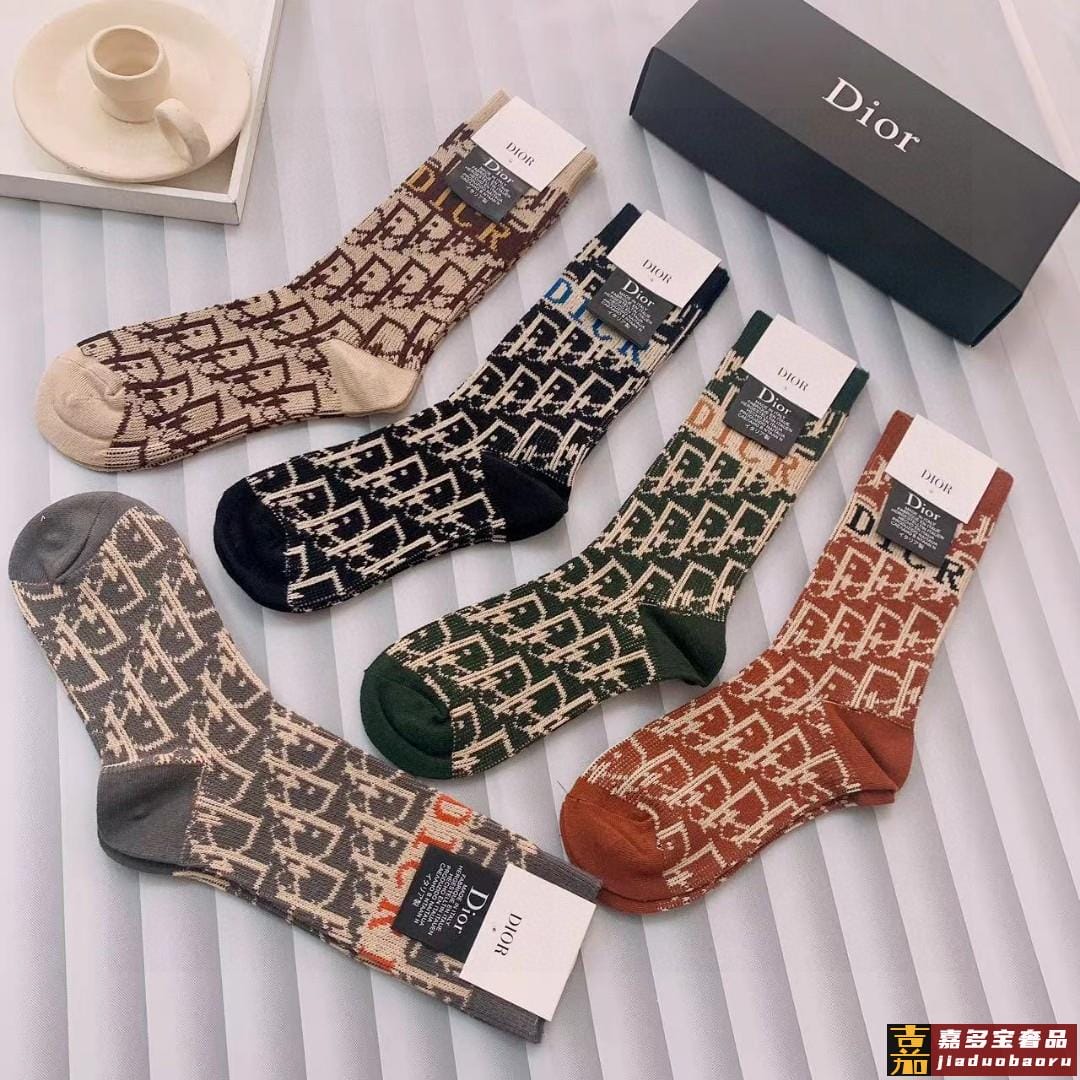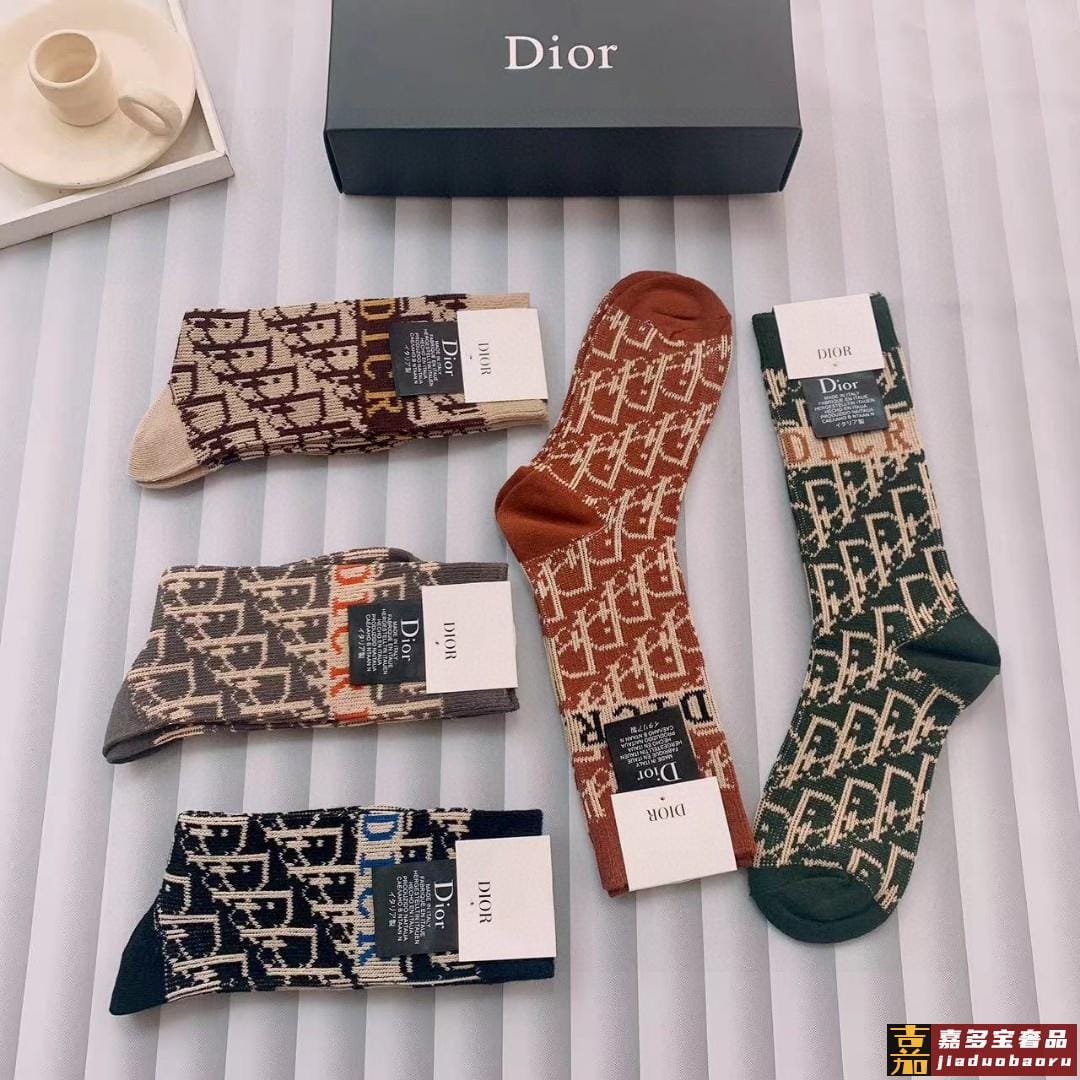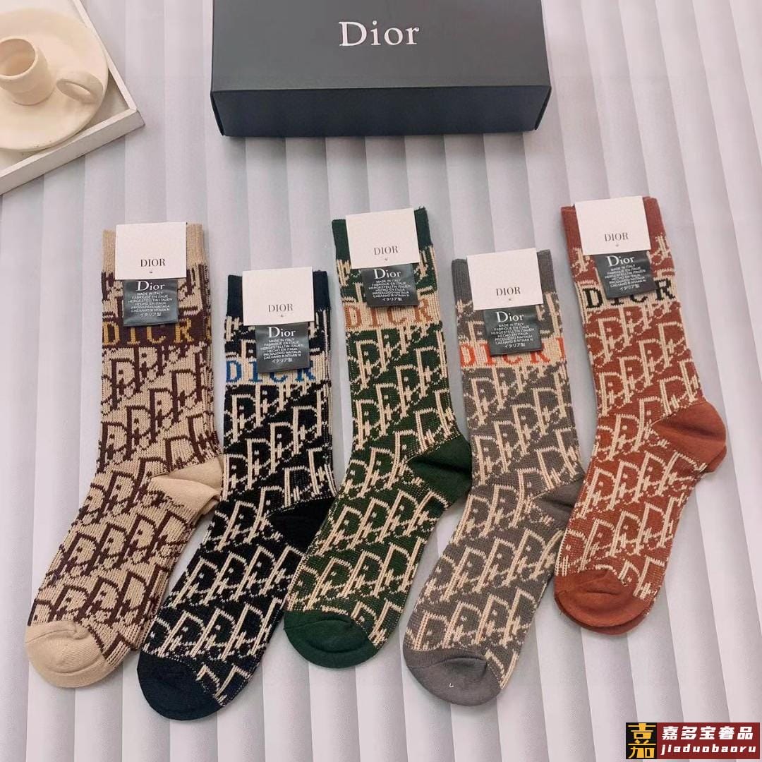 特配专柜包装迪奥新款中长款堆堆袜袜子一盒五双专柜同步筒袜袜子