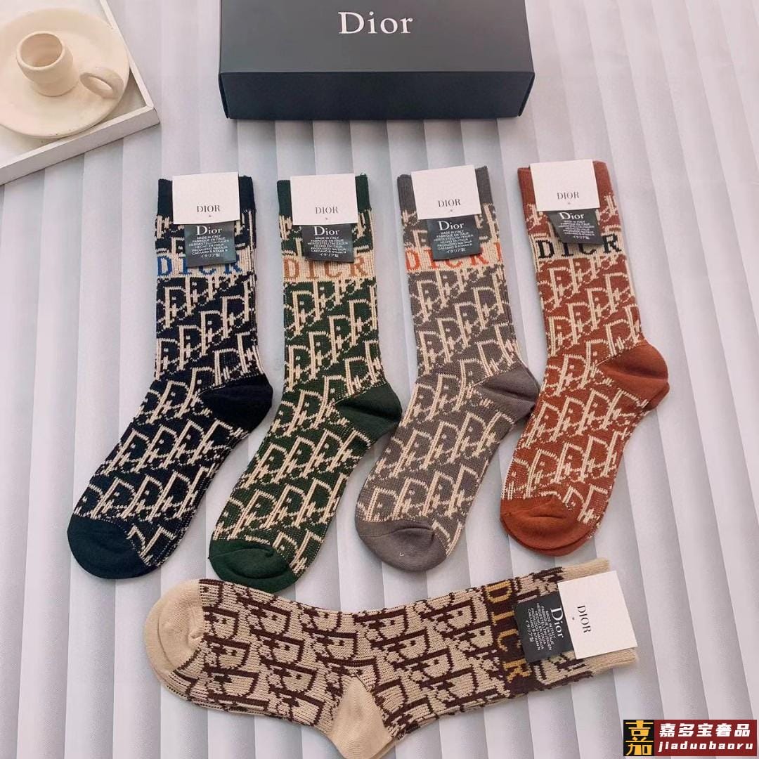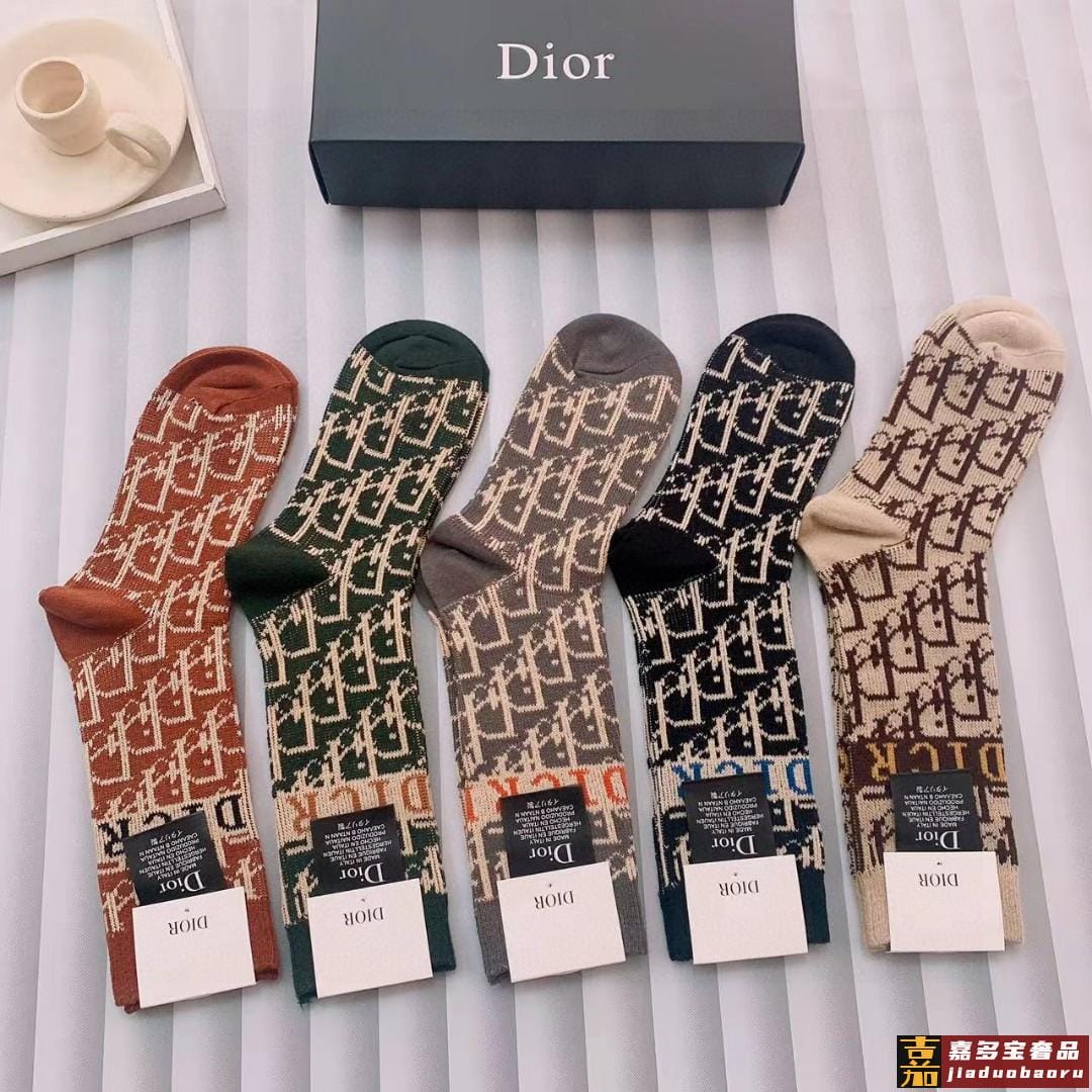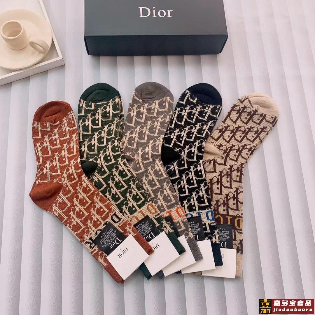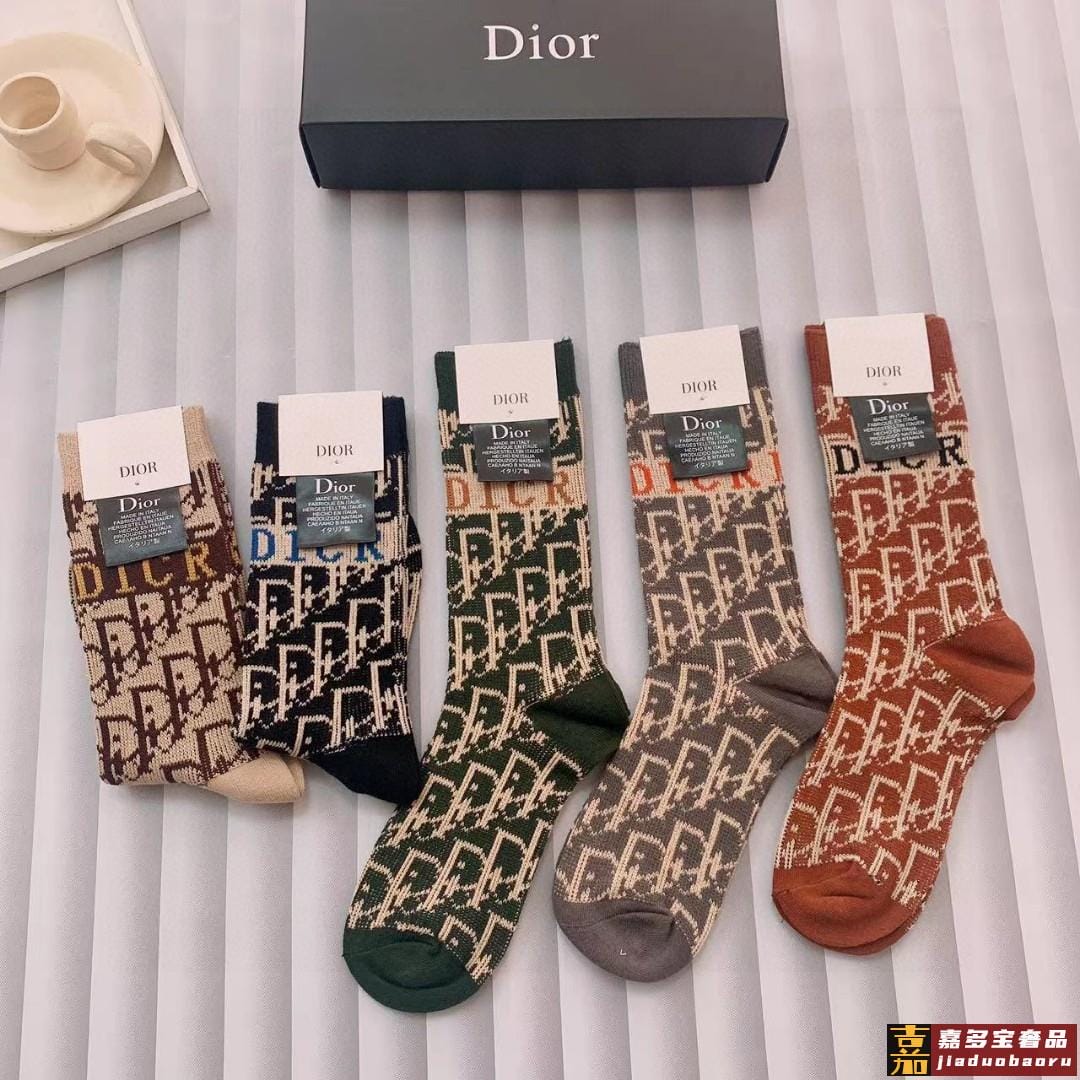特配专柜包装迪奥新款中长款堆堆袜袜子一盒五双专柜同步筒袜袜子