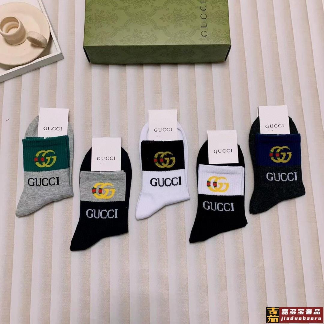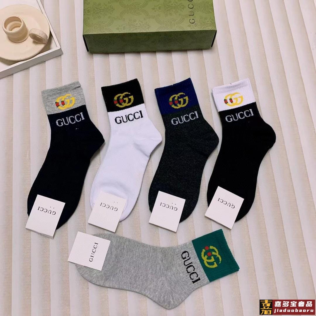 特配专柜包装古驰新款金丝中长款堆堆袜袜子一盒五双专柜同步筒袜