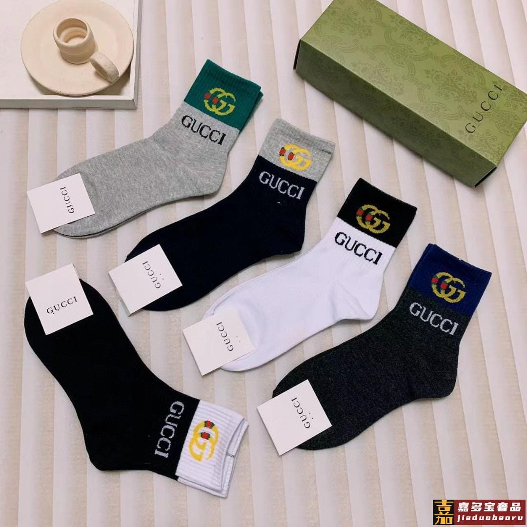 特配包装古驰新款经典中长款堆堆袜袜子一盒三双专柜同步筒款袜子