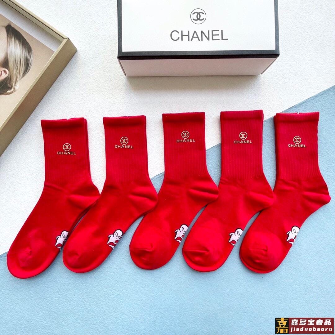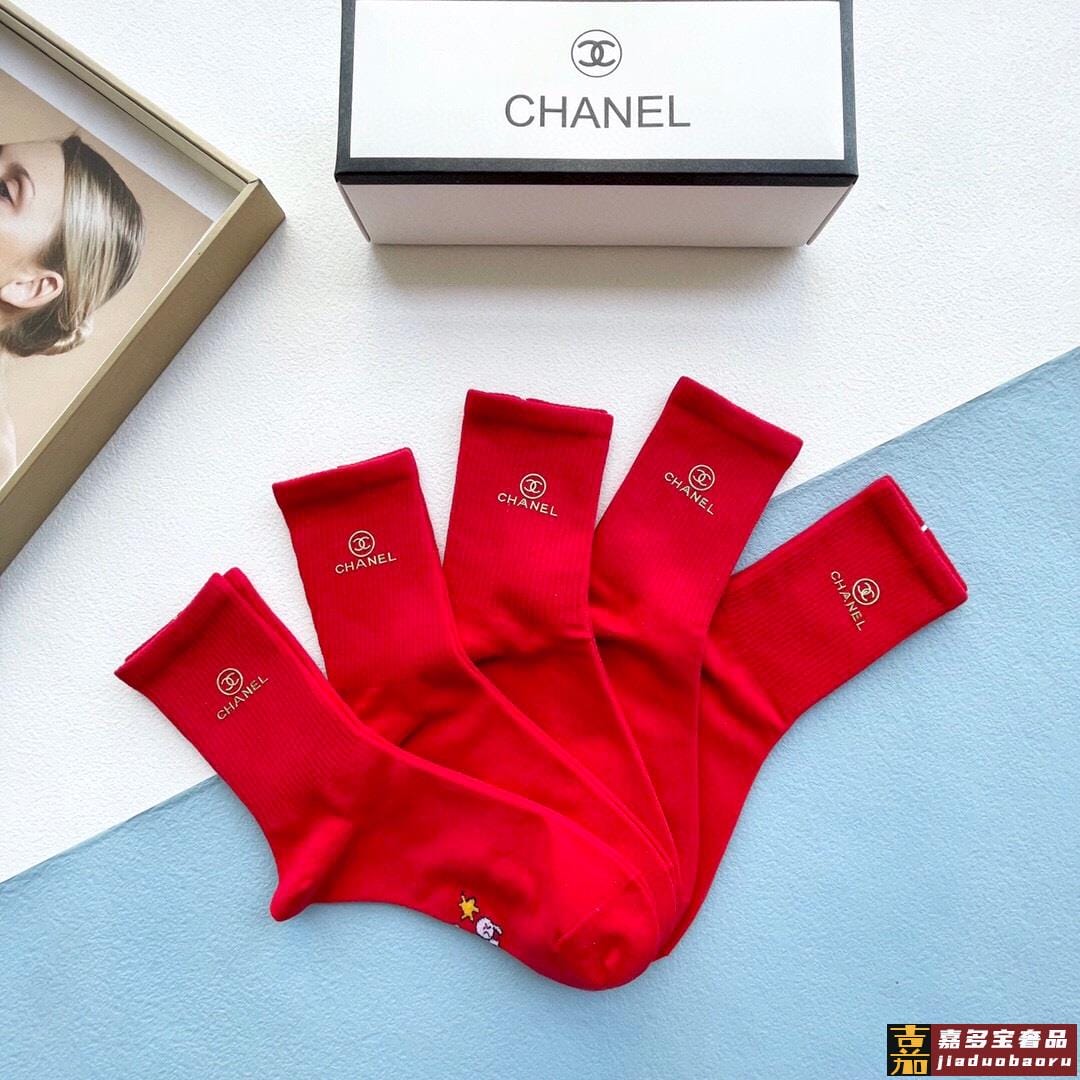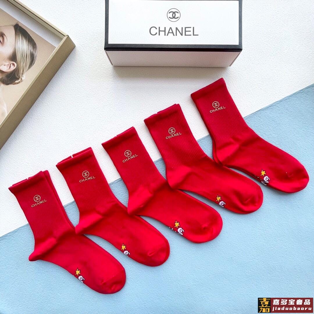 配包装一盒五双香奈儿红红火火过年袜官网同款字母烫金中长款袜子
