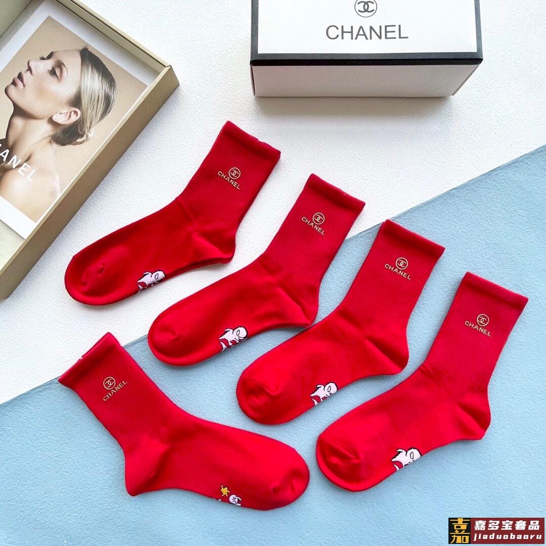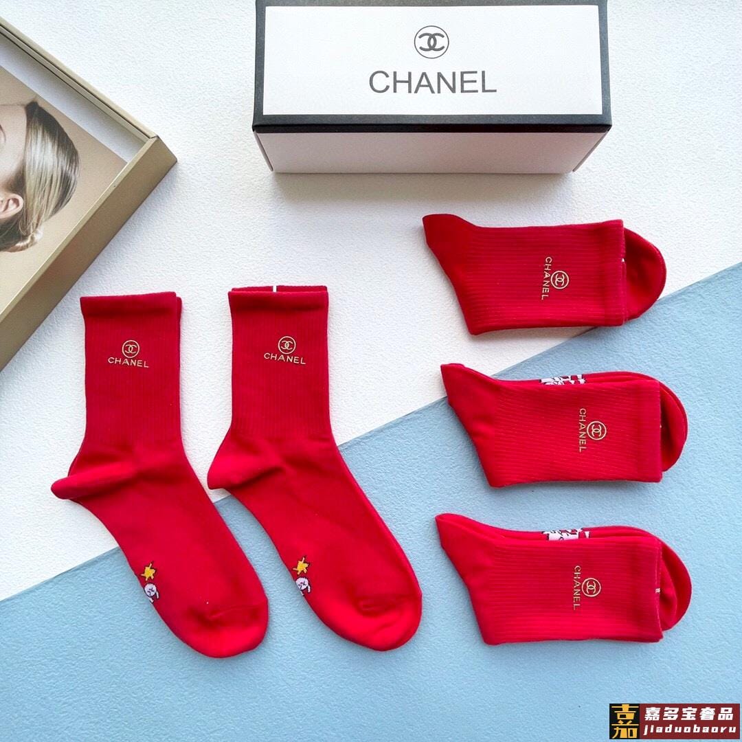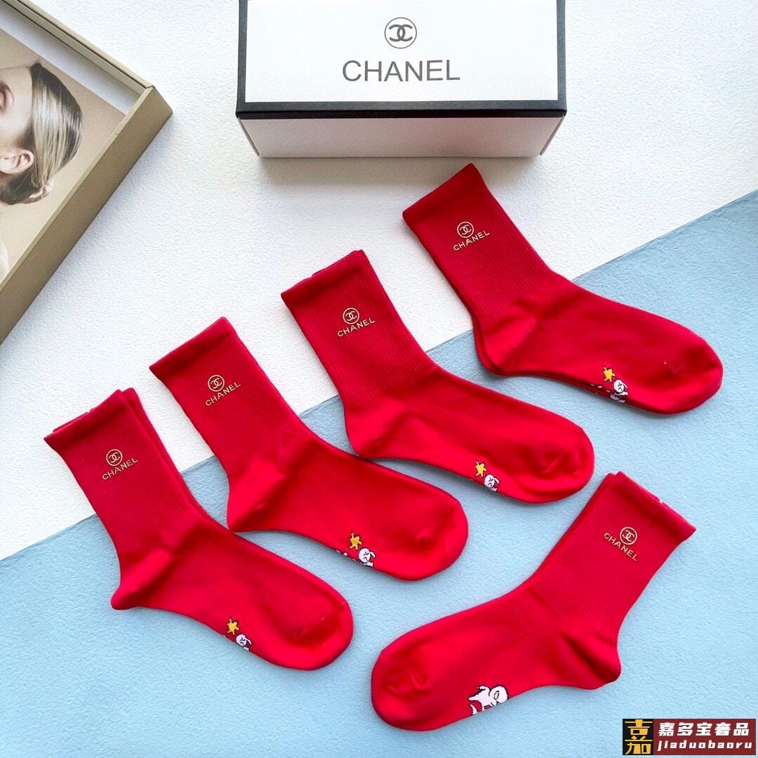 配包装一盒五双香奈儿红红火火过年袜官网同款字母烫金中长款袜子