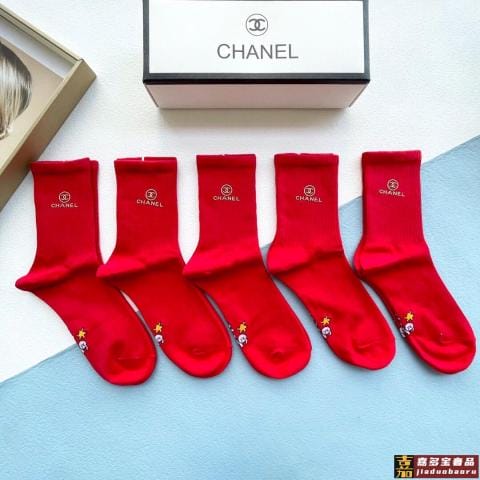 配包装一盒五双香奈儿红红火火过年袜官网同款字母刺绣中长款袜子