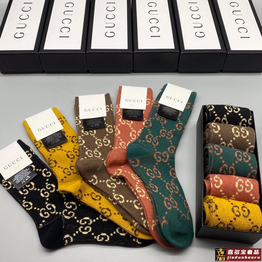 配包装一盒五双古奇家新品高筒双针双路袜子专柜同步长袜超级经典