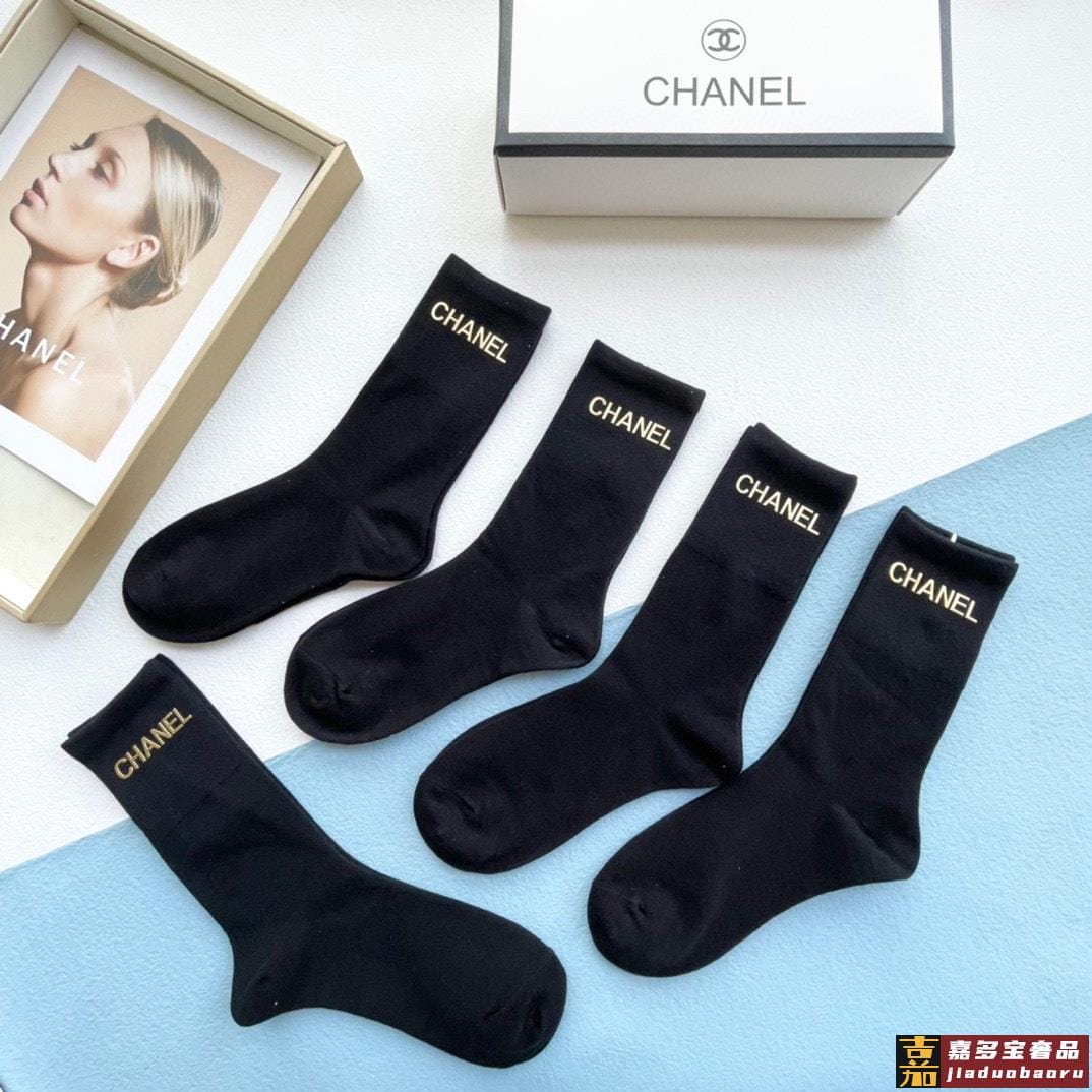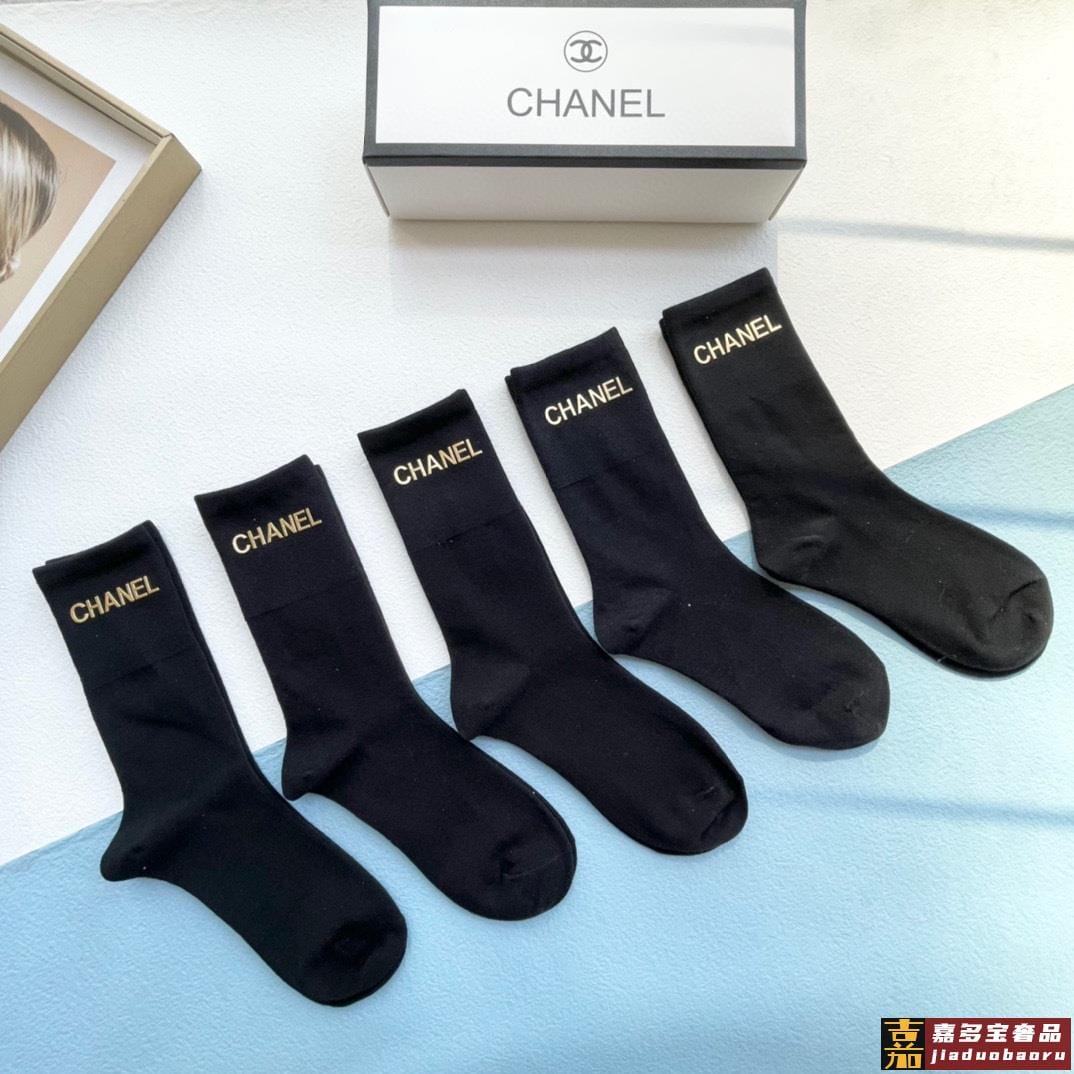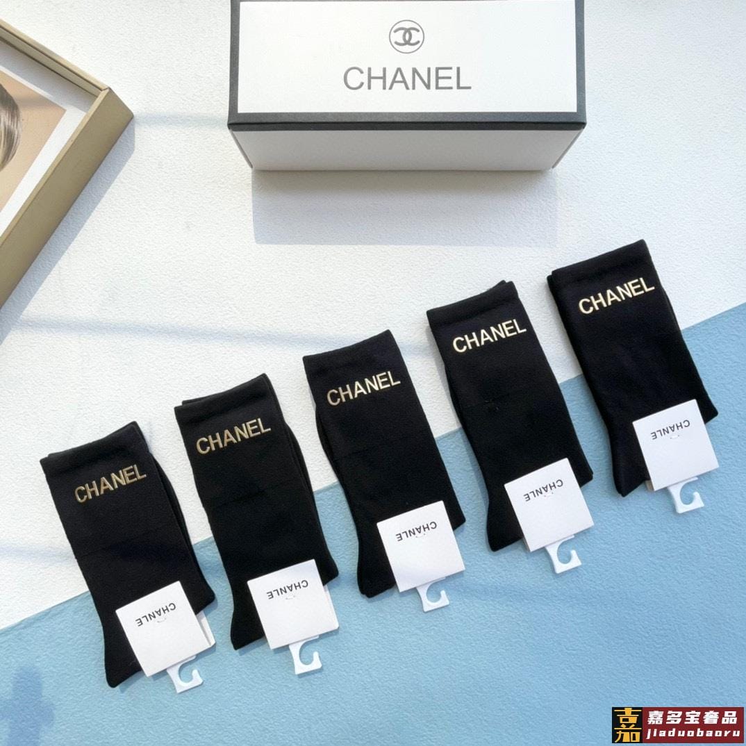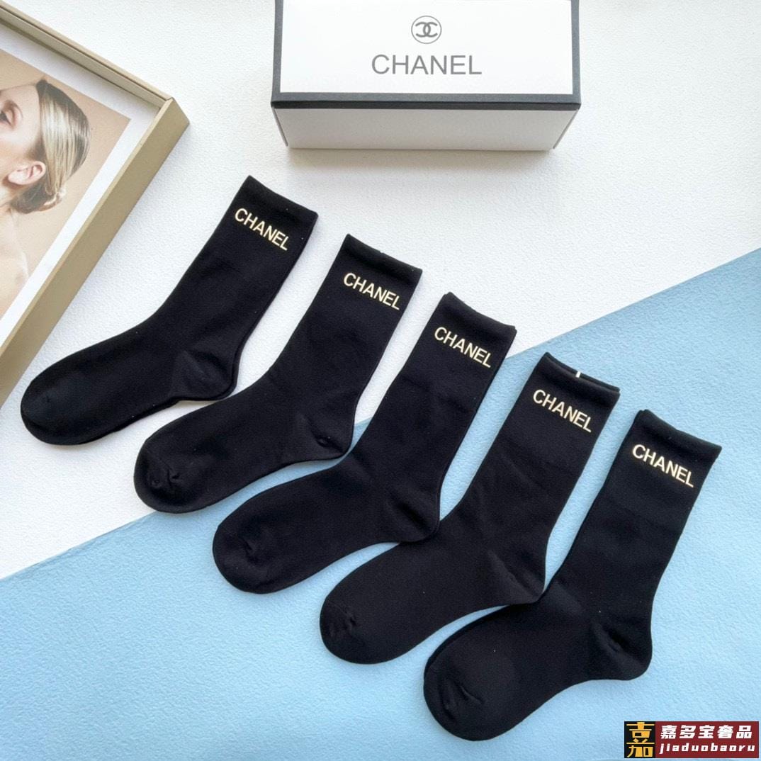 配包装一盒五双香奈儿小香家新品烫金中筒男女款袜子专柜同步长袜