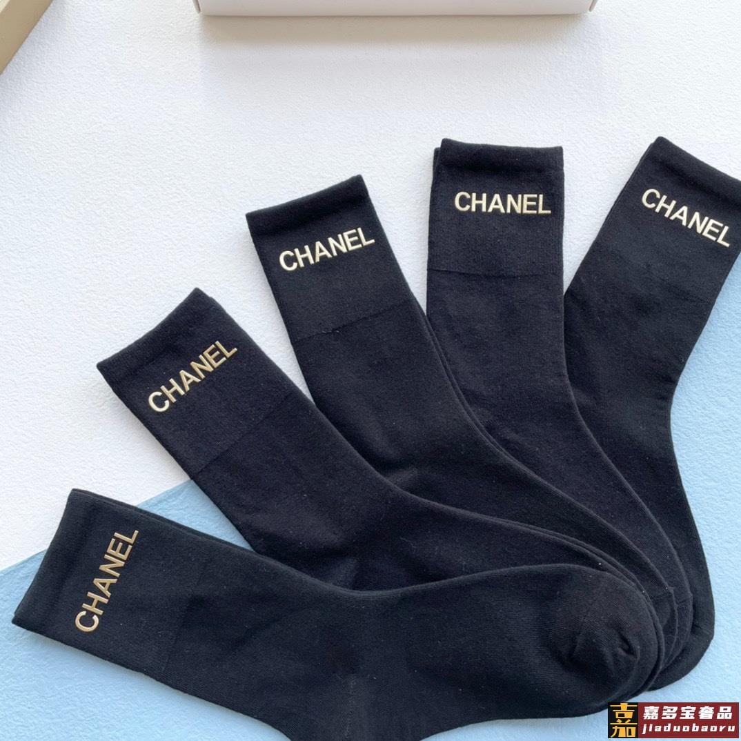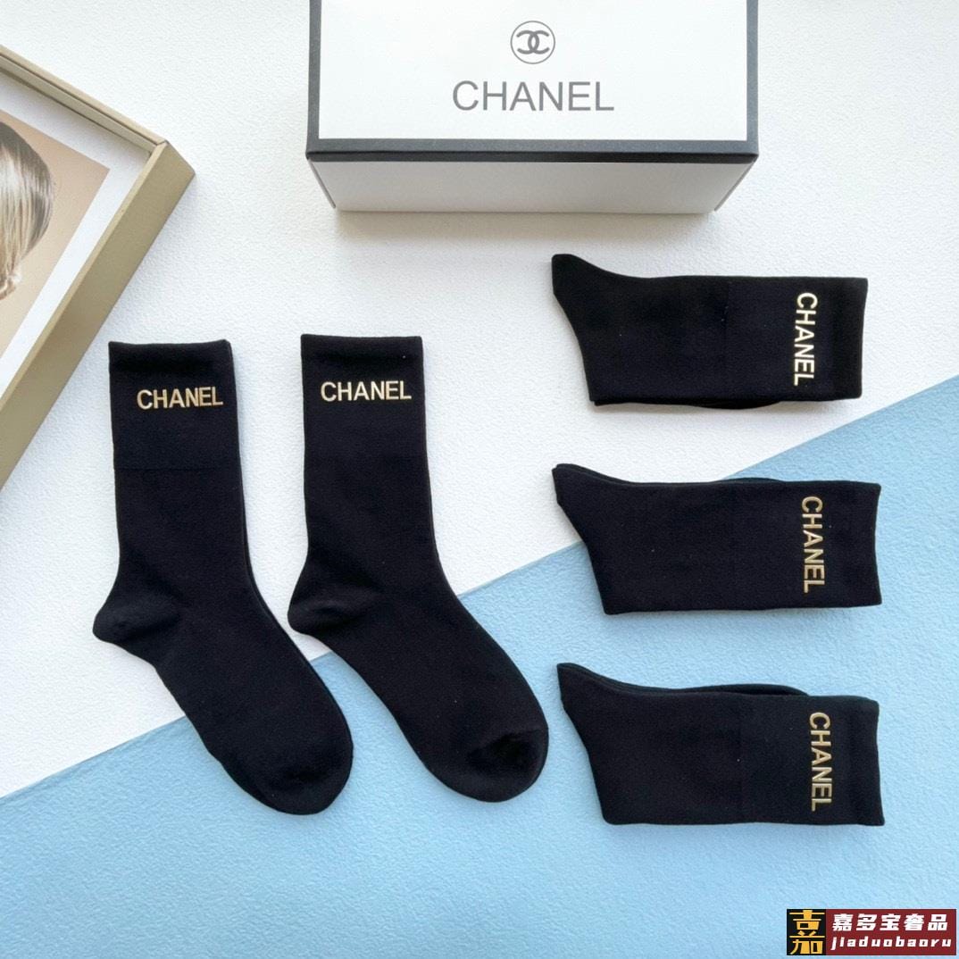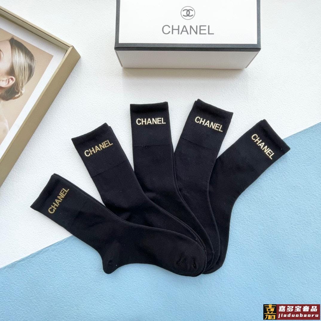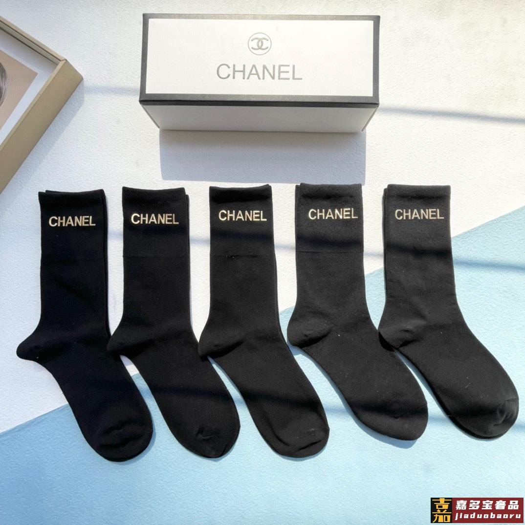 配包装一盒五双香奈儿小香家新品烫金中筒男女款袜子专柜同步长袜