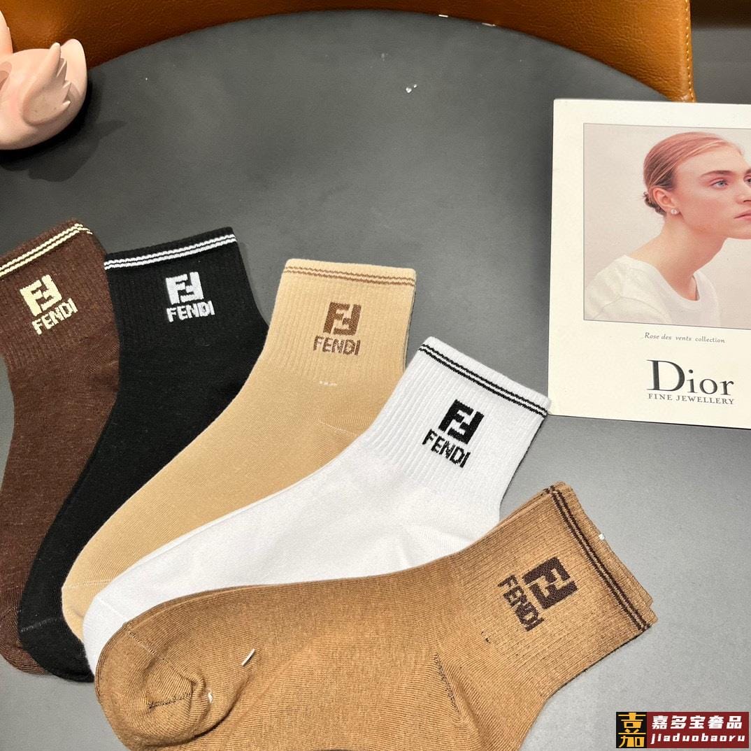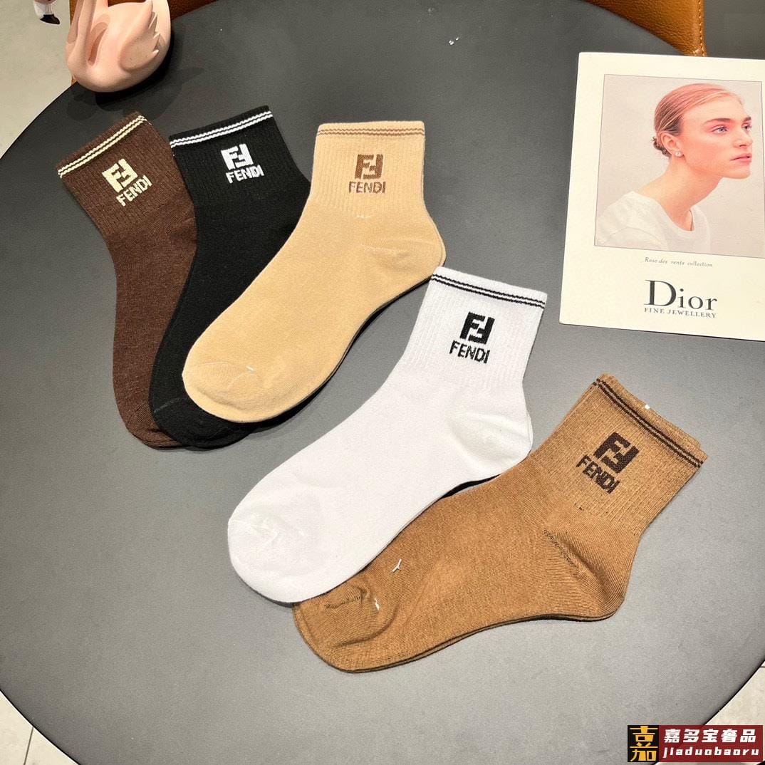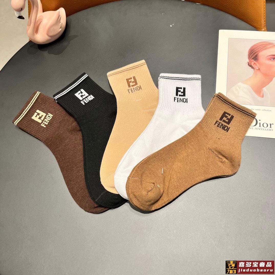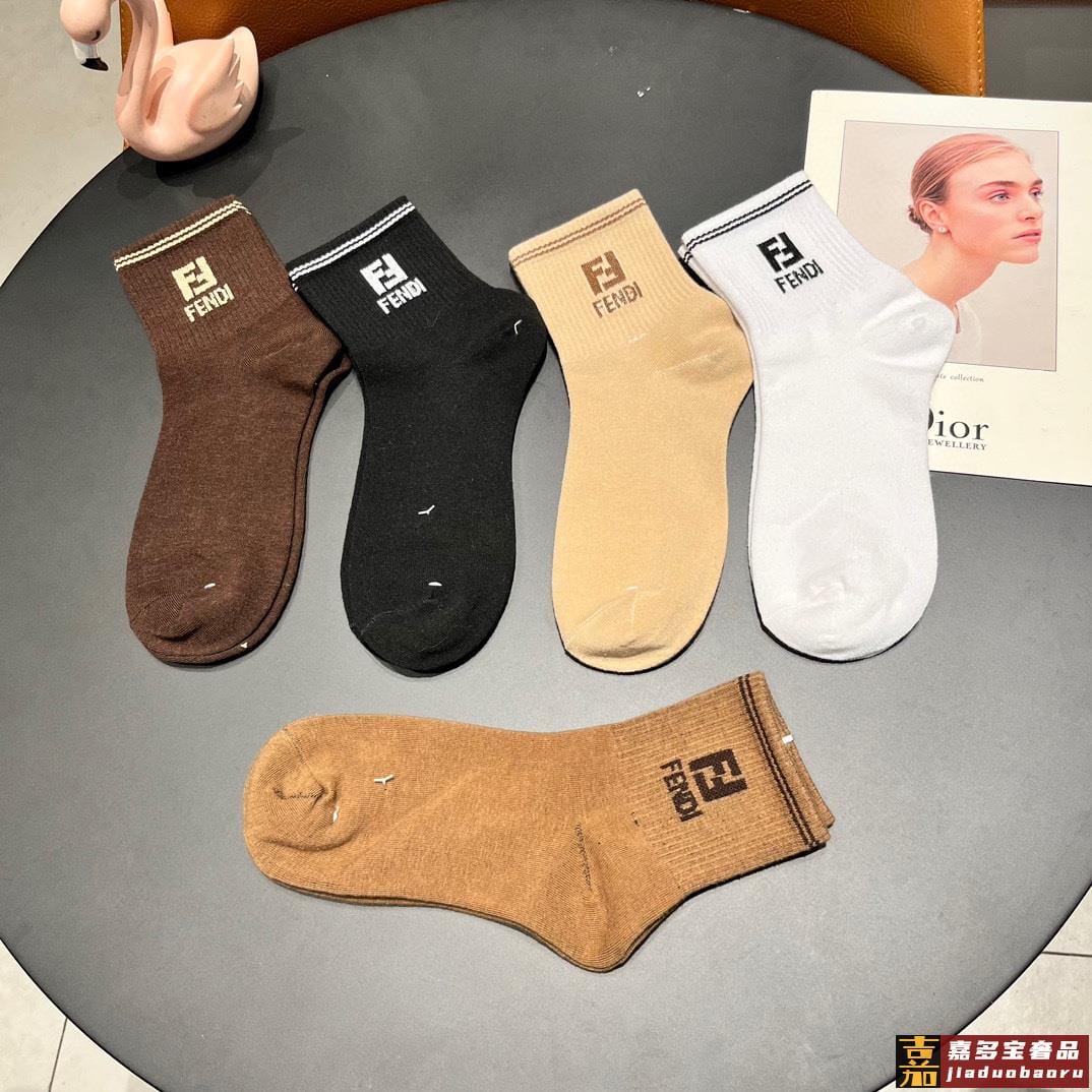 配包装一盒五双芬迪新款经典中短款堆堆袜袜子专柜同步筒袜袜子大
