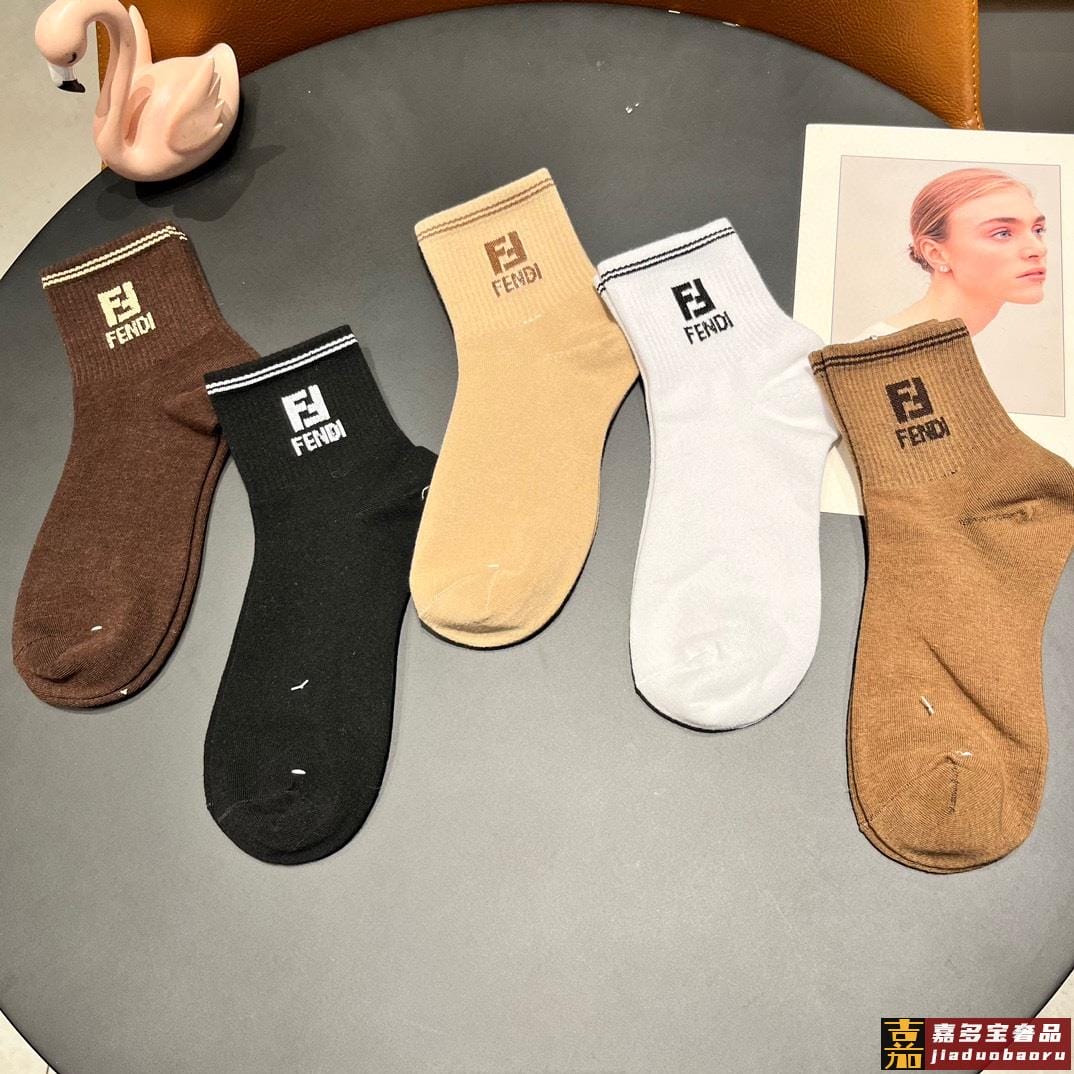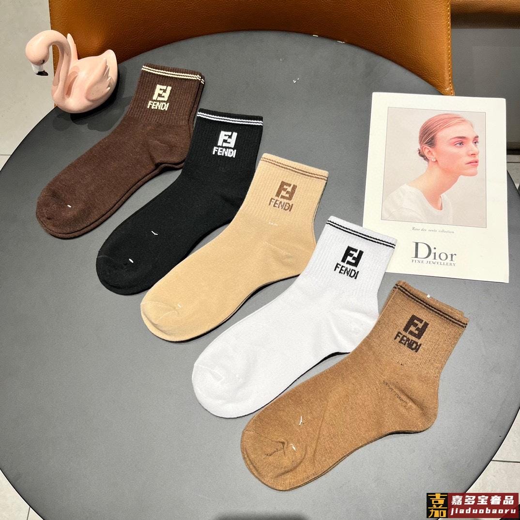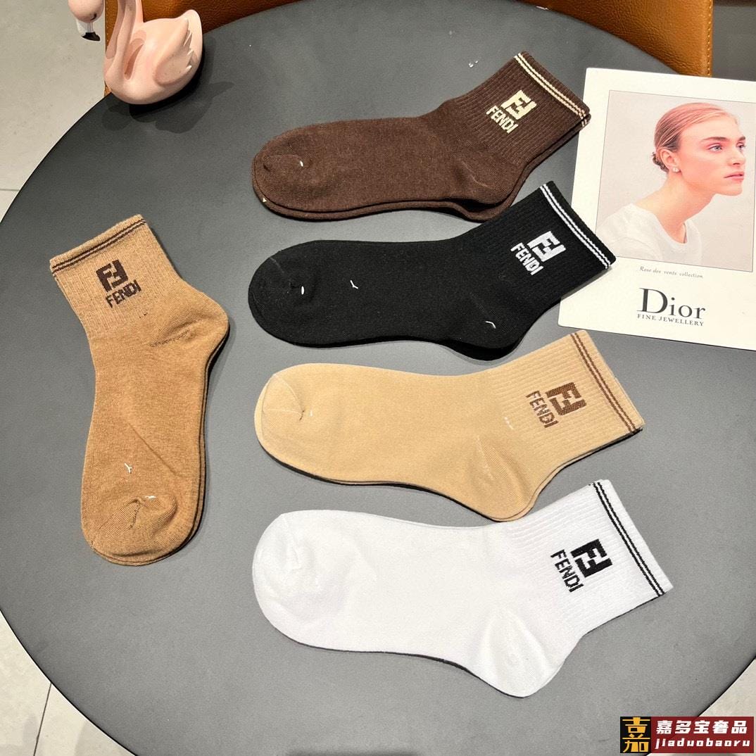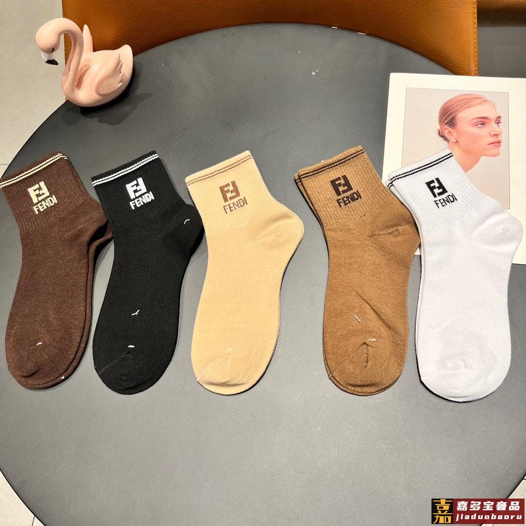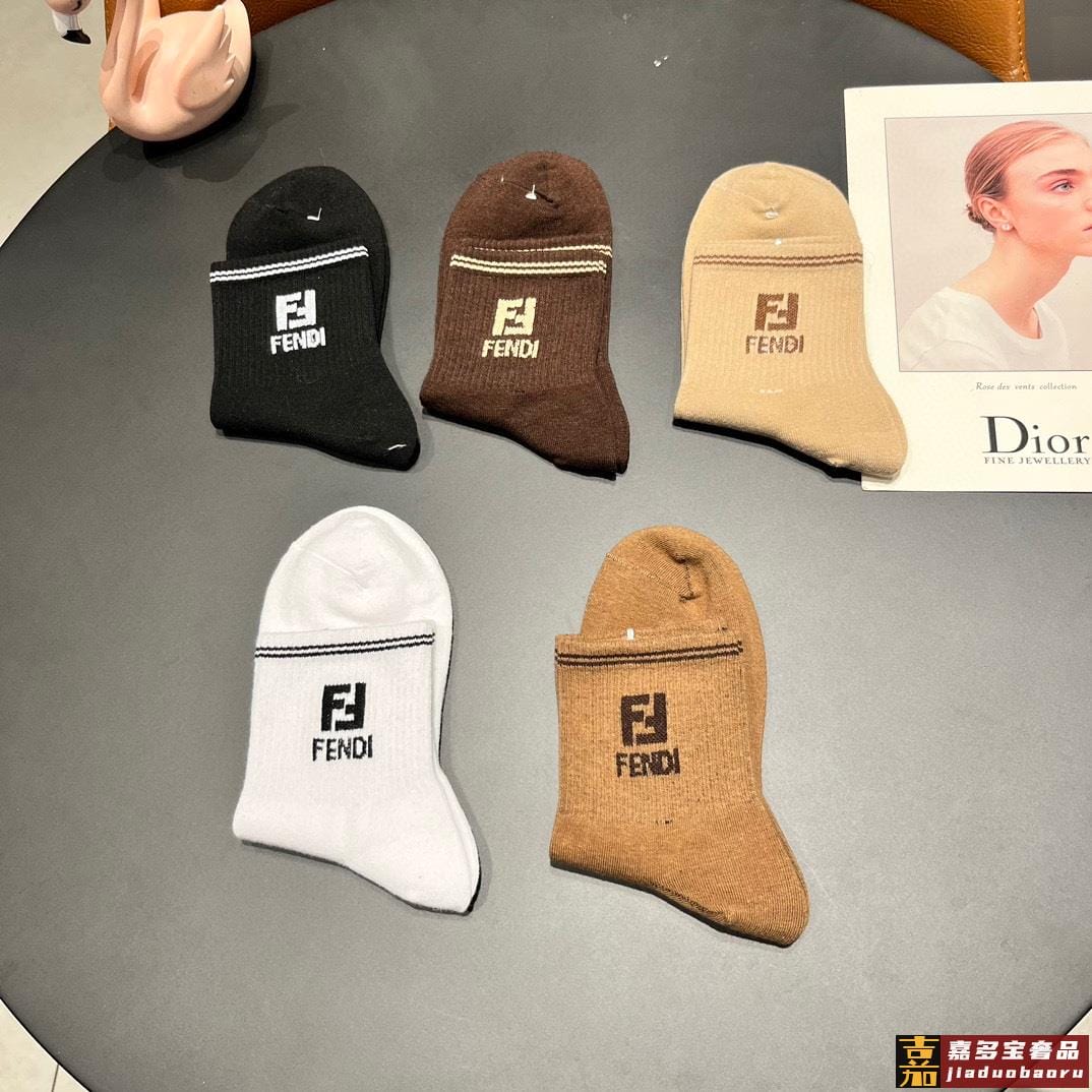 配包装一盒五双芬迪新款经典中短款堆堆袜袜子专柜同步筒袜袜子大