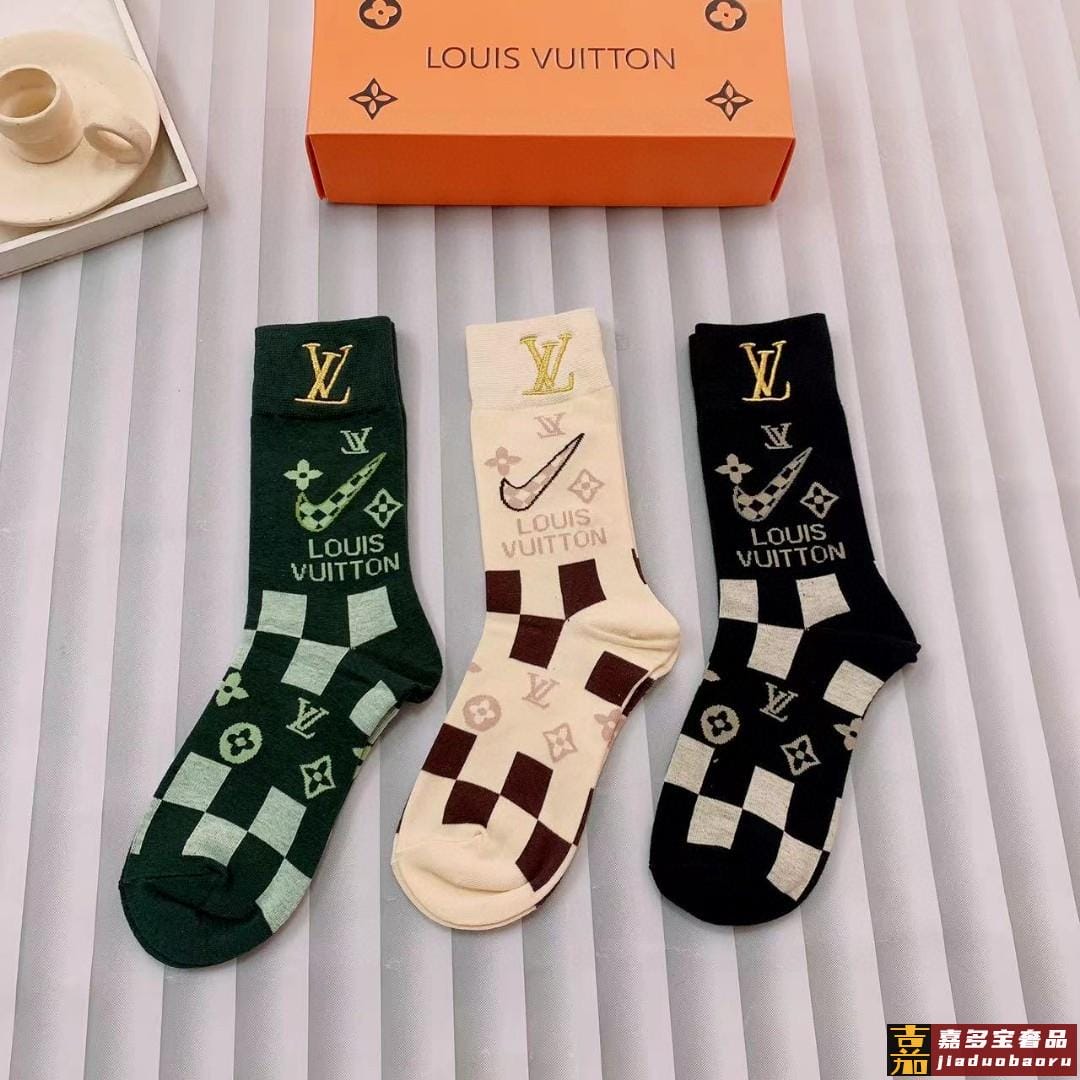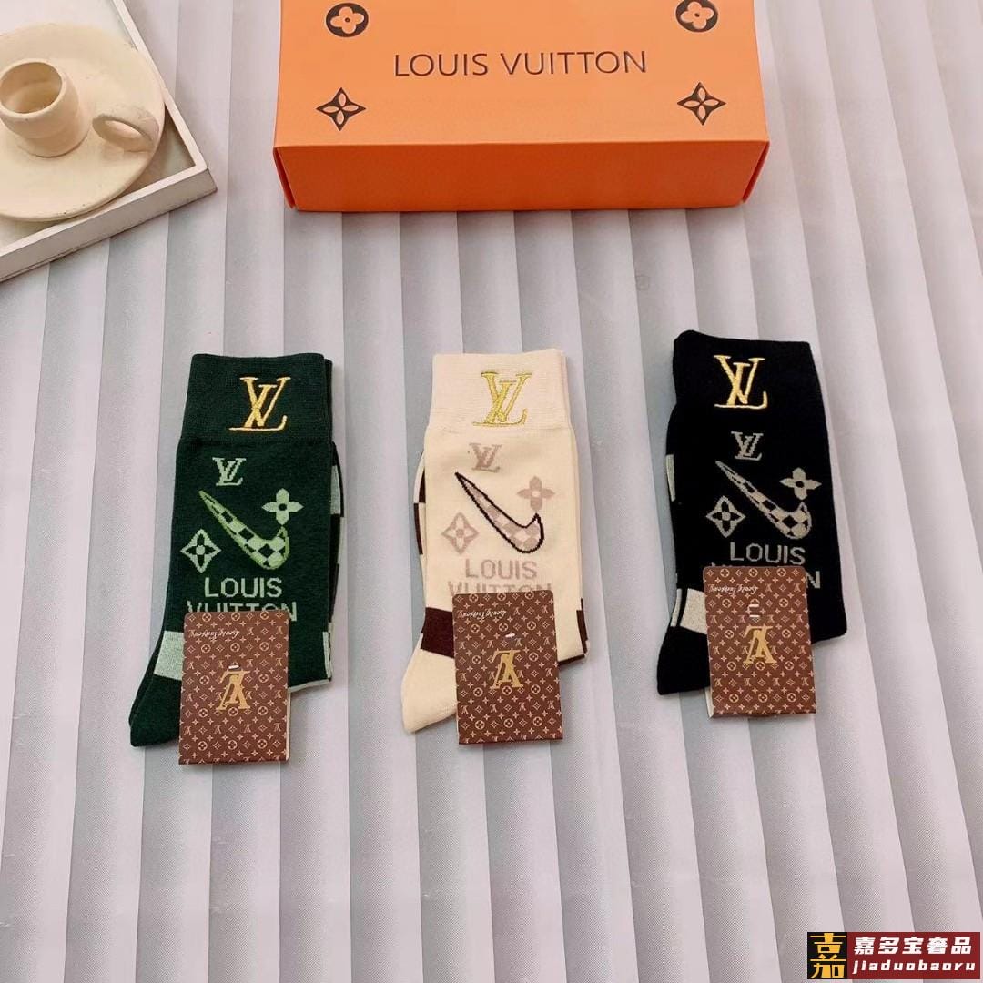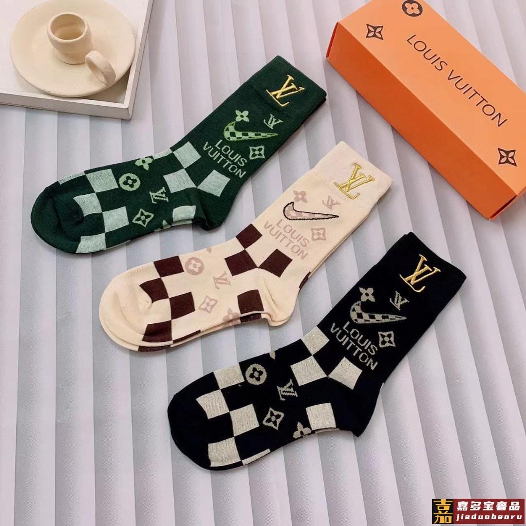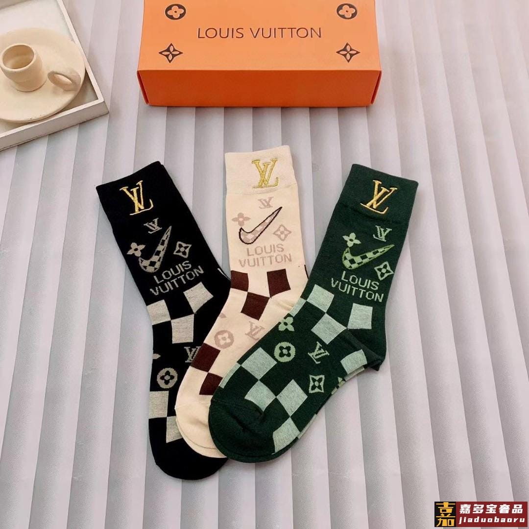一盒双路易威登爆款联名刺绣长筒袜高版本好看到爆炸欧美大牌刺绣