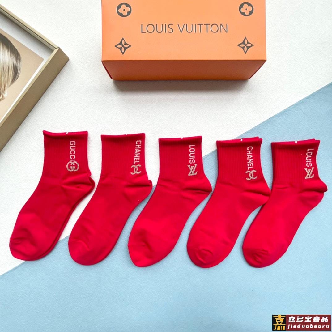 配包装一盒五双路易威登过年红红火火爆款中筒筒袜高版本好看到爆