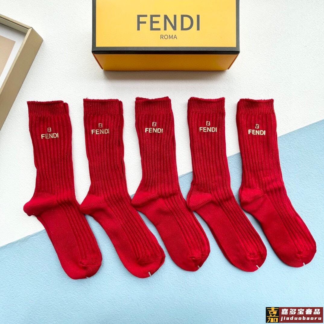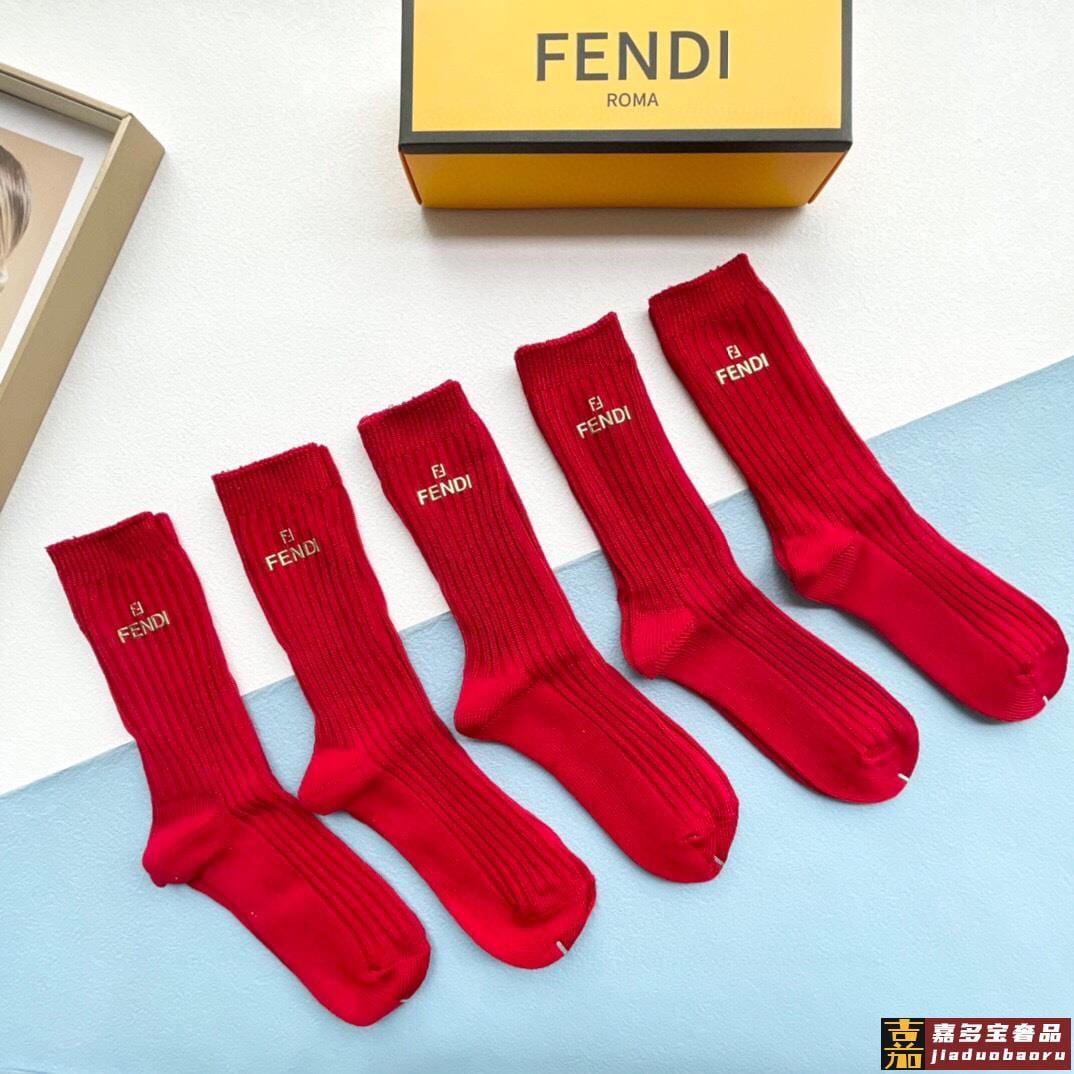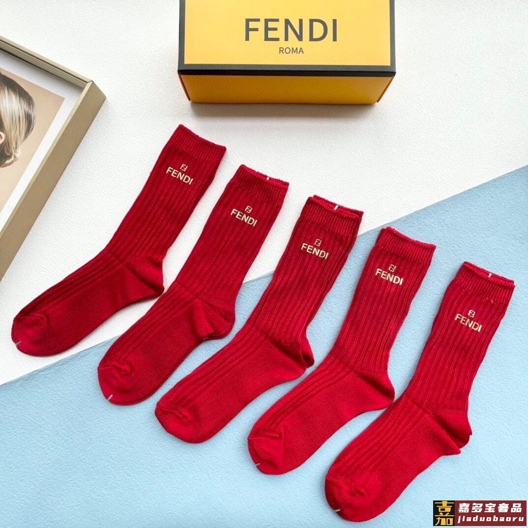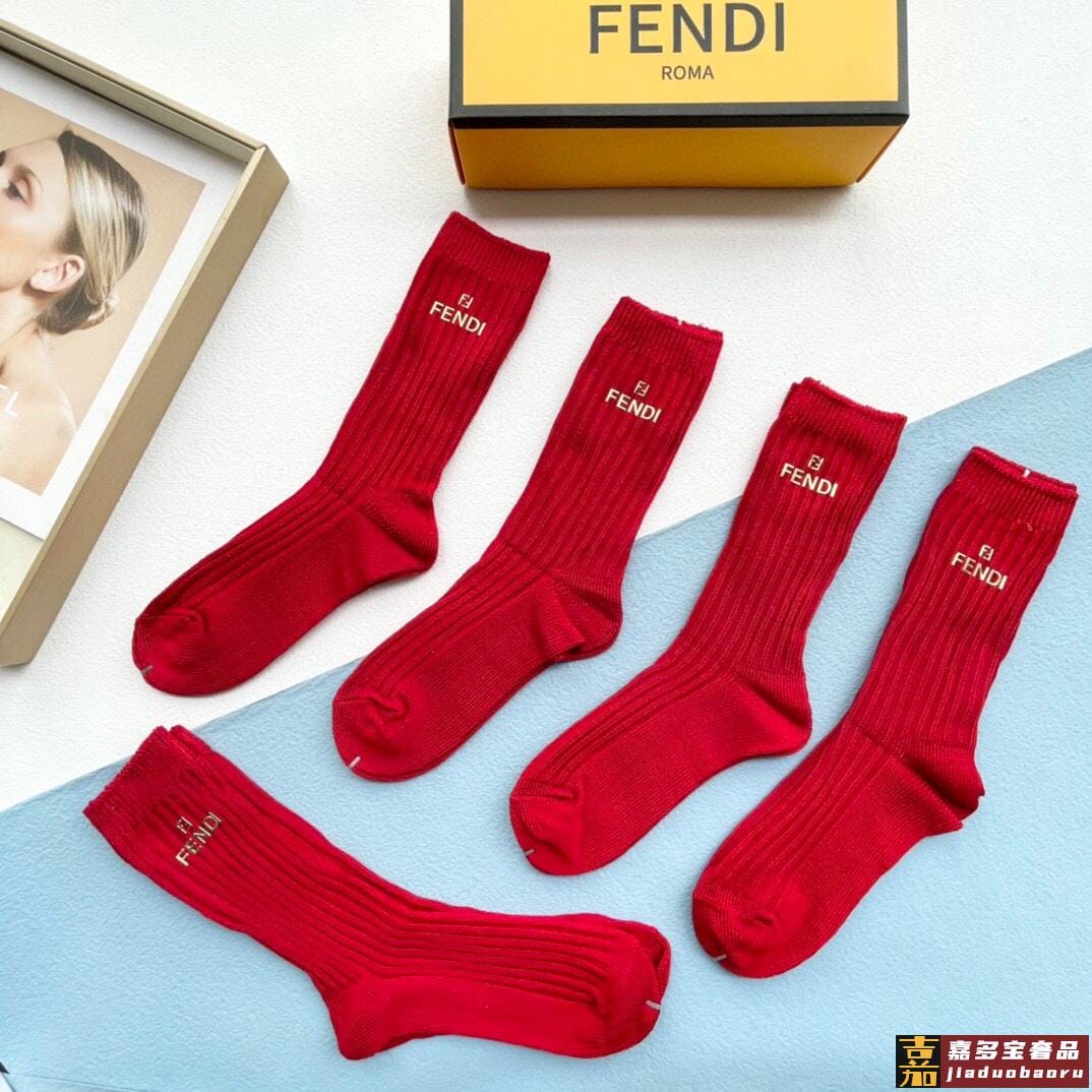 配包装一盒五双红红火火过年红袜芬迪欧美大牌高品质超级爆款网红
