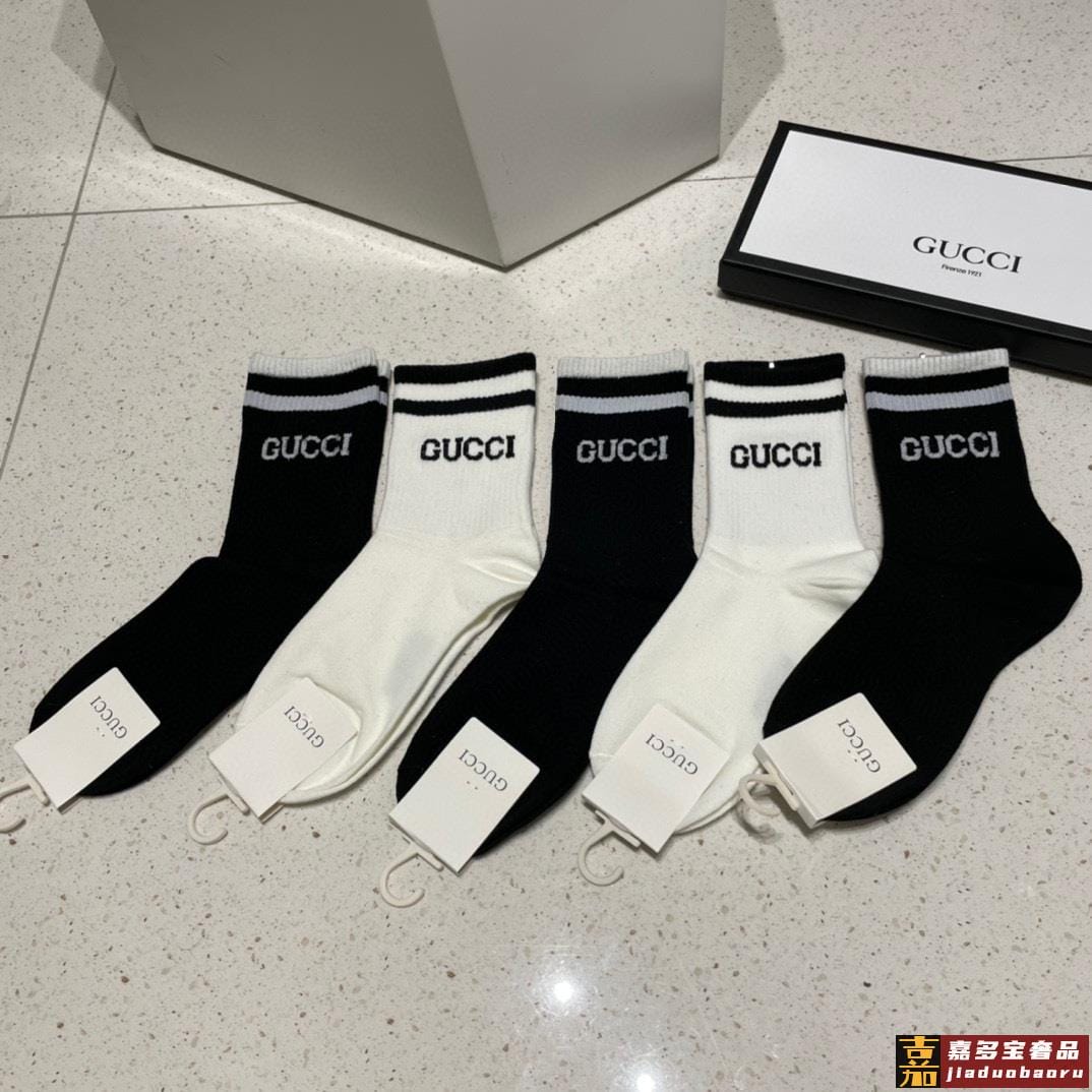 特配包装古驰新款经典中长款堆堆袜袜子一盒五双专柜同步筒款袜子