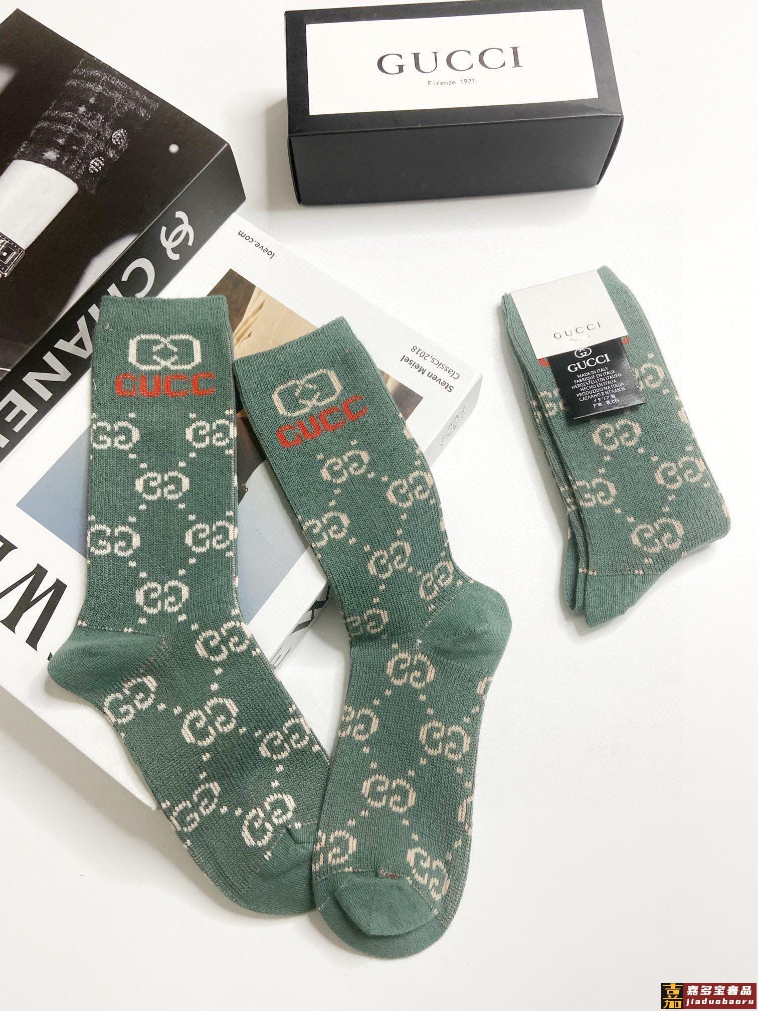 配包装一盒双古奇经典双字母中筒袜双针针织材质超完美结合款式经