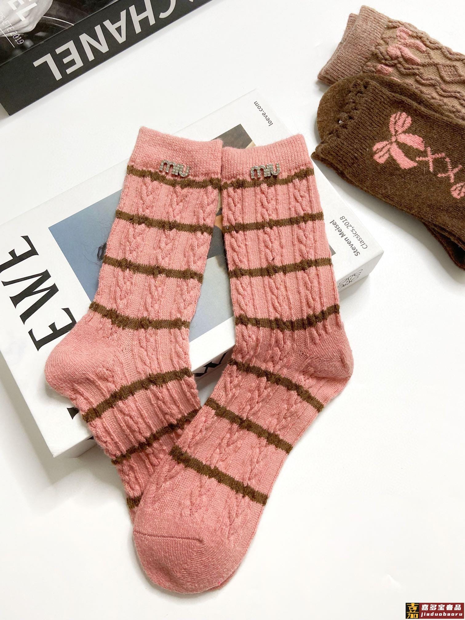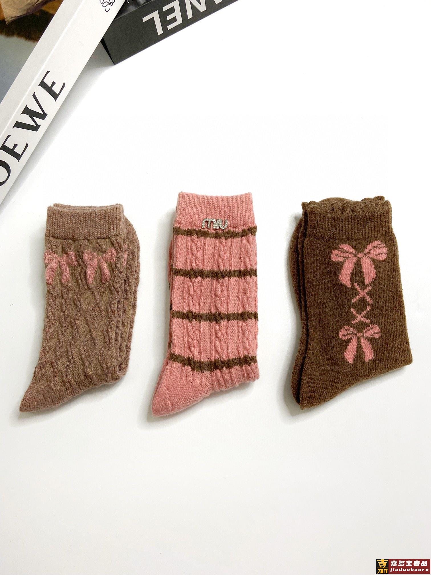 配包装一盒双缪缪经典字母羊毛中筒袜软糯亲肤秋冬厚款保暖又时尚