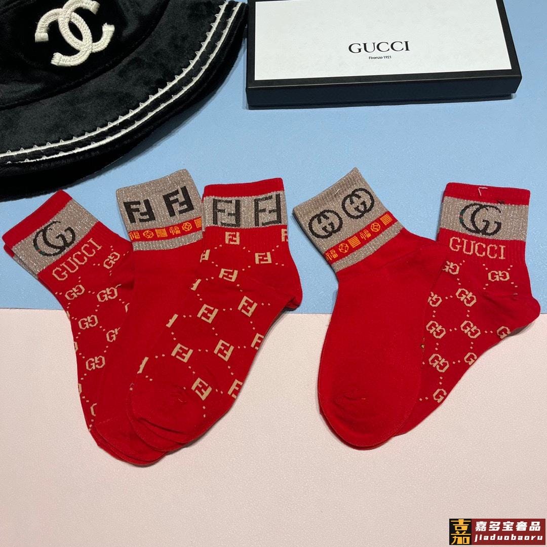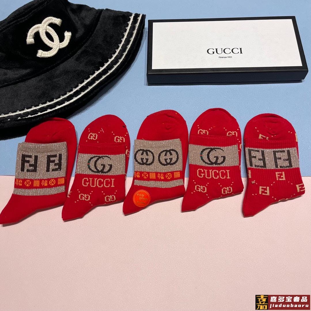 配送包装一盒五双古奇专柜新款红袜男女中筒袜子专柜同步上新超柔软舒适专柜爆款系列超火爆小单品大牌出街潮人必备超好搭