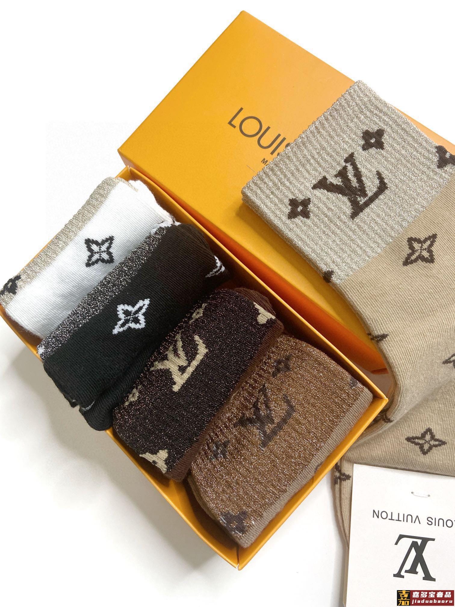 配包装一盒双路易威登超火爆短袜纯棉混纺金银丝面料潮人必备经典