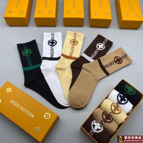 特配专柜包装路易威登新款羽毛纱中长款堆堆袜袜子一盒五双专柜同
