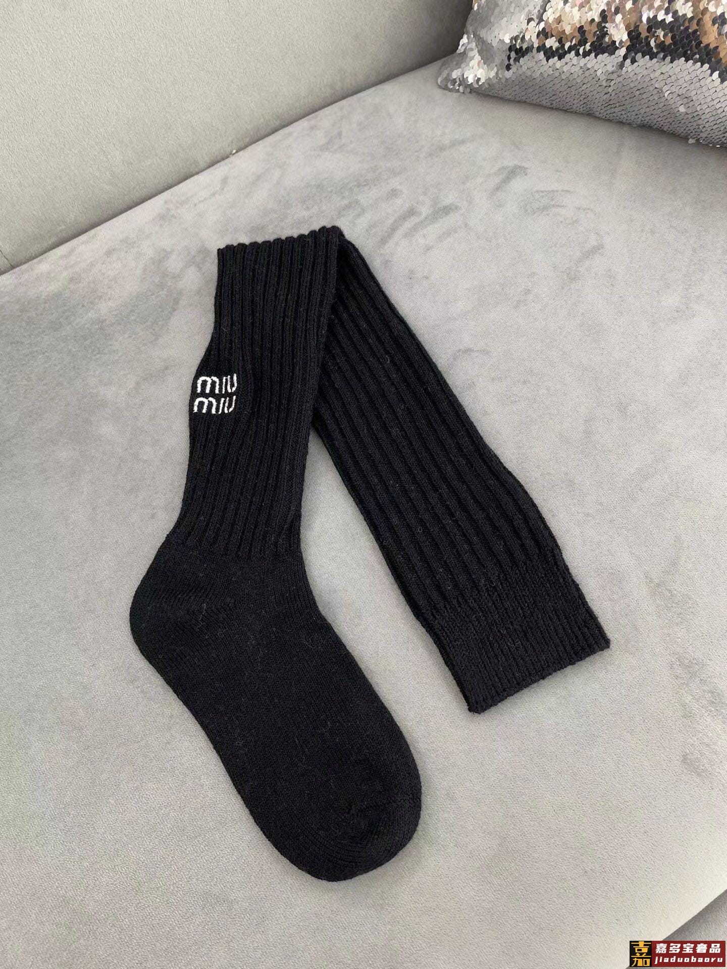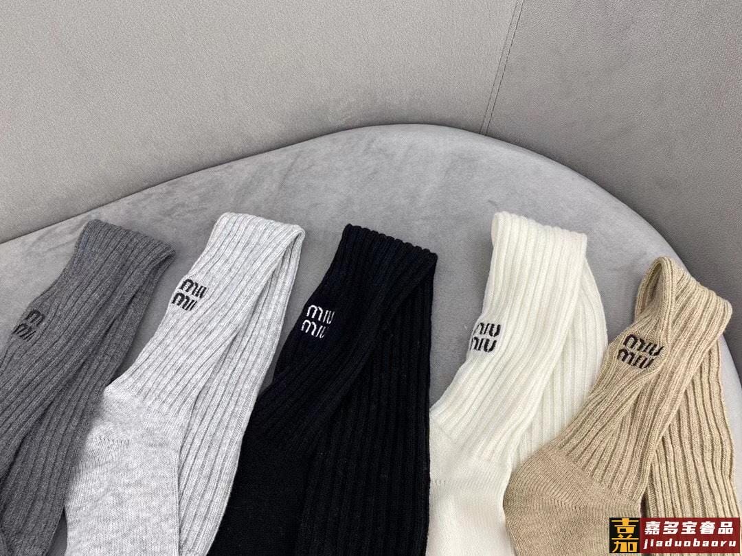 配包装一盒一双缪缪超级爆款网红袜子官网同步字母羊毛刺绣走秀过