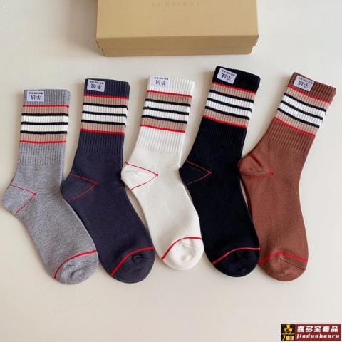 特配专柜包装巴宝莉新款羊绒中长款堆堆袜袜子一盒五双专柜同步筒