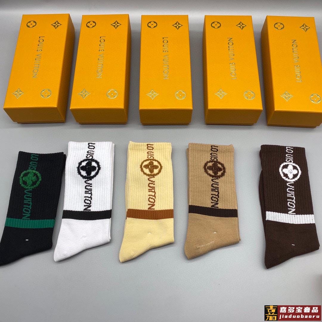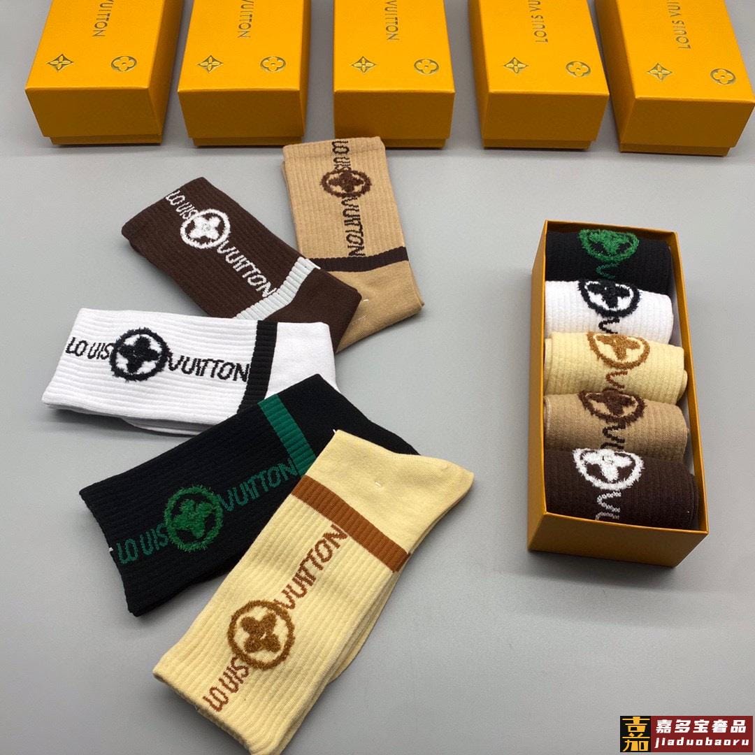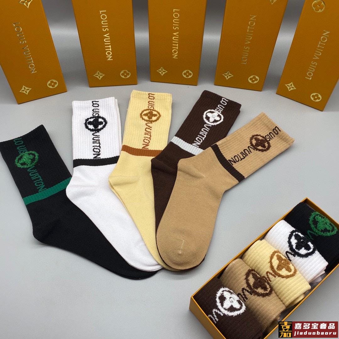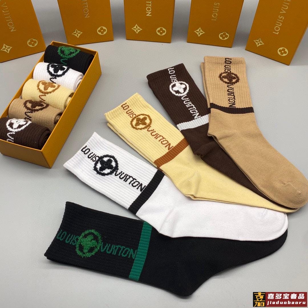 特配专柜包装路易威登新款羽毛纱中长款堆堆袜袜子一盒五双专柜同