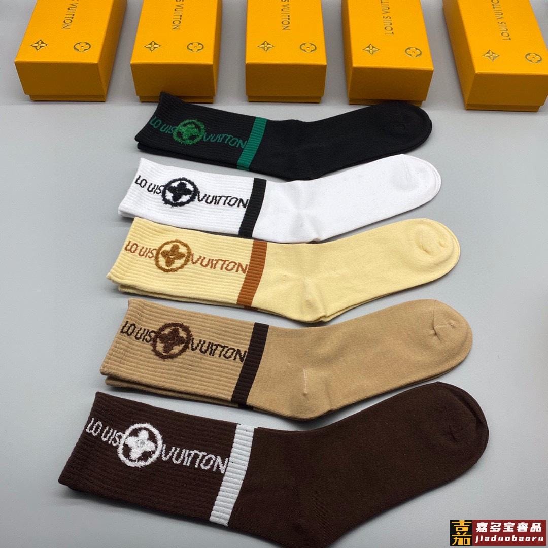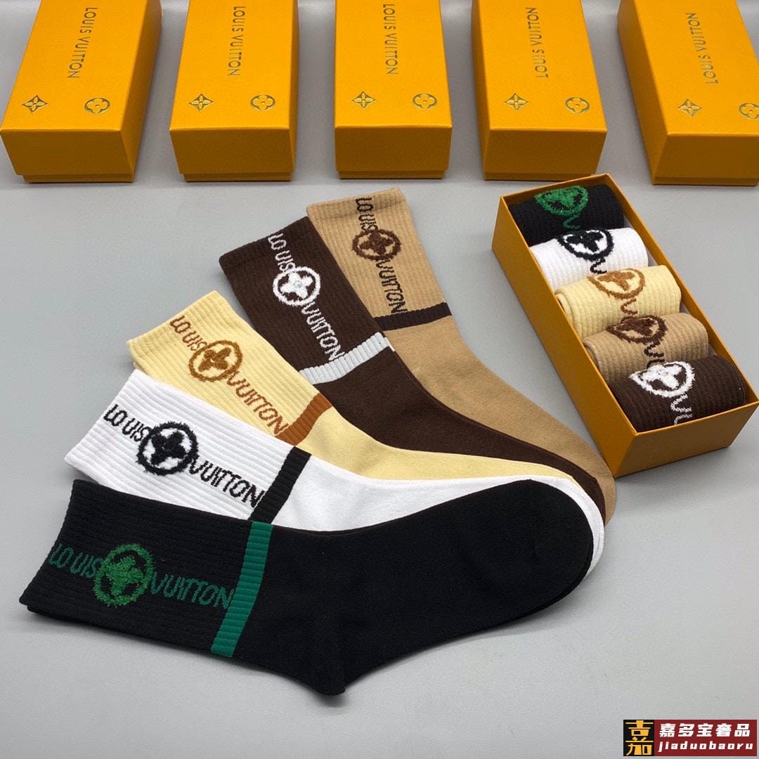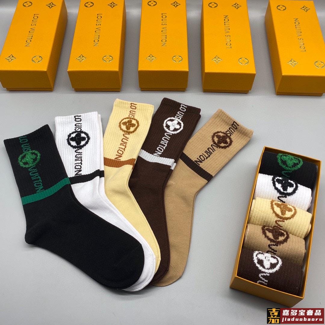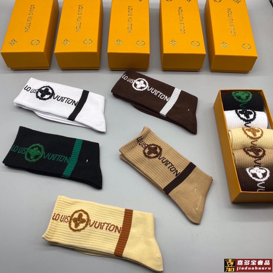 特配专柜包装路易威登新款羽毛纱中长款堆堆袜袜子一盒五双专柜同