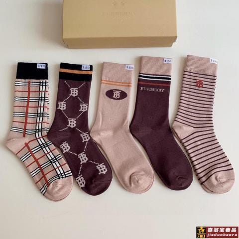 特配专柜包装巴宝莉新款羊绒中长款堆堆袜袜子一盒五双专柜同步筒